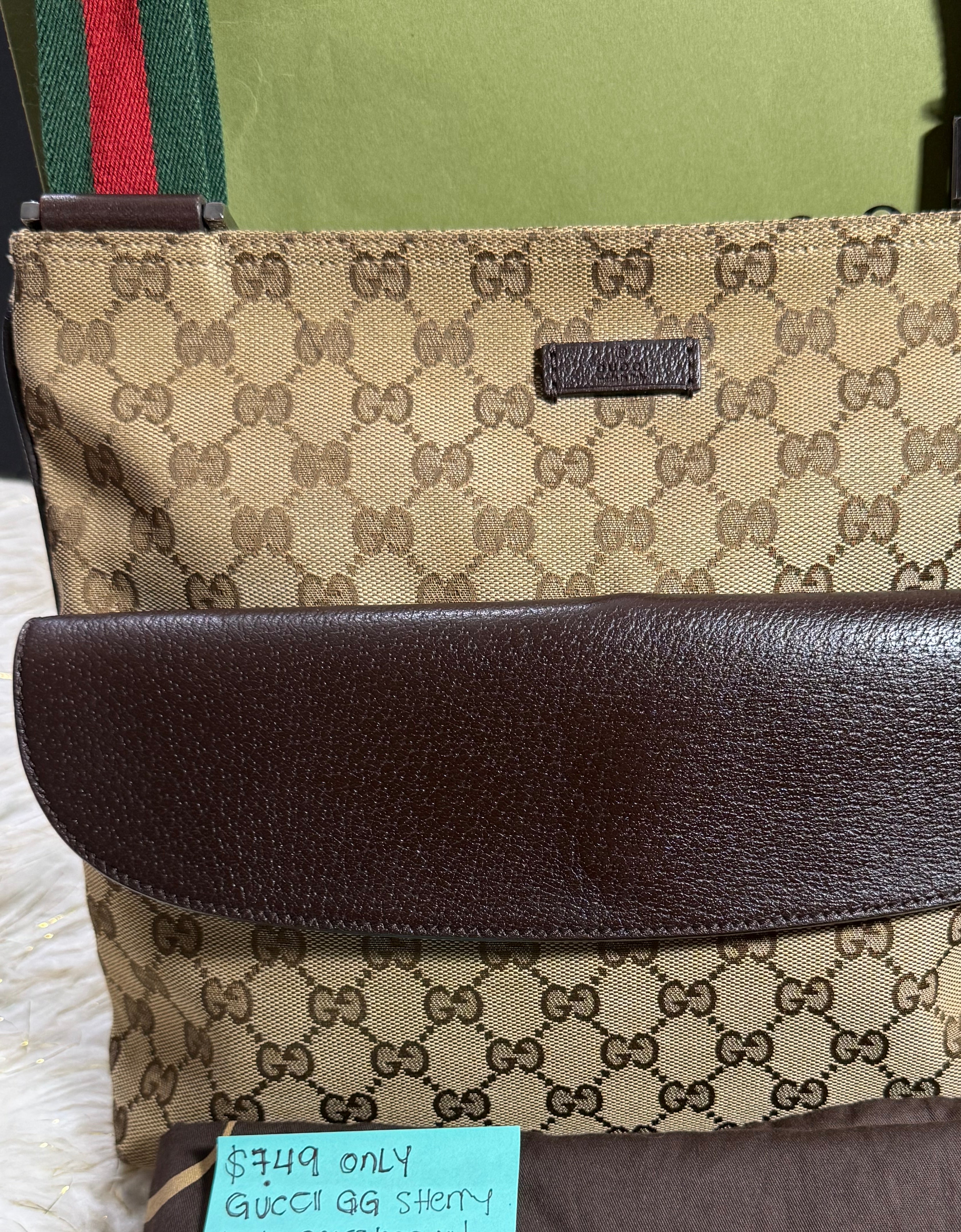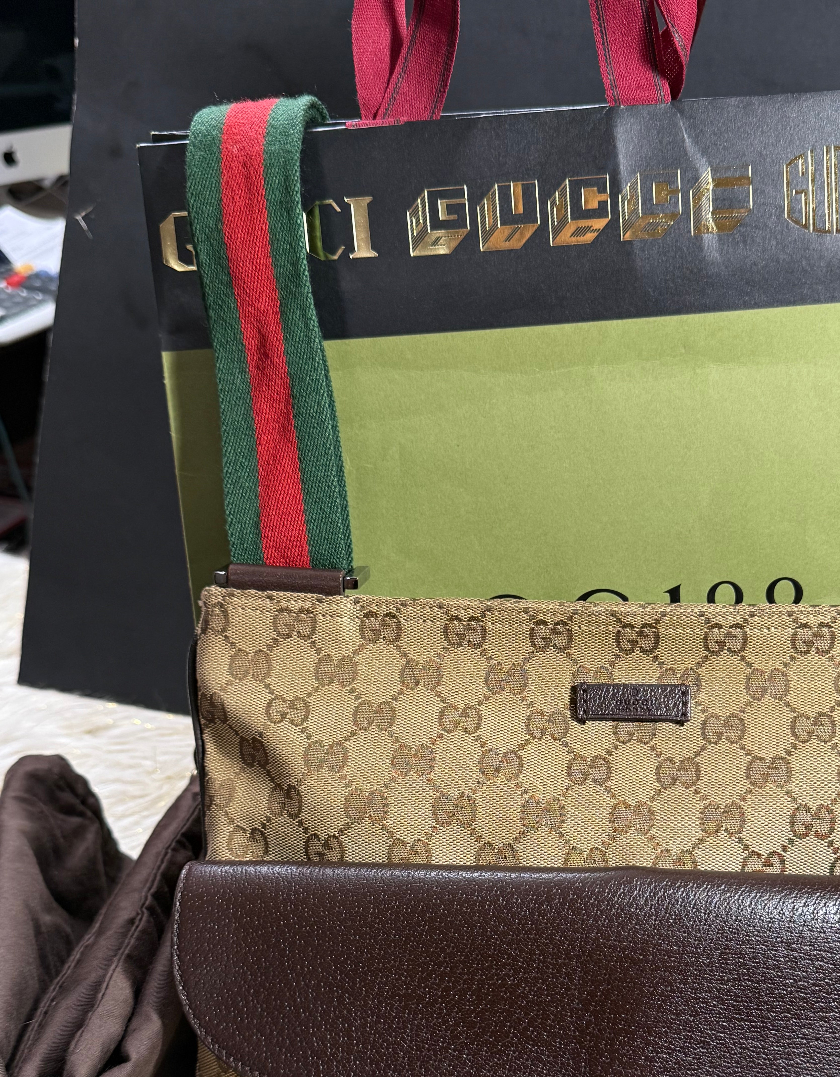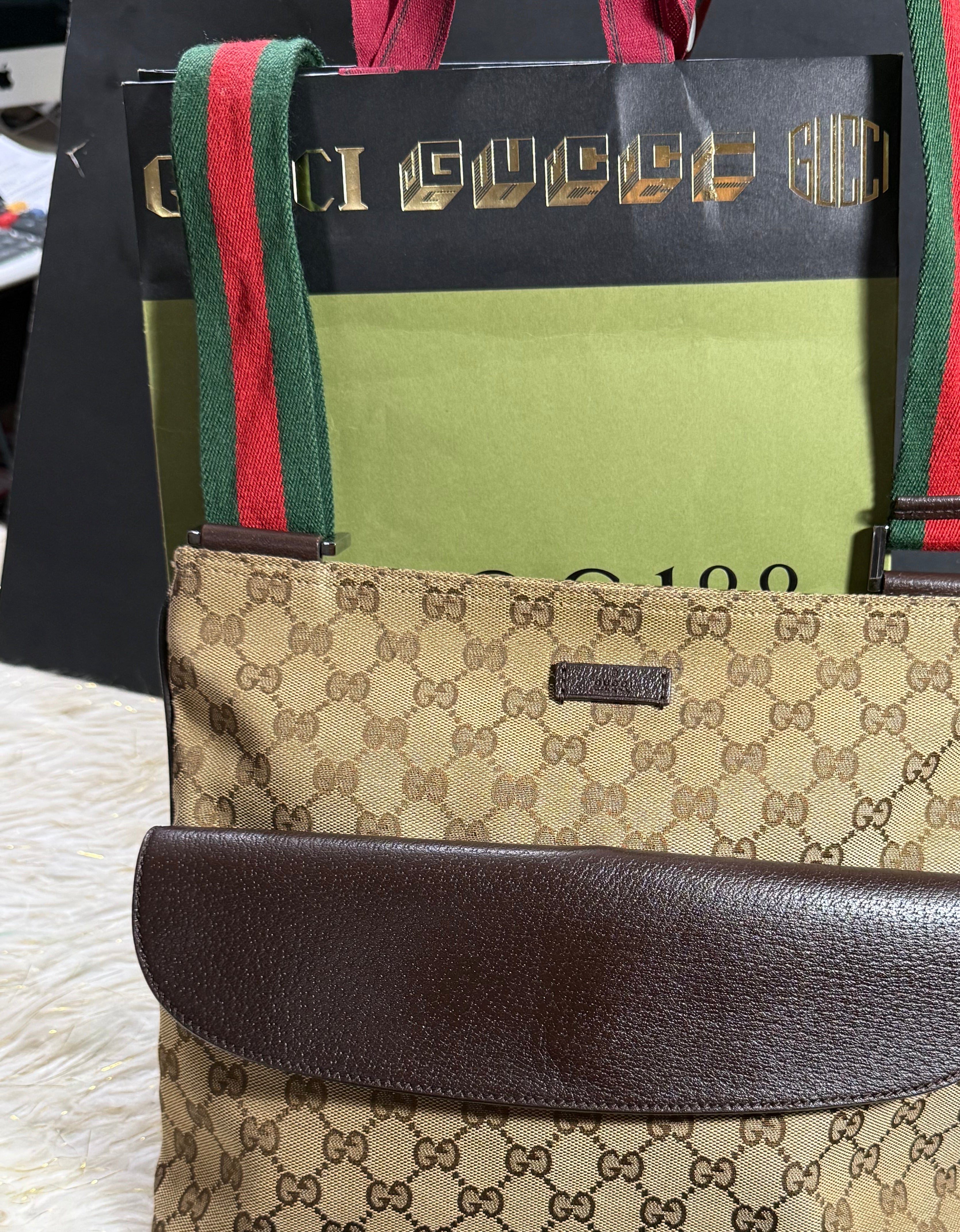 Gucci Canvas leather Brown Cross-bag Shoulder bag Made in Italy.