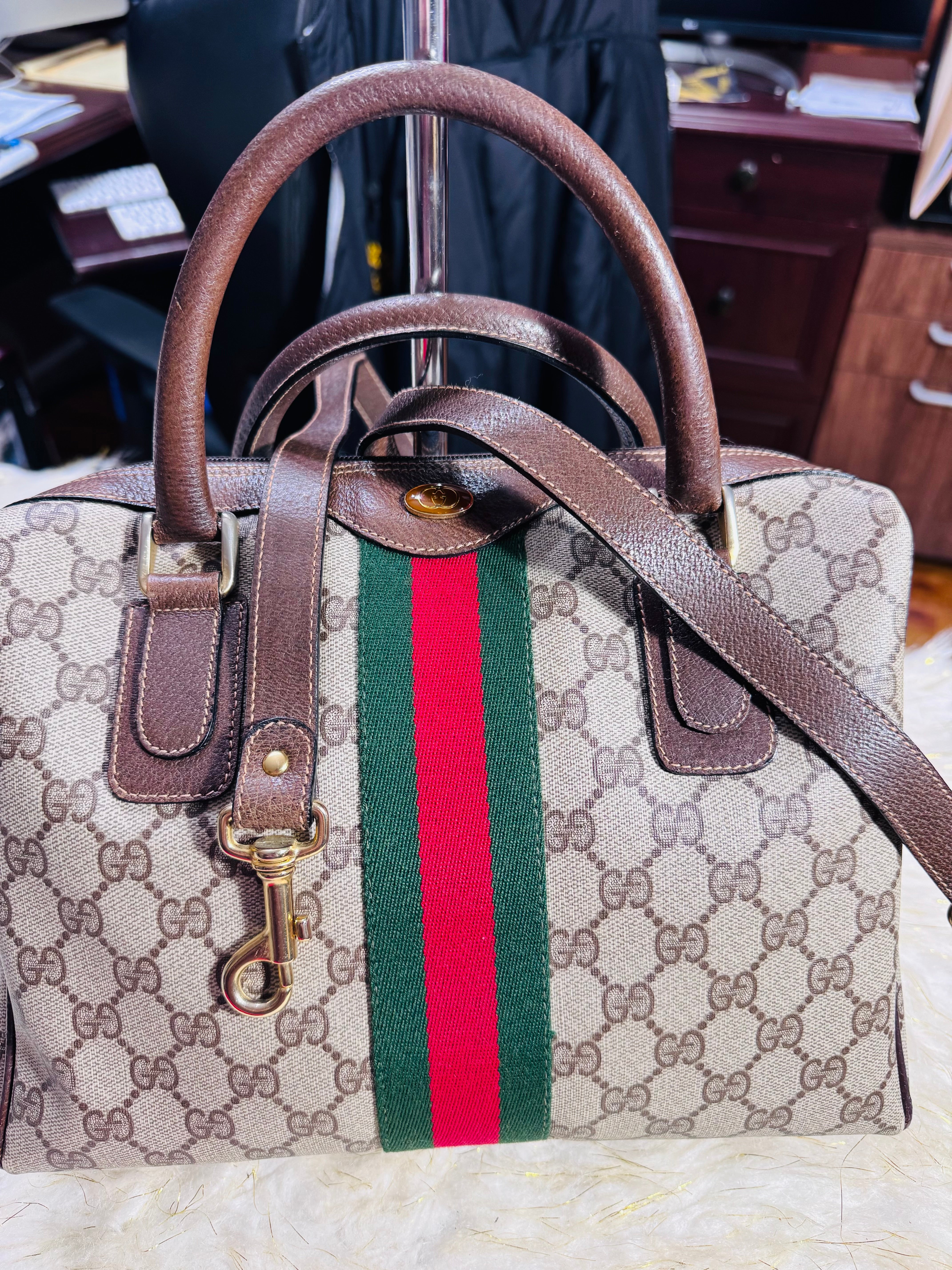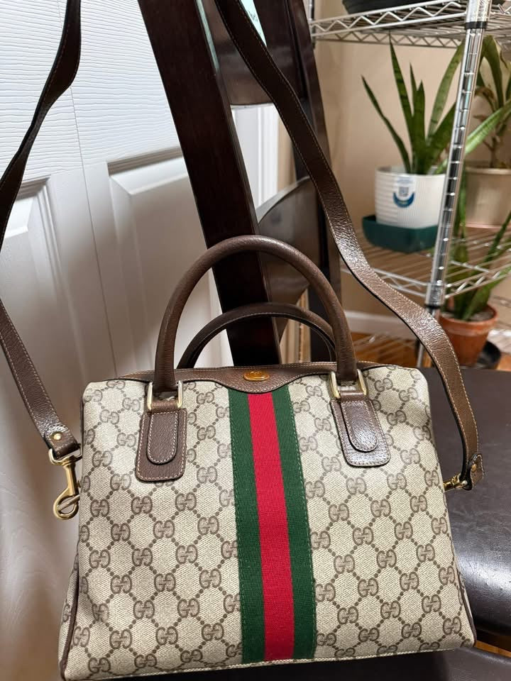 Gucci Canvas leather Brown Cross-bag Shoulder bag Made in Italy.