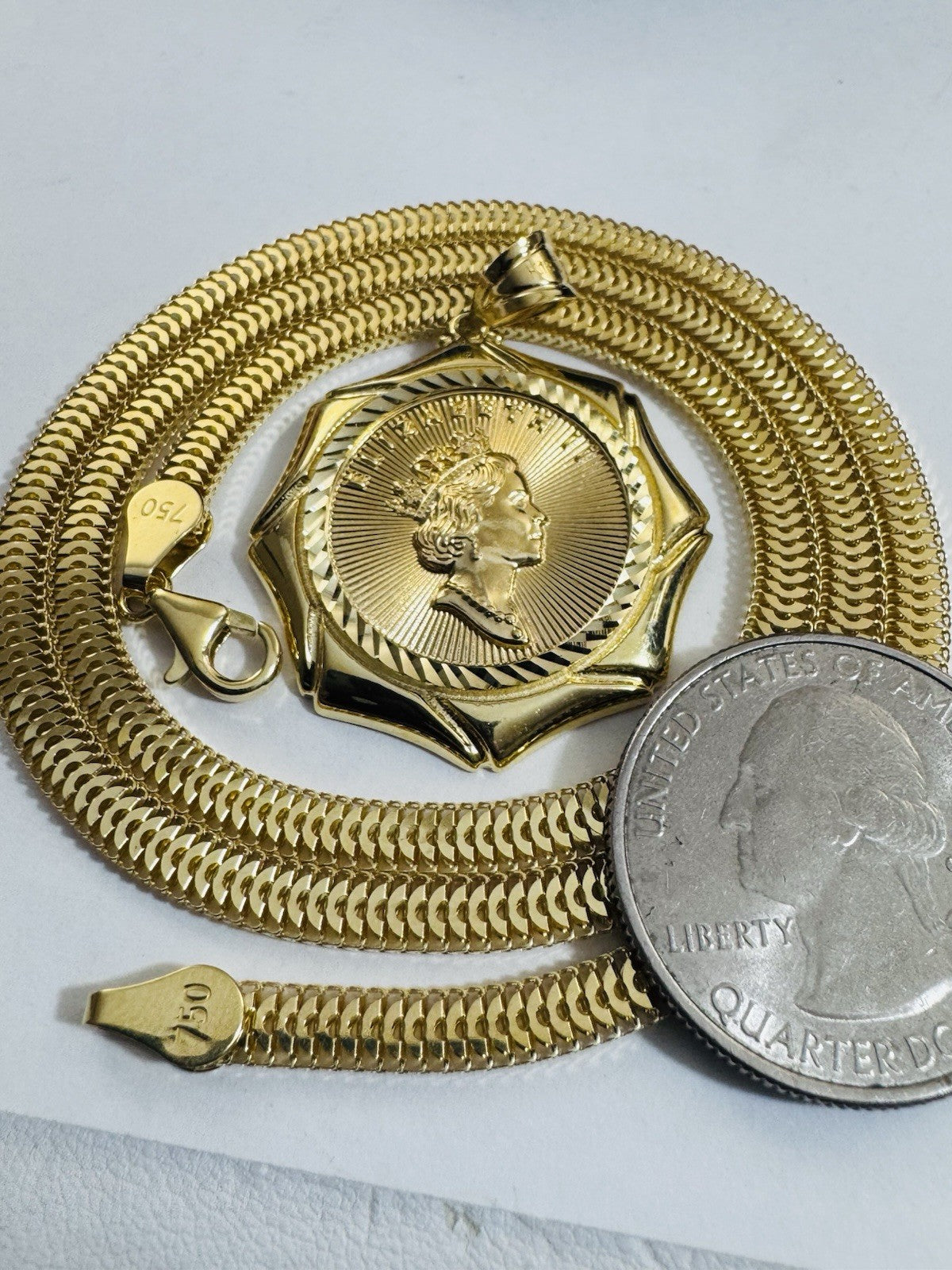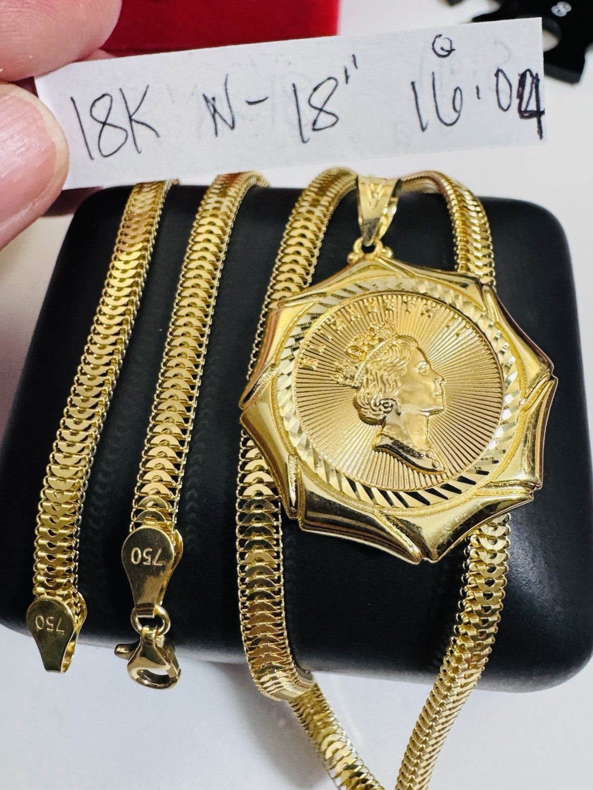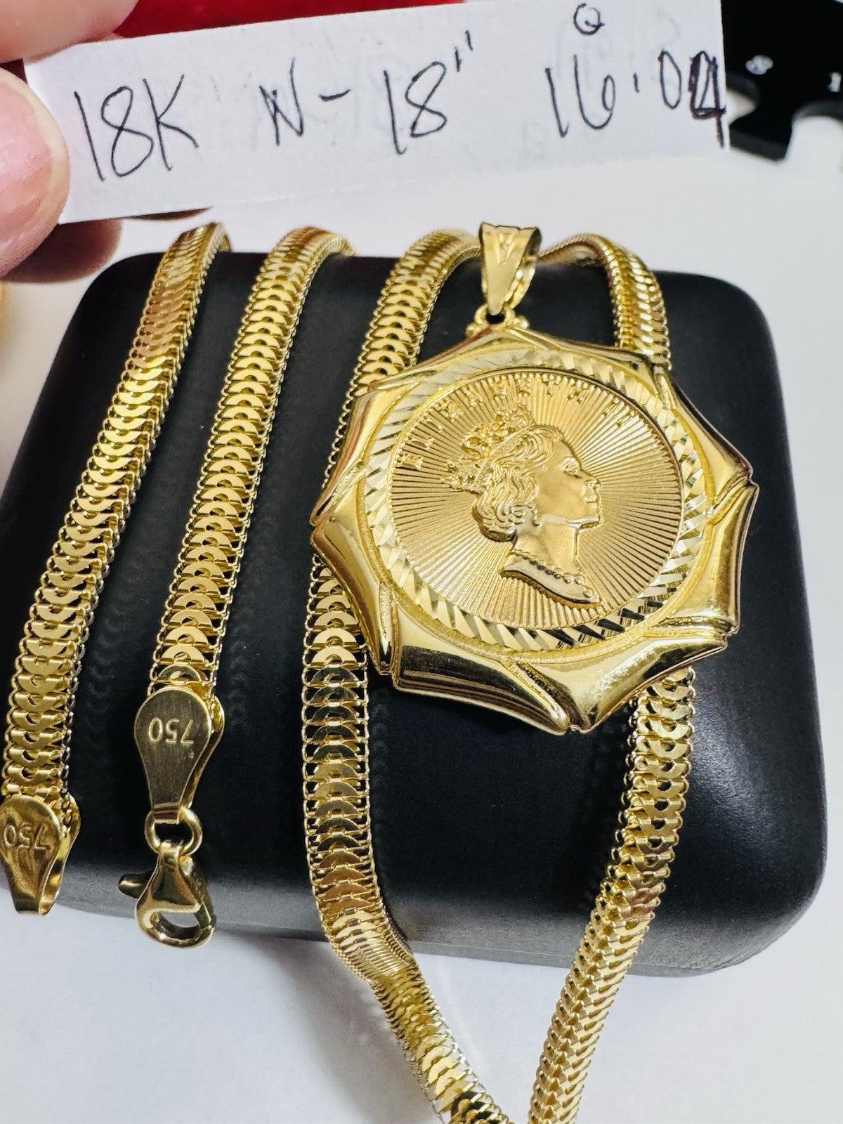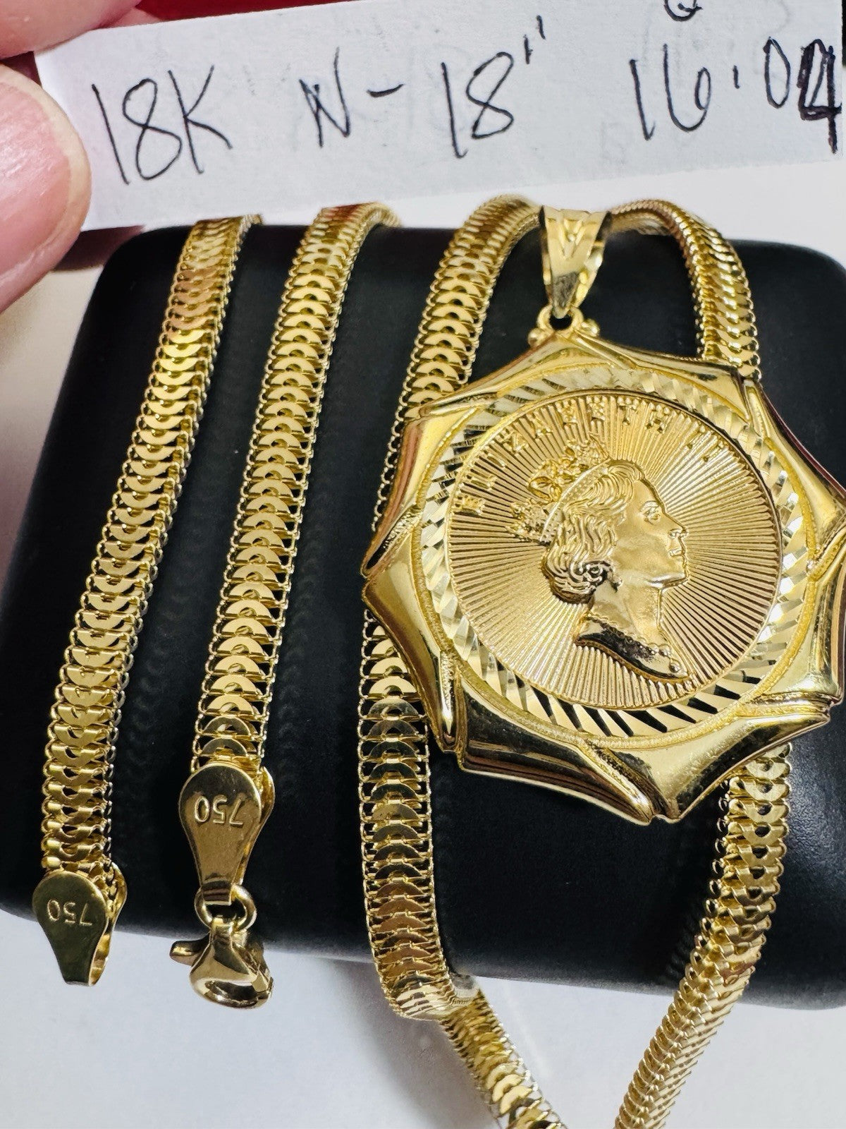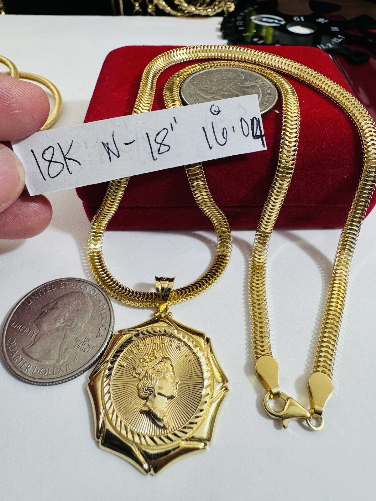 18K 750 Fine Genuine Gold Snake Chain Queen ll Necklace 18” Long 16.g 4mm