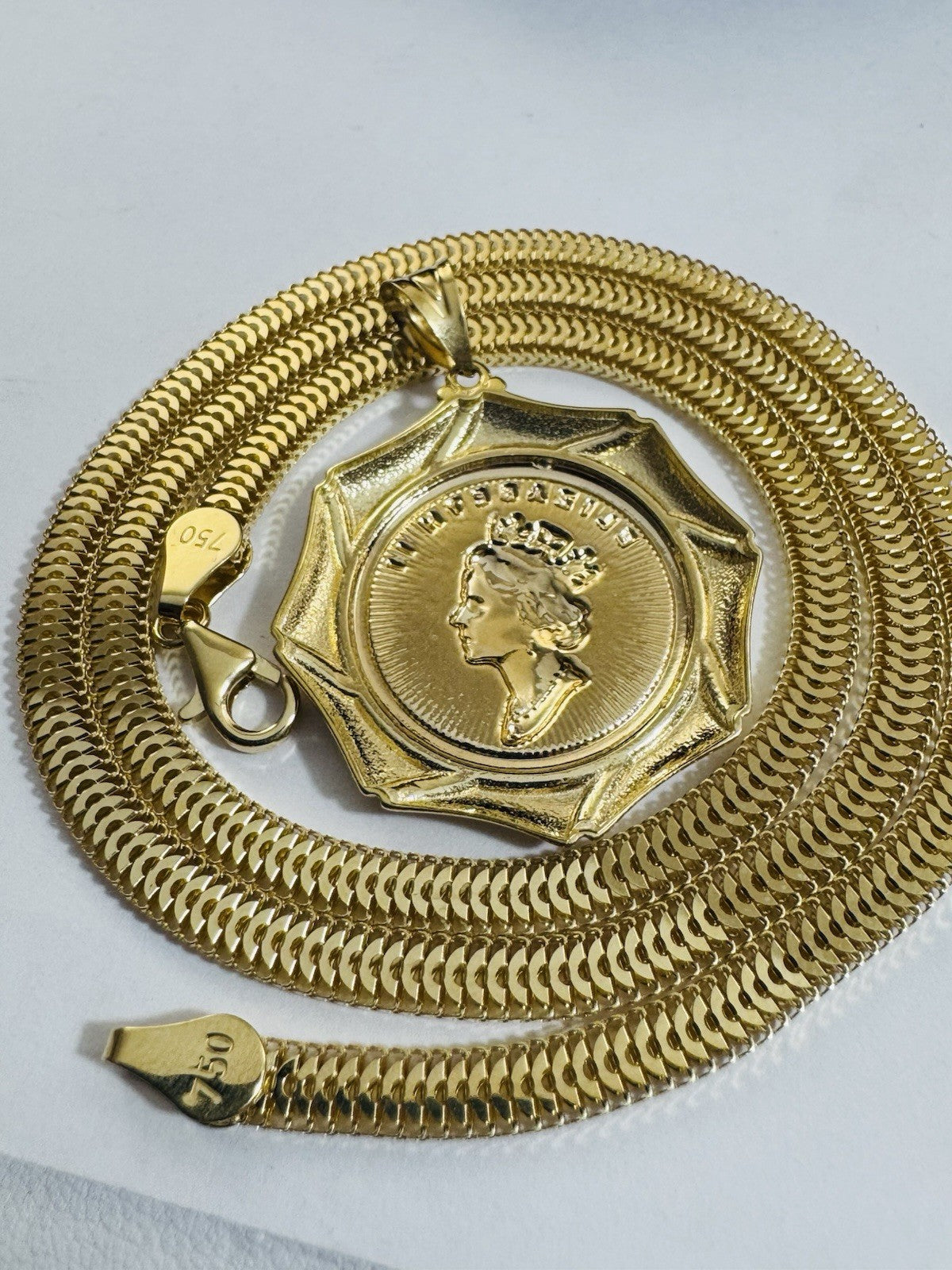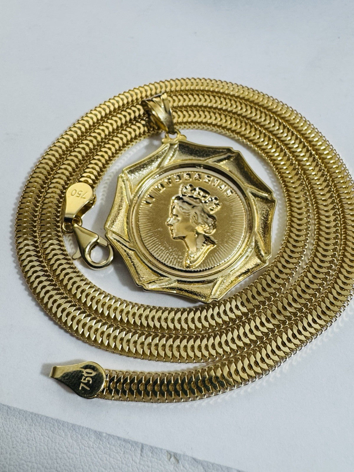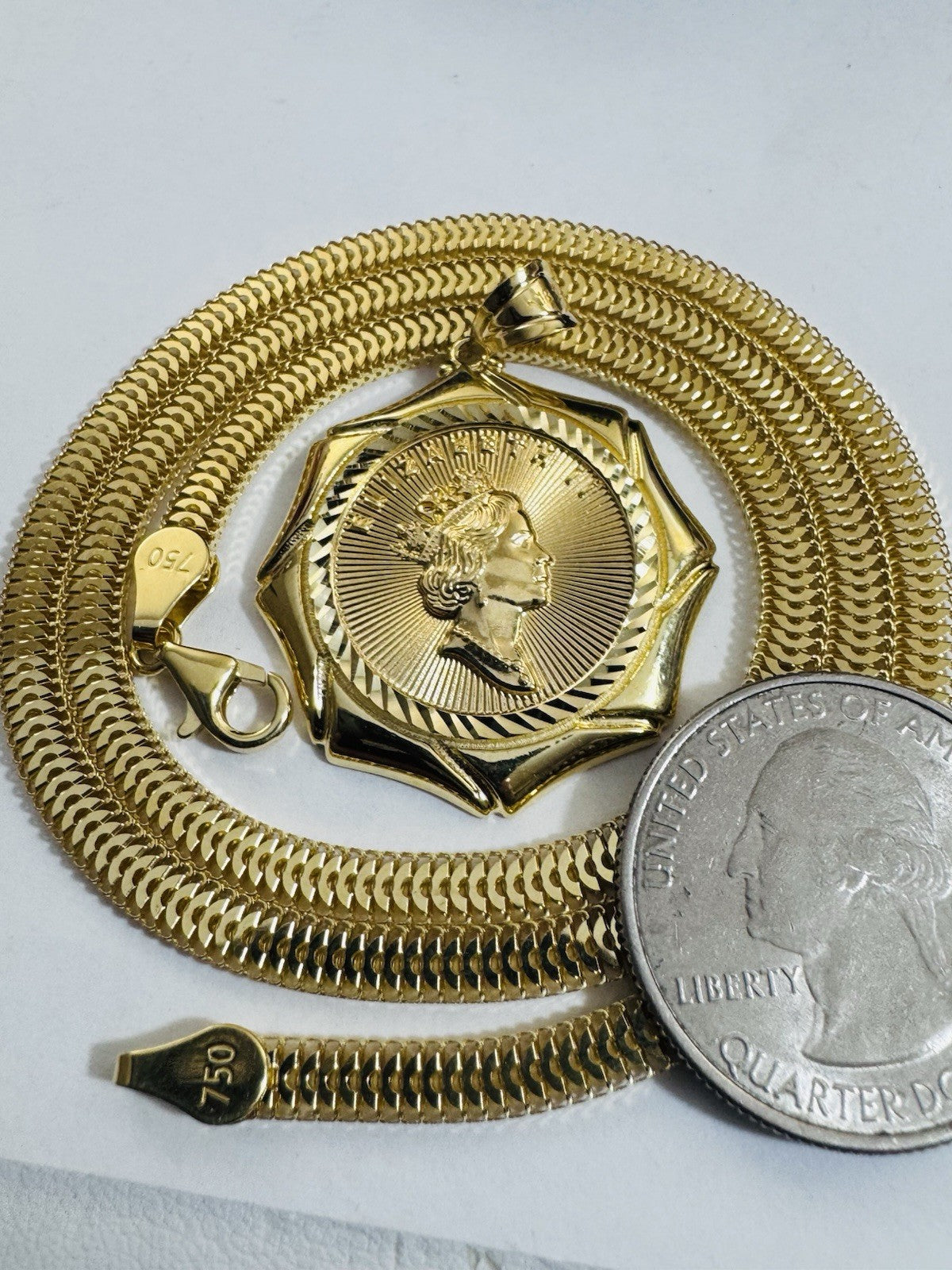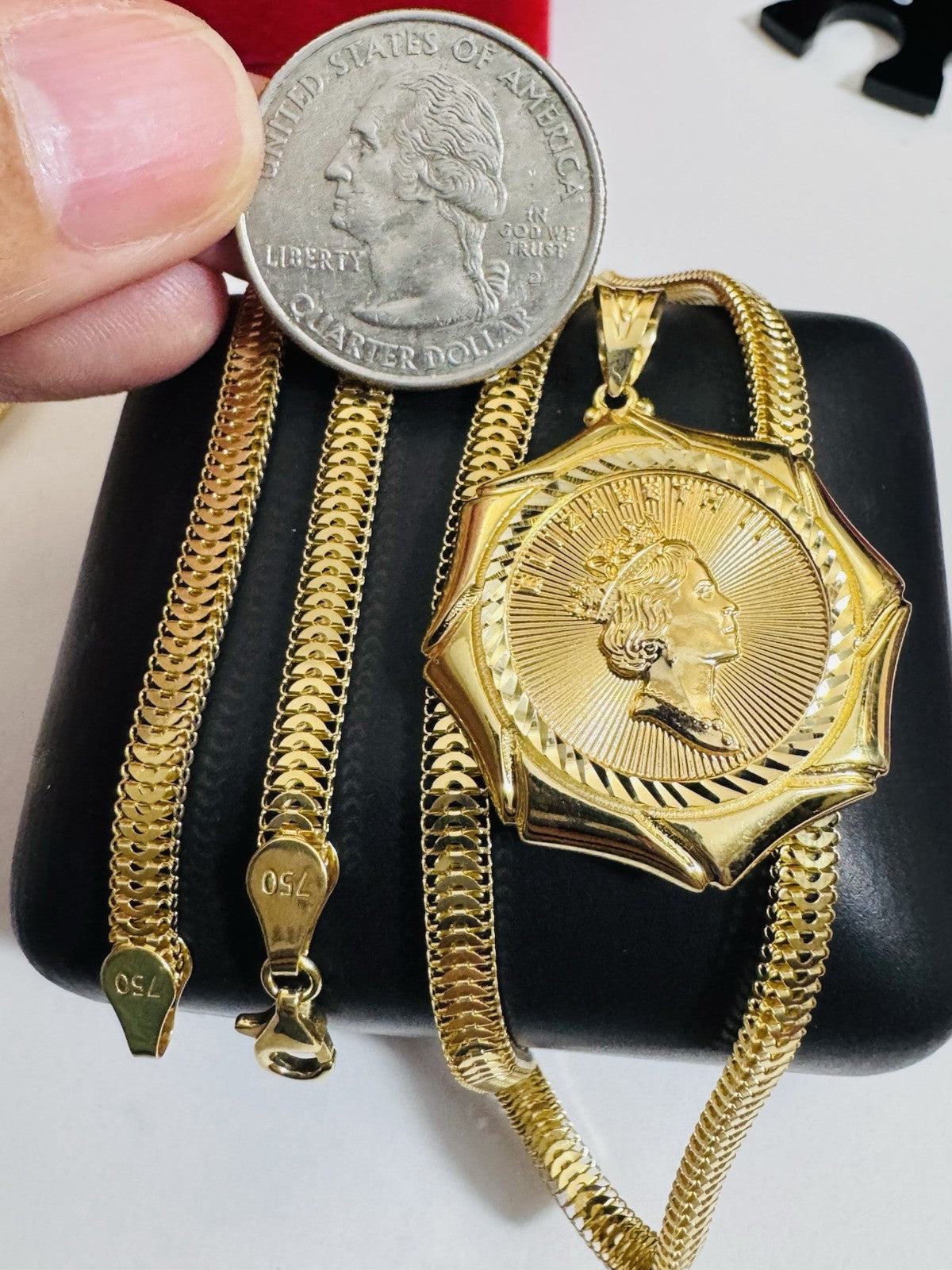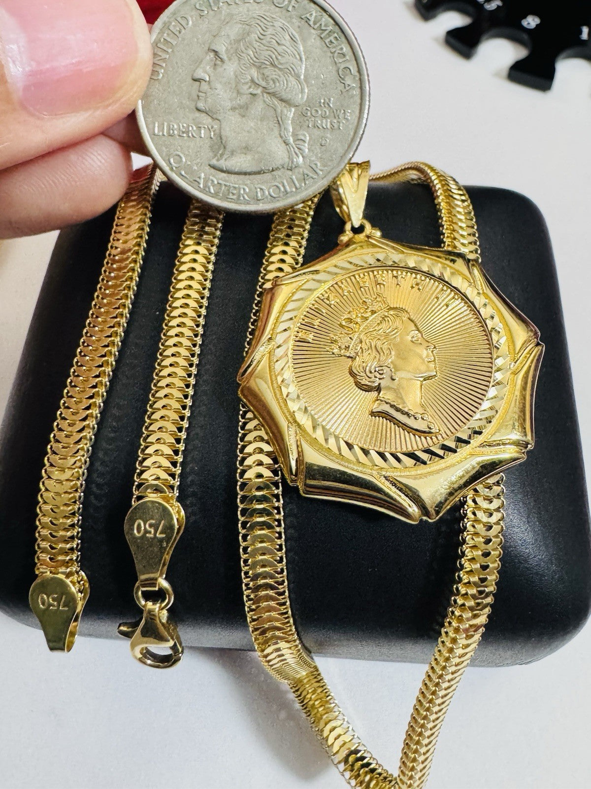 18K 750 Fine Genuine Gold Snake Chain Queen ll Necklace 18” Long 16.g 4mm