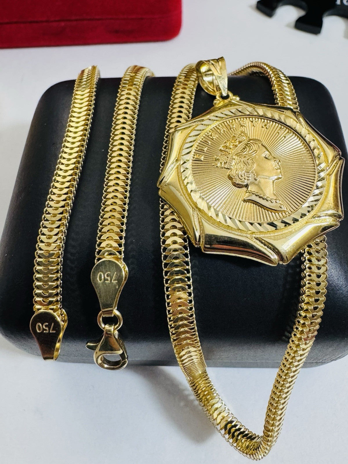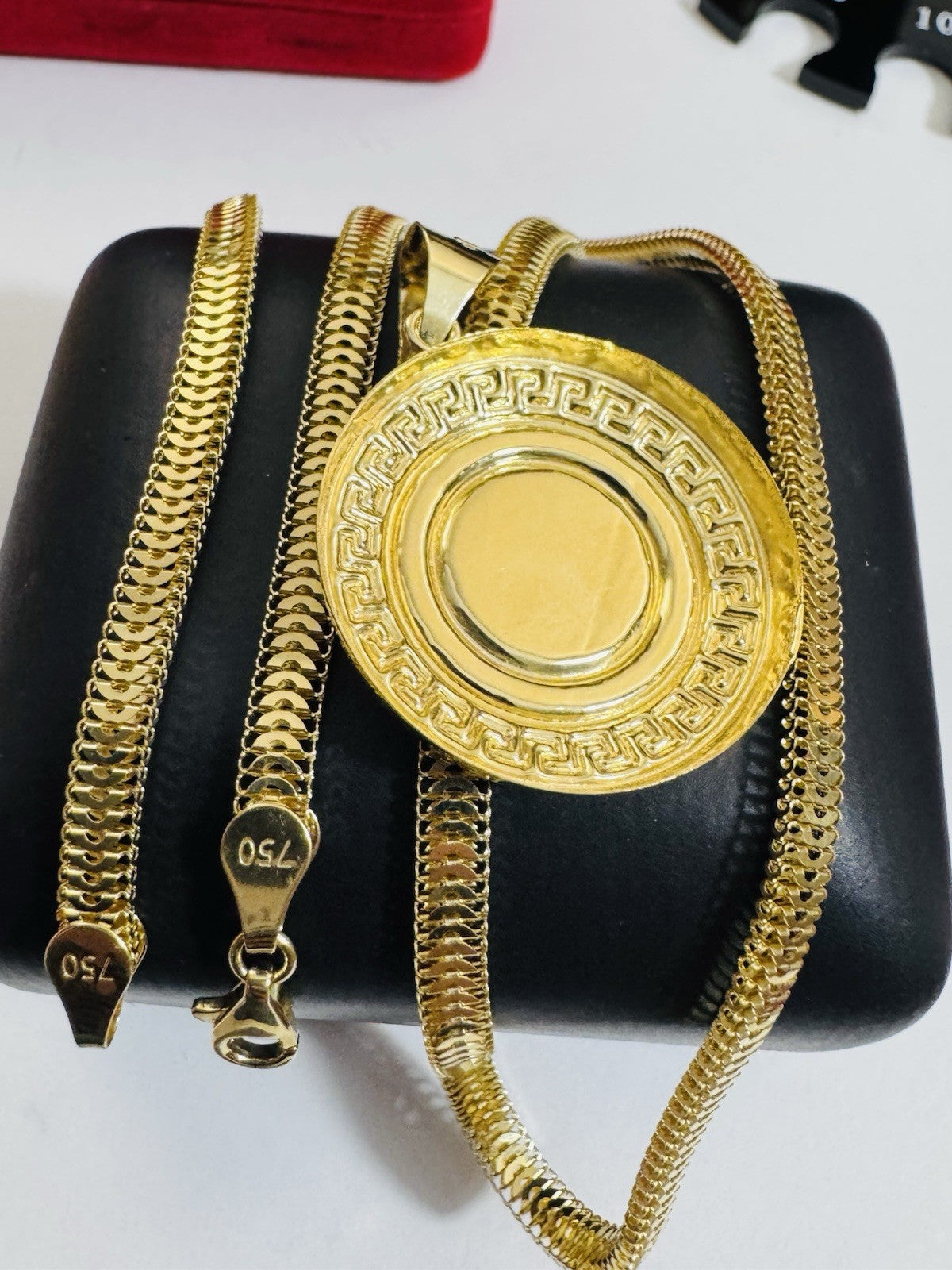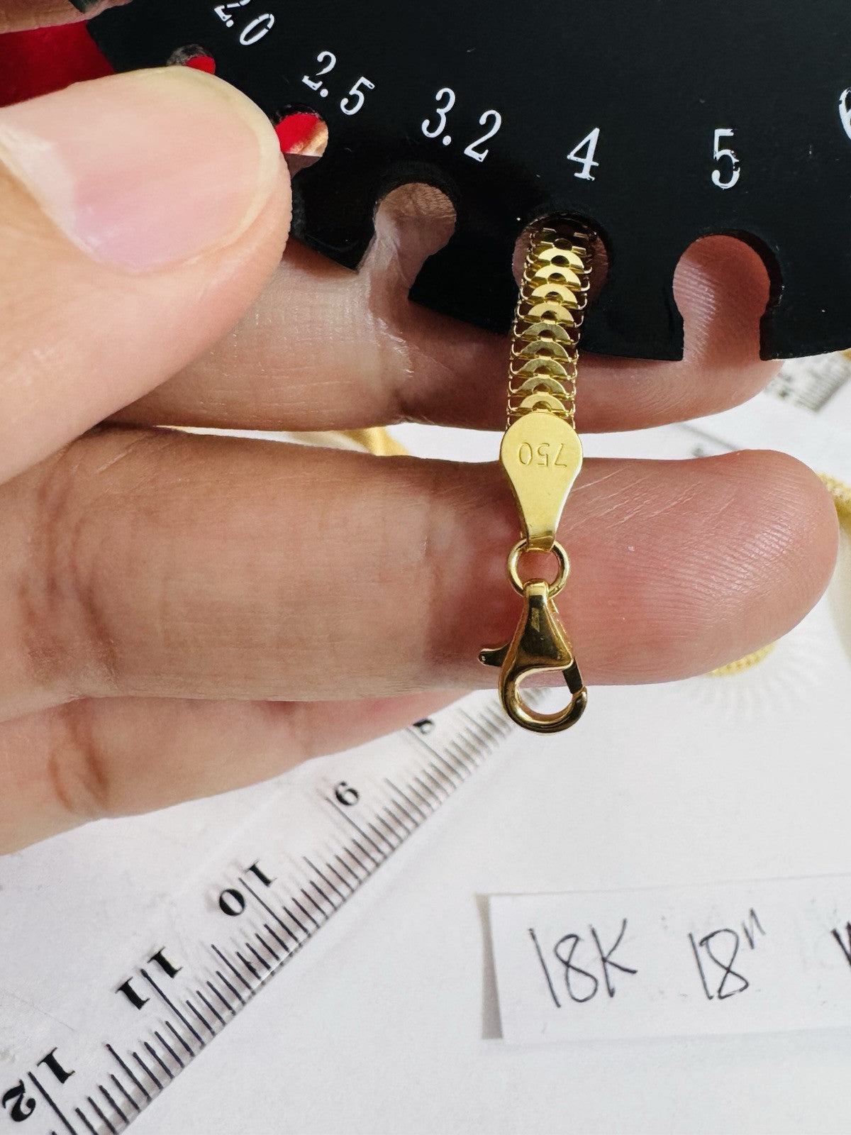This beautiful necklace is expertly crafted in 18K 750 real yellow gold and features a stunning 18 inch Snake chain Set Necklace with a lobster clasp with 4mm wide. 16.04g