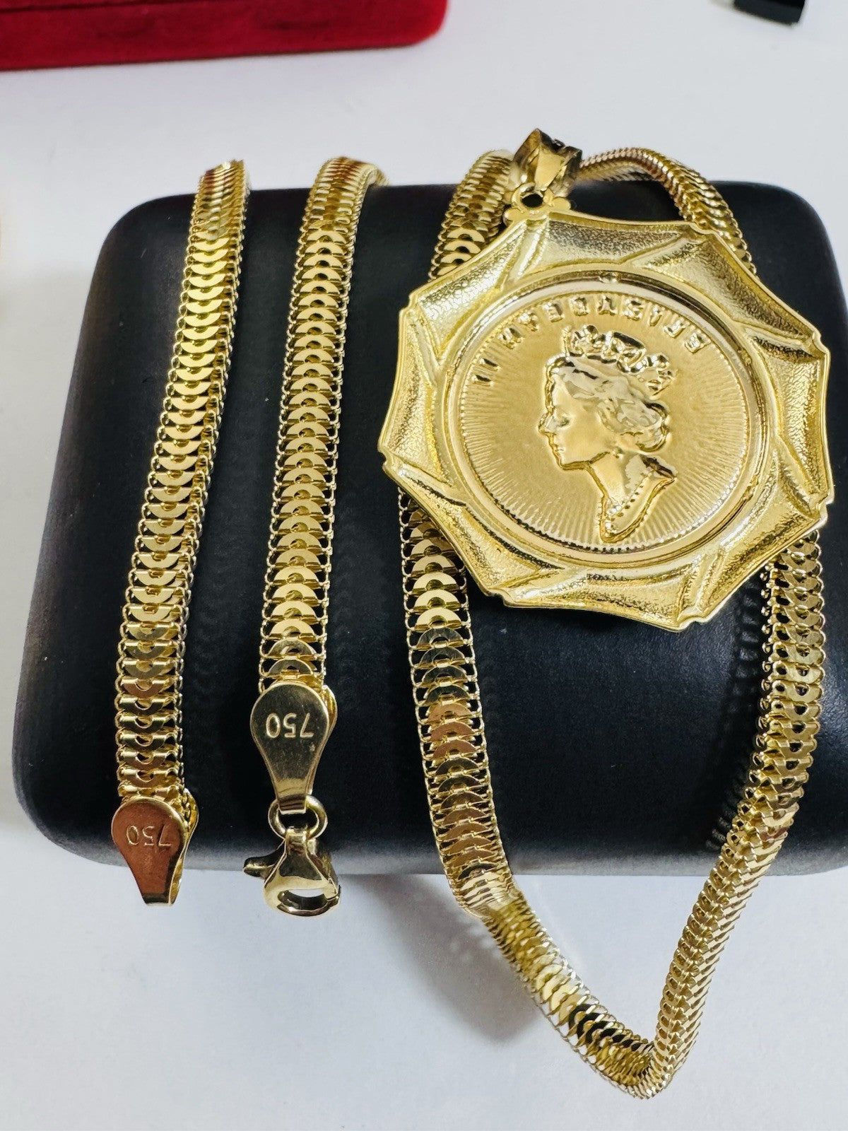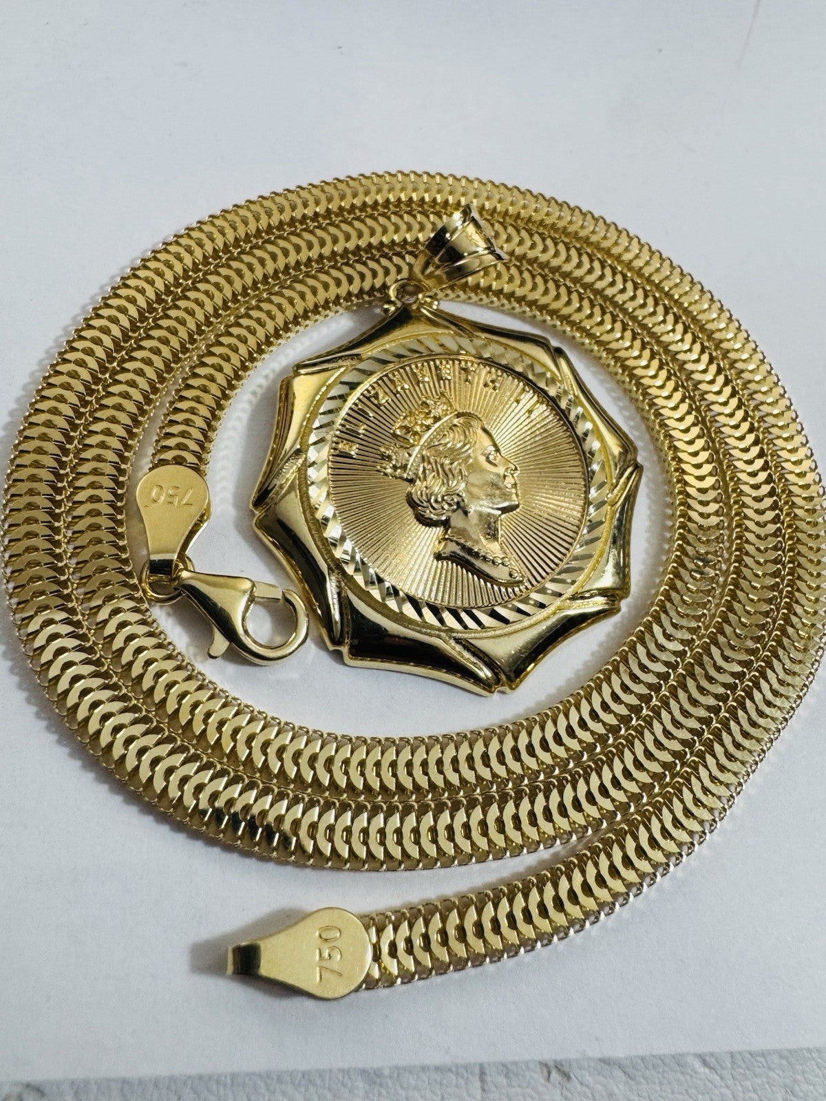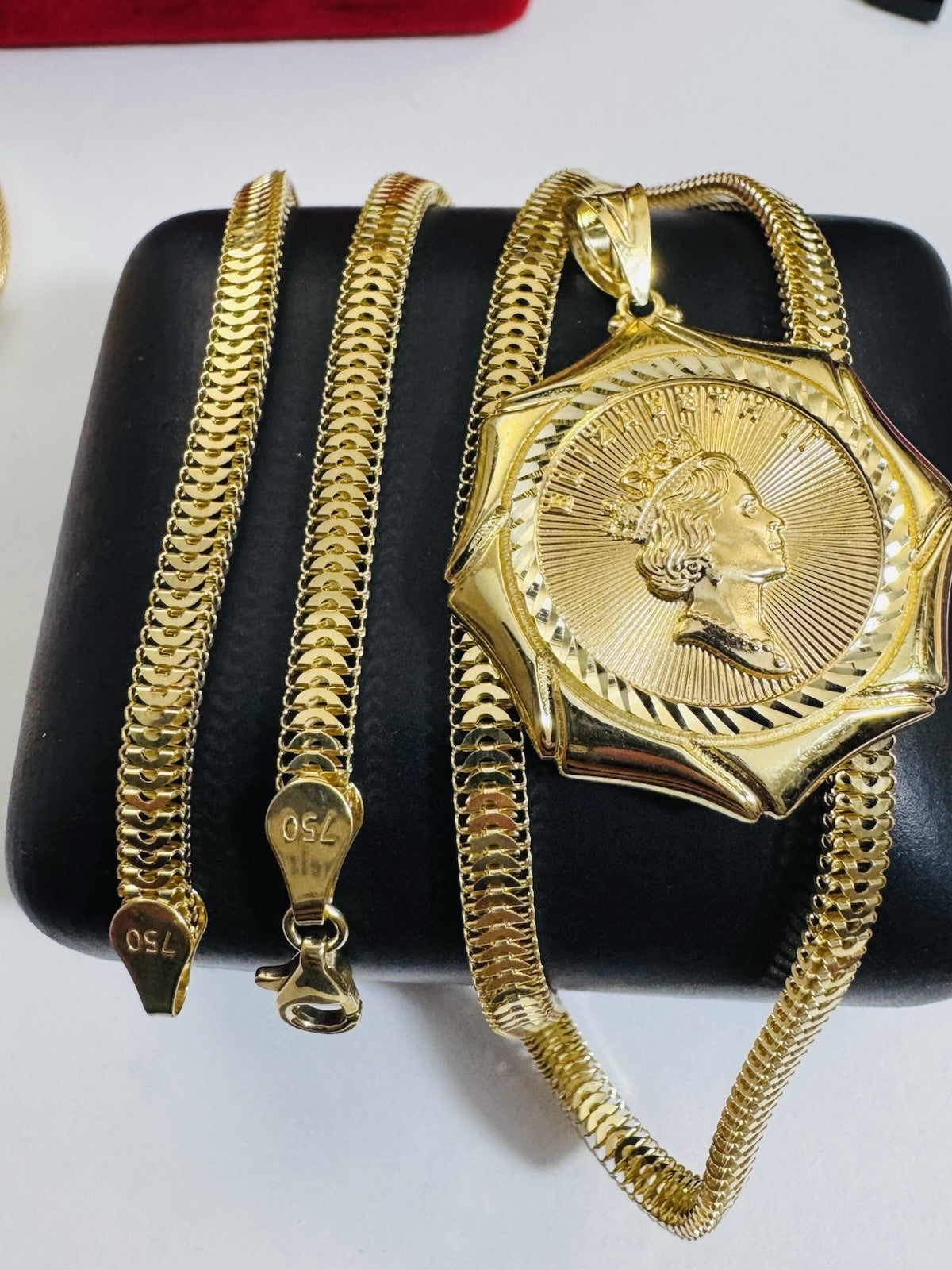 This beautiful necklace is expertly crafted in 18K 750 real yellow gold and features a stunning 18 inch Snake chain Set Necklace with a lobster clasp with 4mm wide. 16.04g