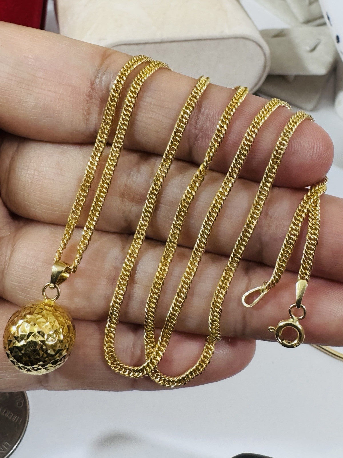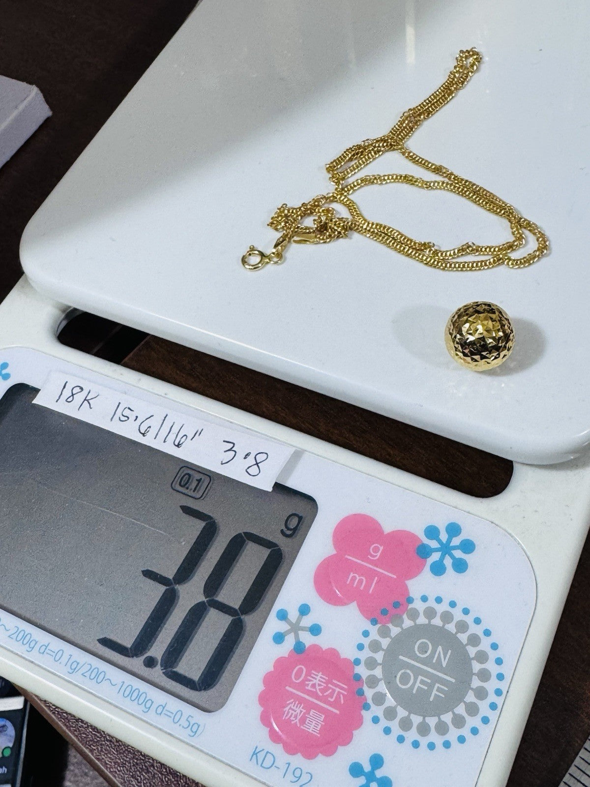 18K 750 Genuine Gold Ball Charm Necklace 15.6/16” Inch Long 3.8g 2.5mm Choker