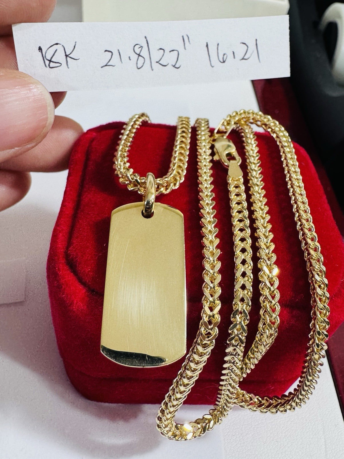 18K 750 Real Fine Solid Gold Fine Rectangle Necklace 21.8”/22” Long 3.2mm 16.5g