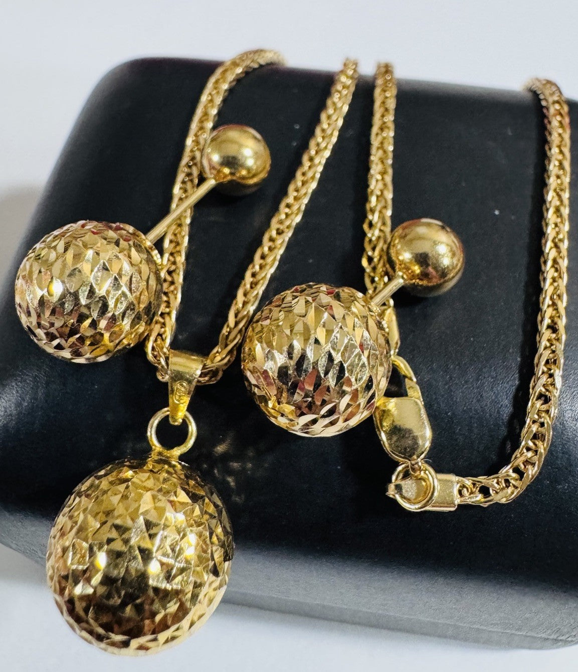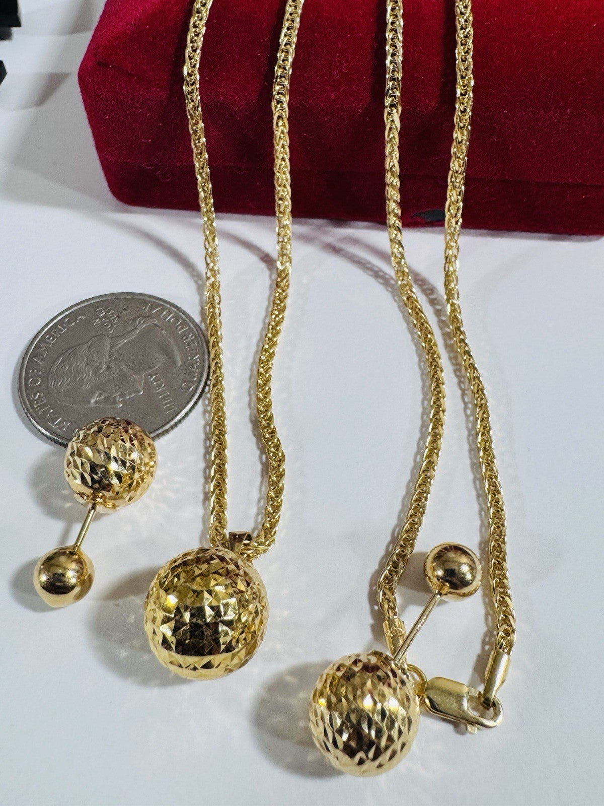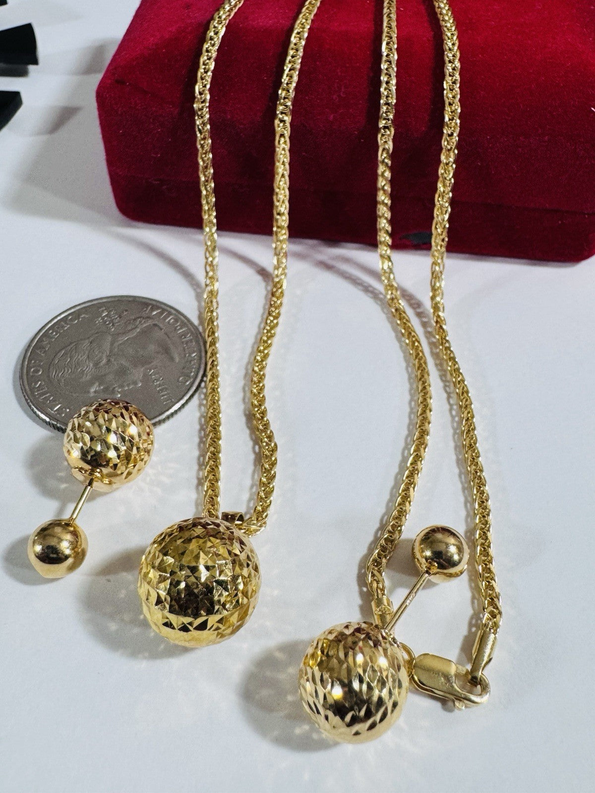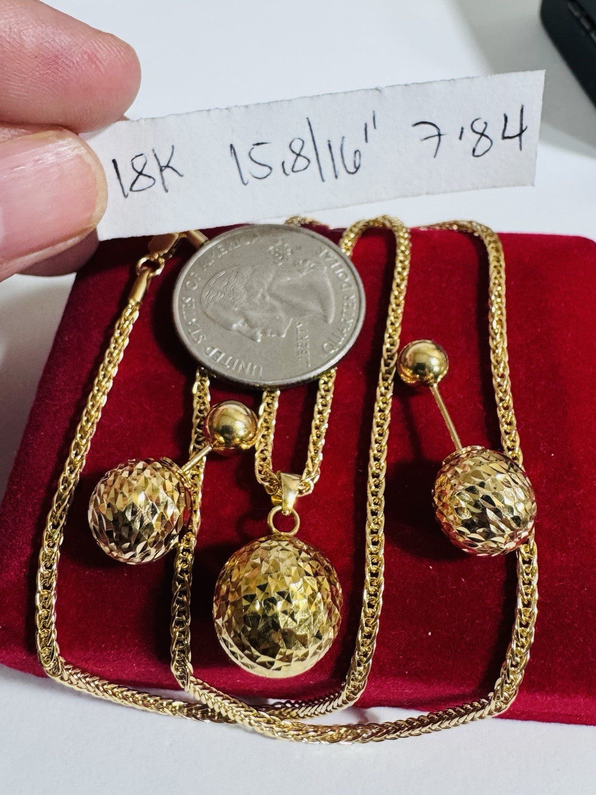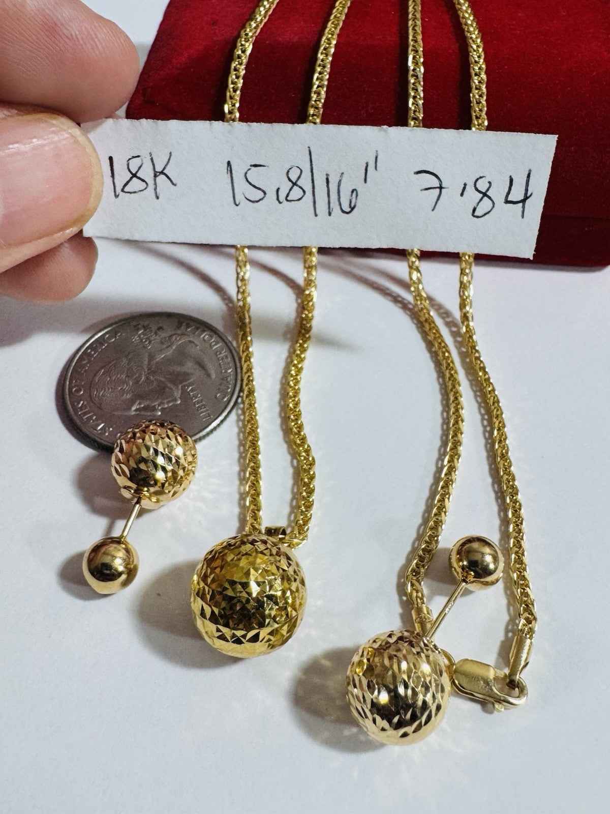 18K 750 Real Genuine Gold Ball Earring & Necklace 15.6/16” Inch Long 7.84g 2.2mm