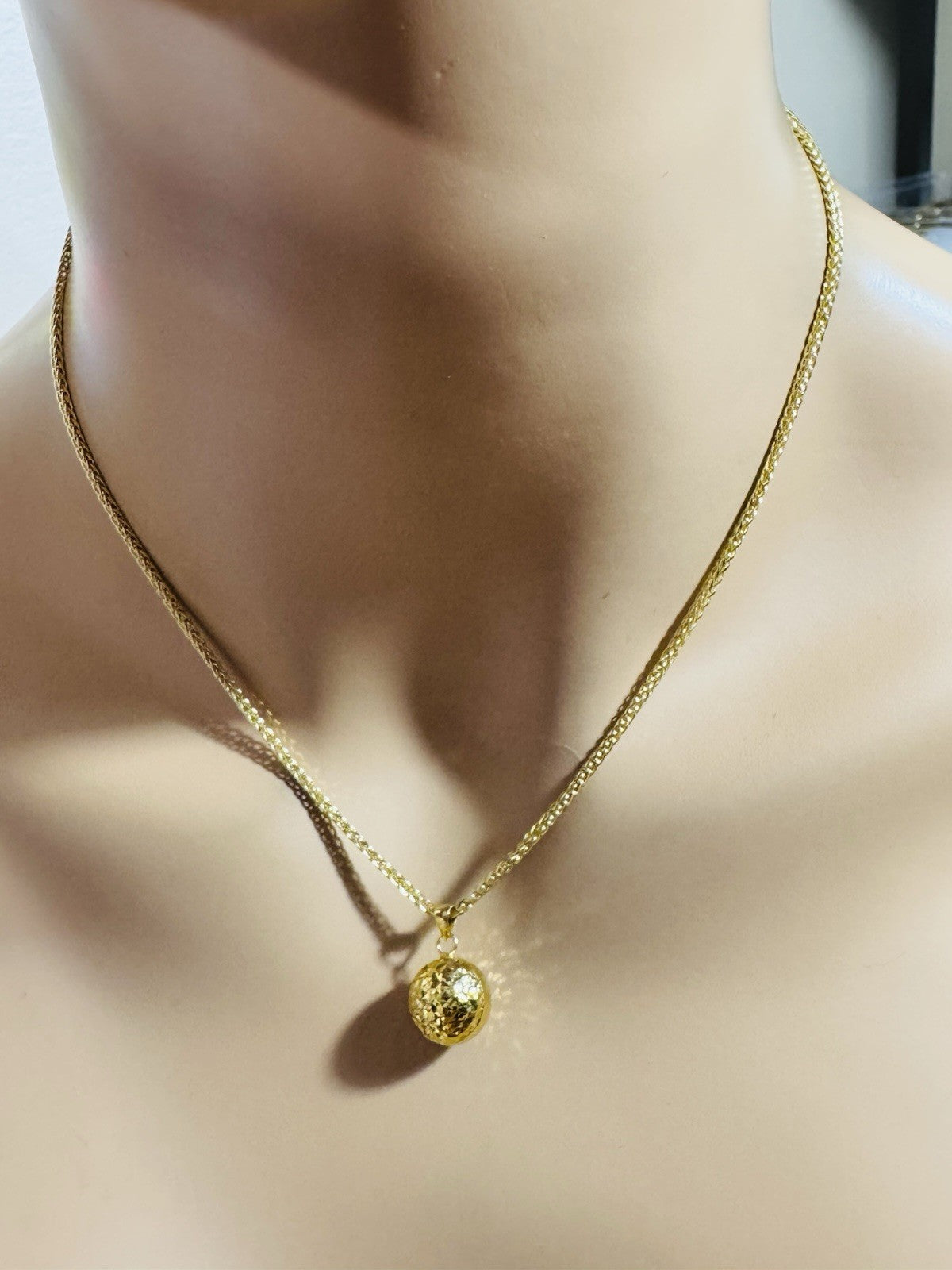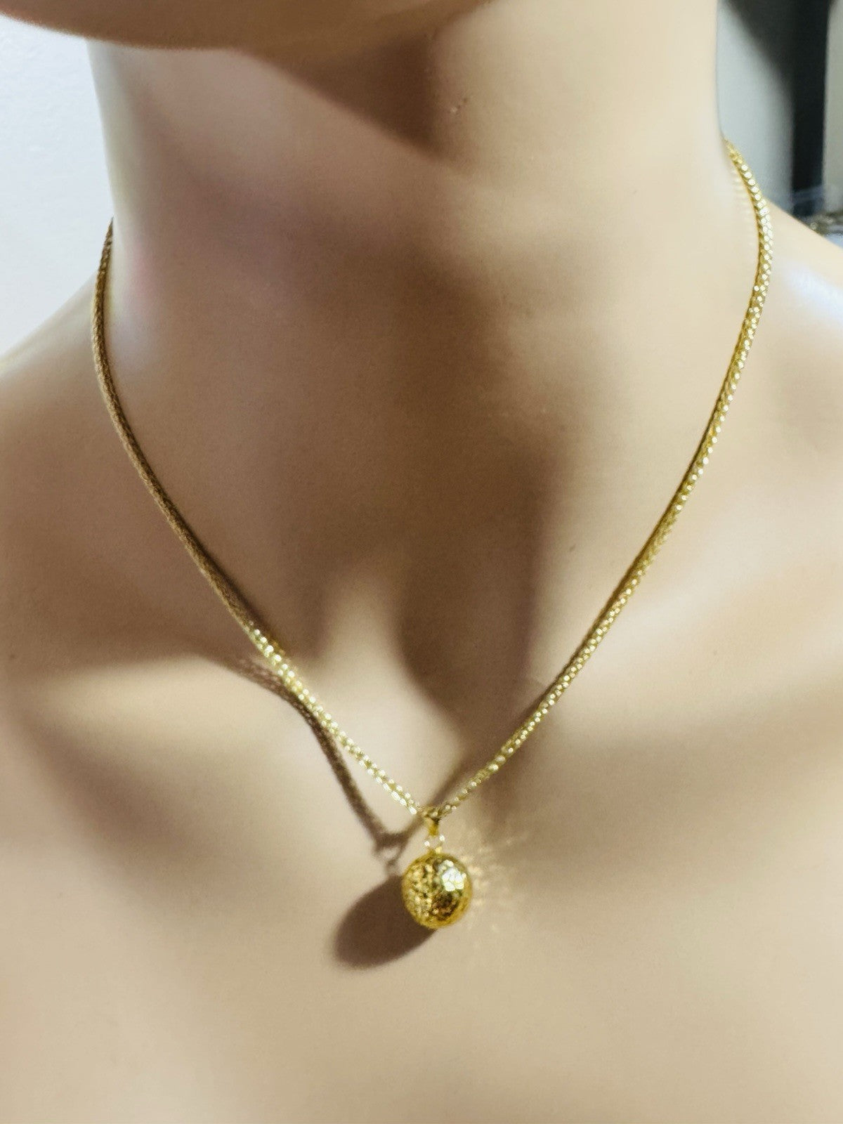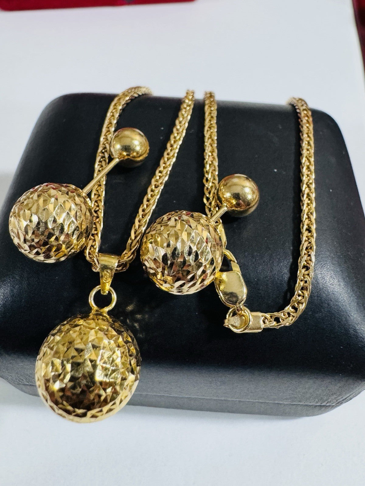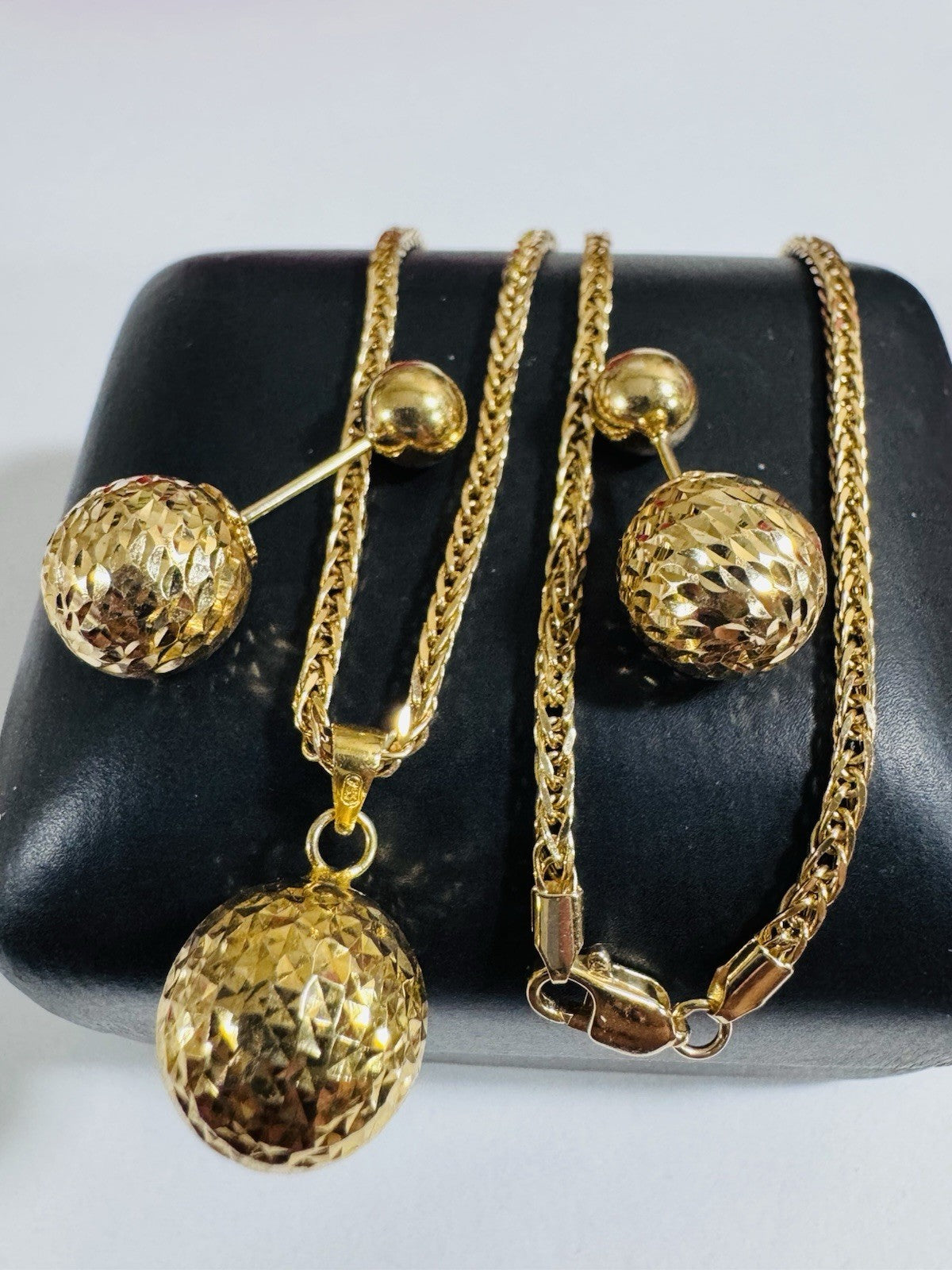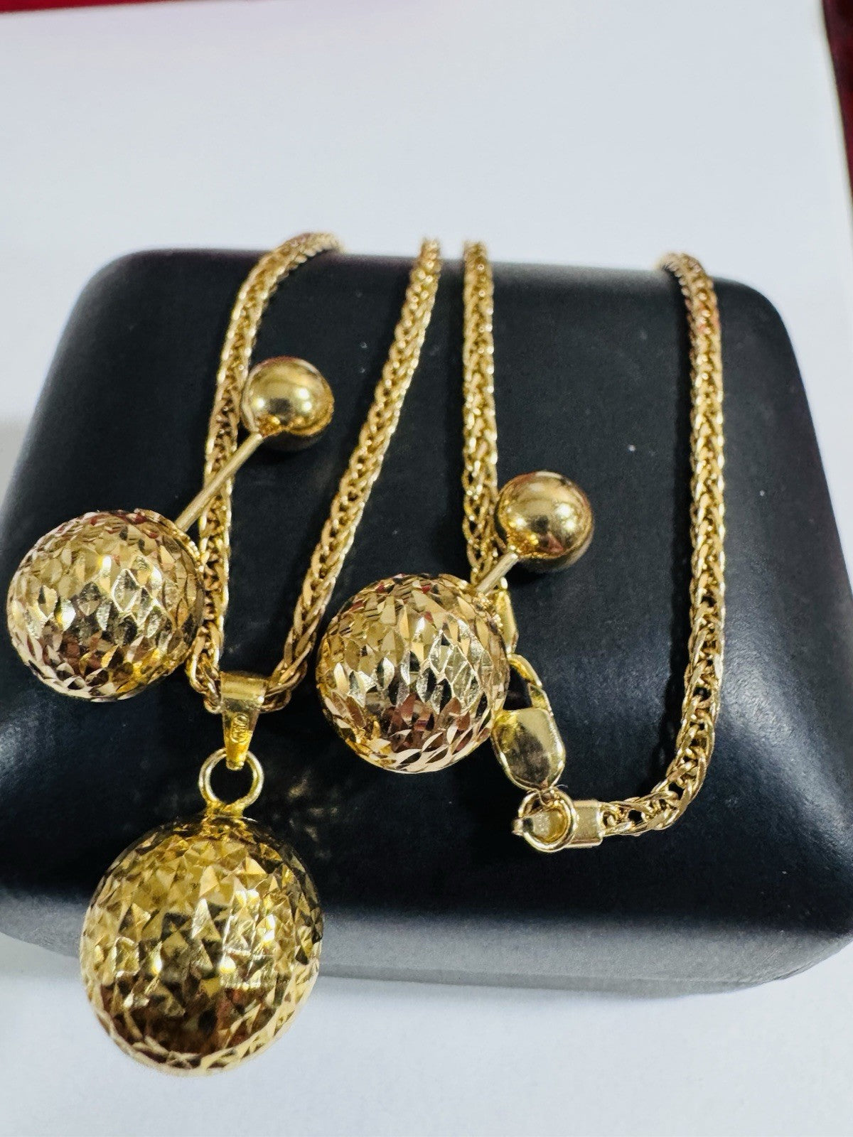 18K 750 Real Genuine Gold Ball Earring & Necklace 15.6/16” Inch Long 7.84g 2.2mm