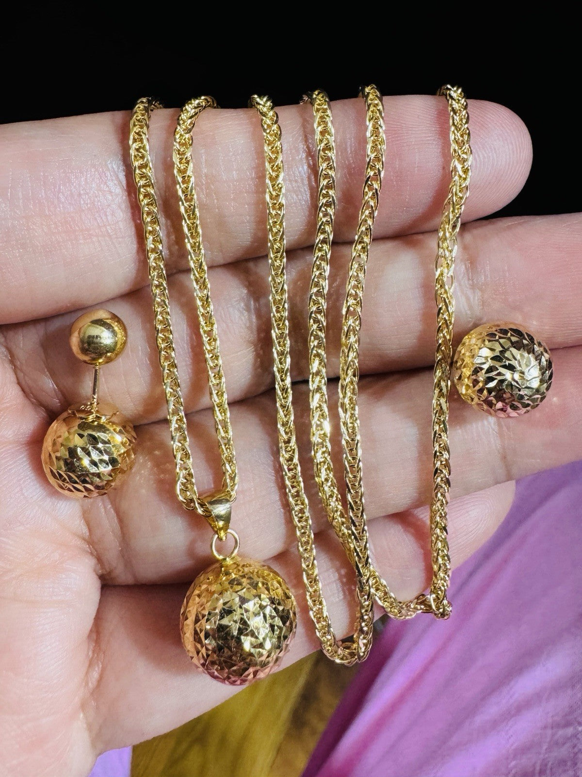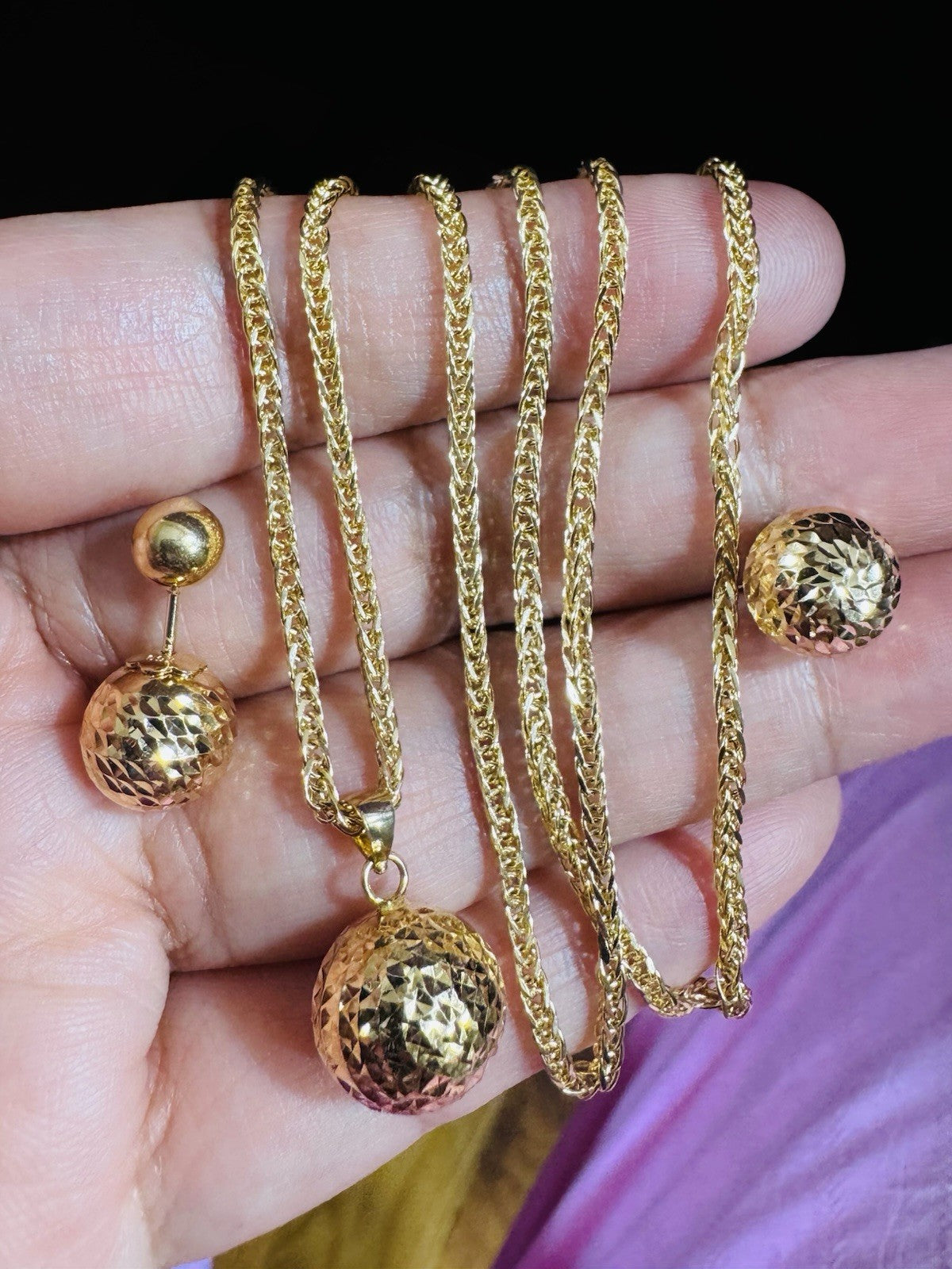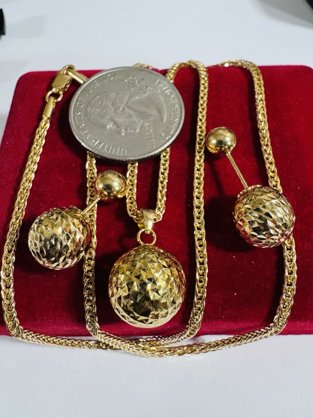 Metal: 18K Yellow Gold (Real and Genuine 18k Au750 Set Earring Pendant with Necklace Gold (Not Gold plated -Not Filled, Not Fake) Stone Not DIA.