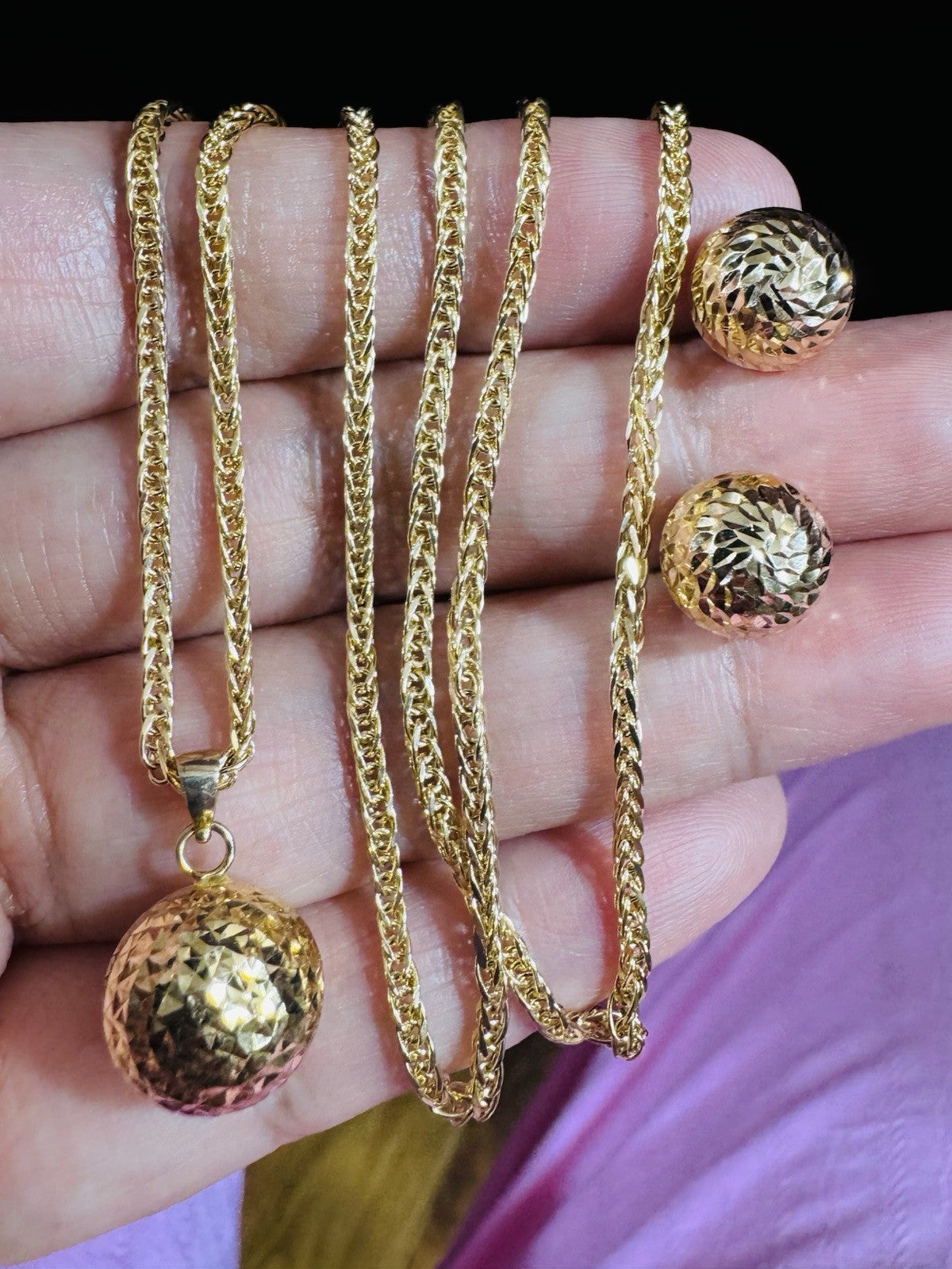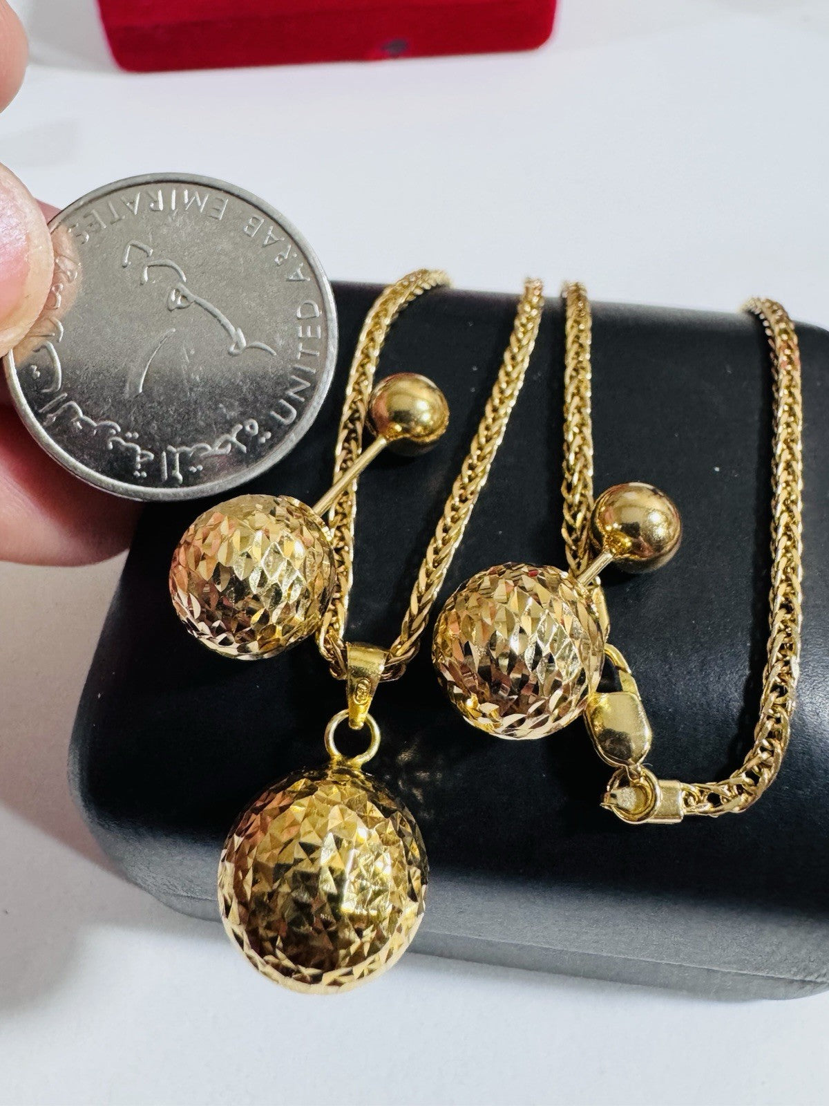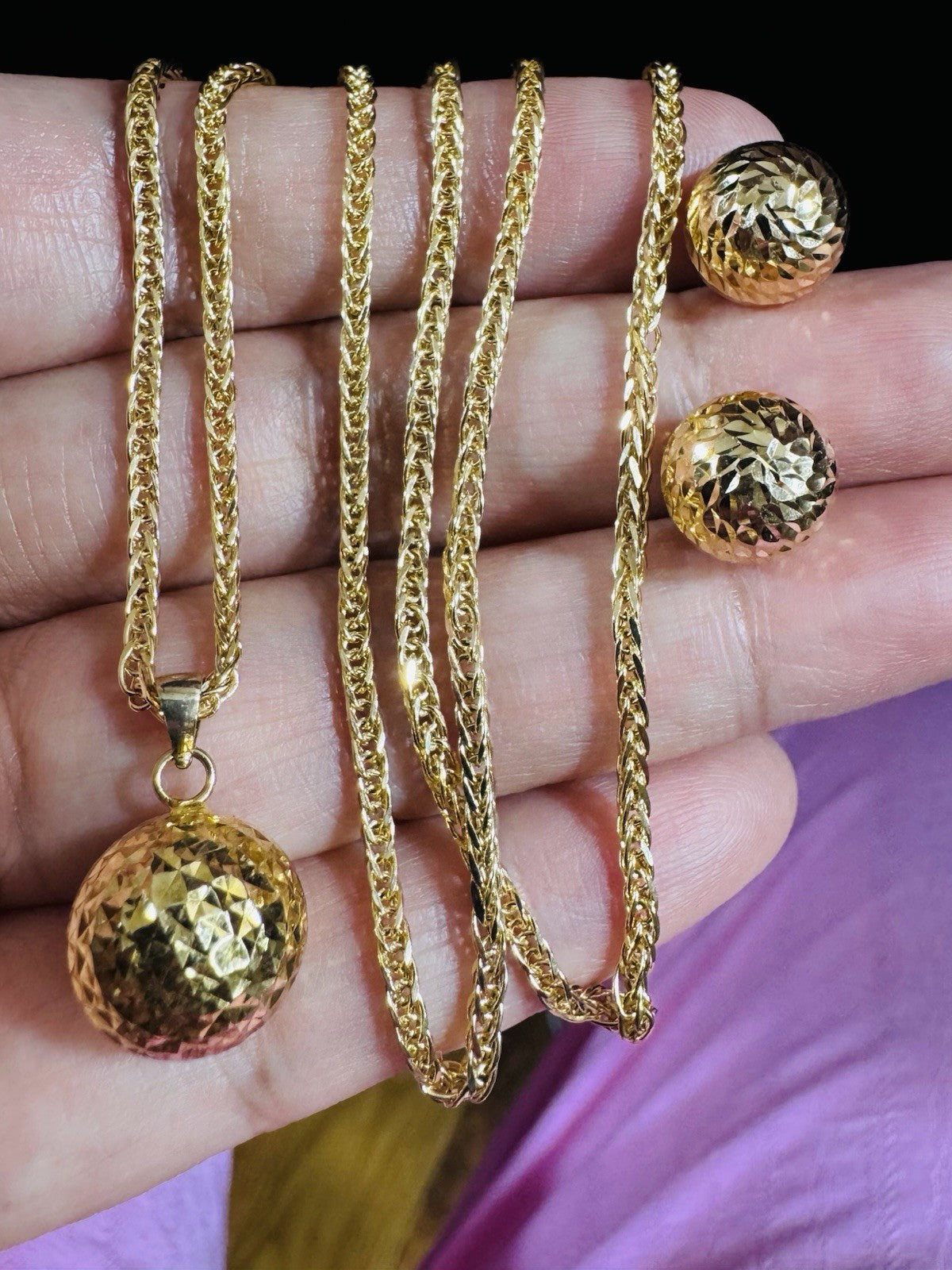 Metal: 18K Yellow Gold (Real and Genuine 18k Au750 Set Earring Pendant with Necklace Gold (Not Gold plated -Not Filled, Not Fake) Stone Not DIA.