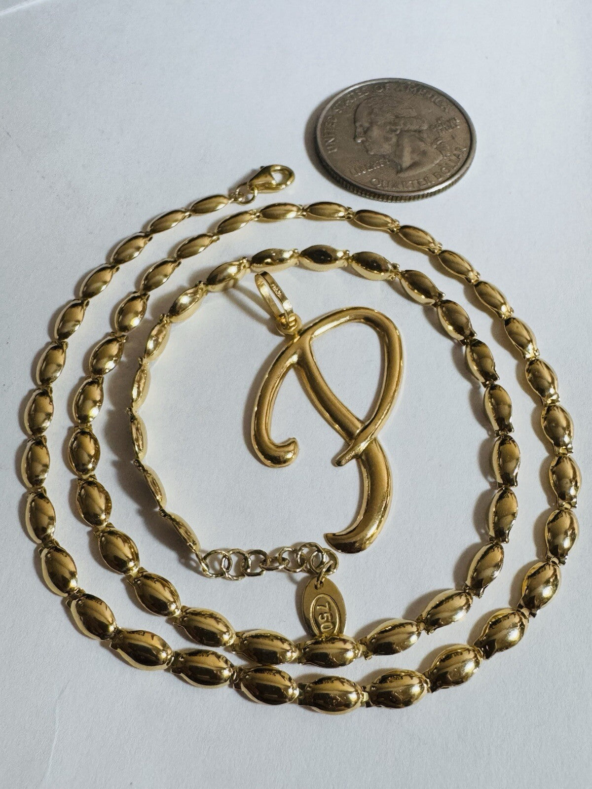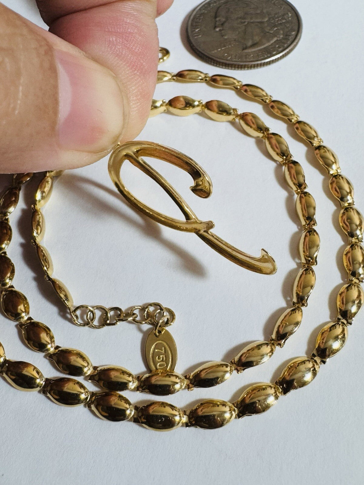 This stunning 18K 750 fine yellow gold necklace is a timeless piece perfect for any occasion. The P Necklace is 17”/18”inches long features a secure closure for easy wear 9.5grams 3.5mm wide chain.