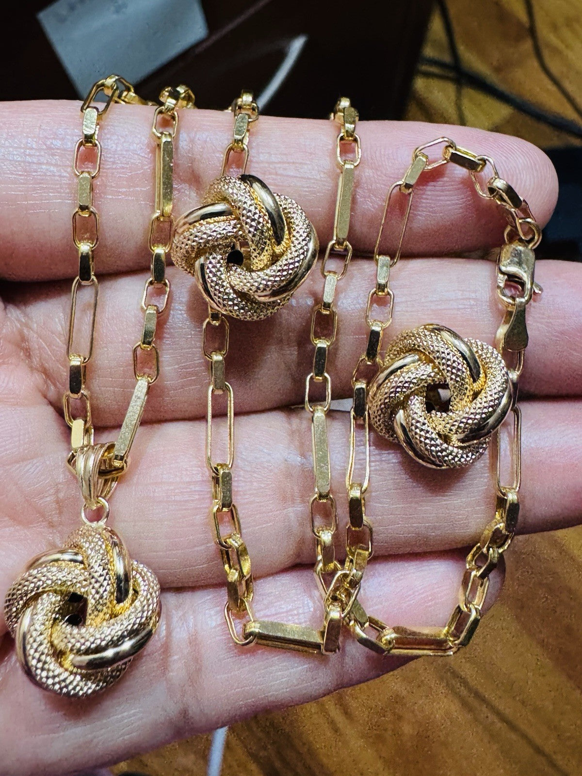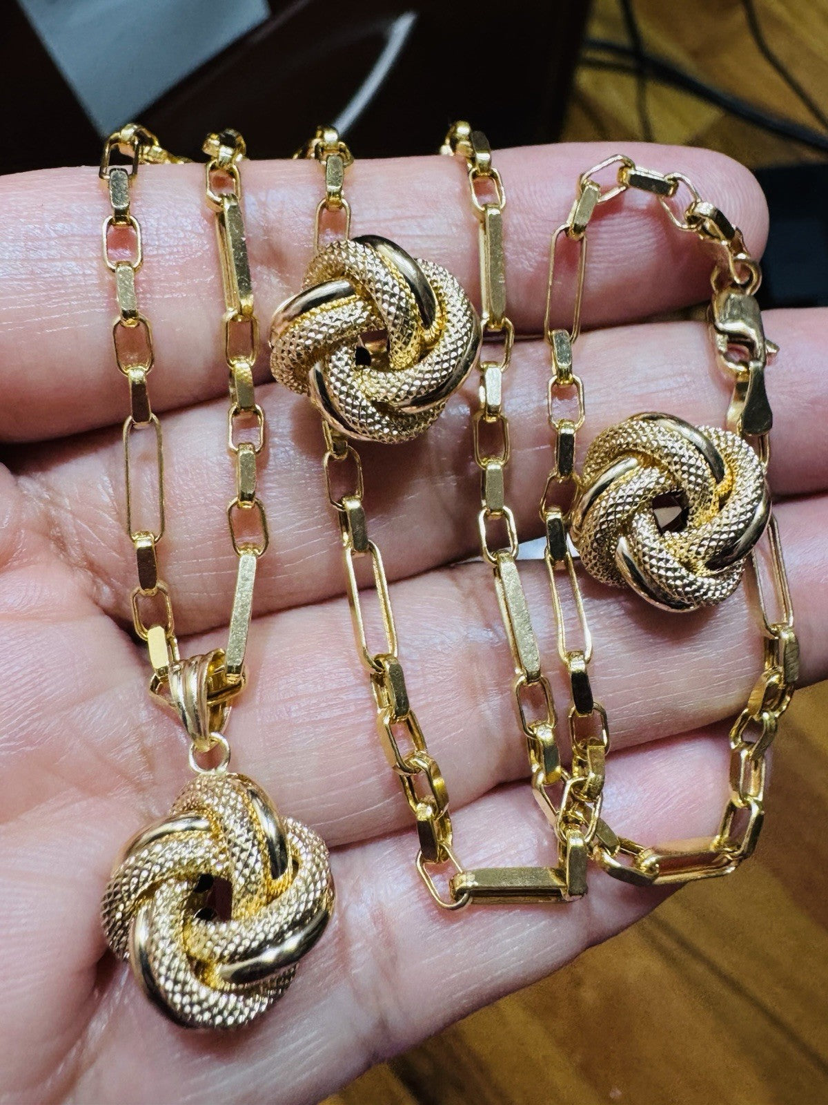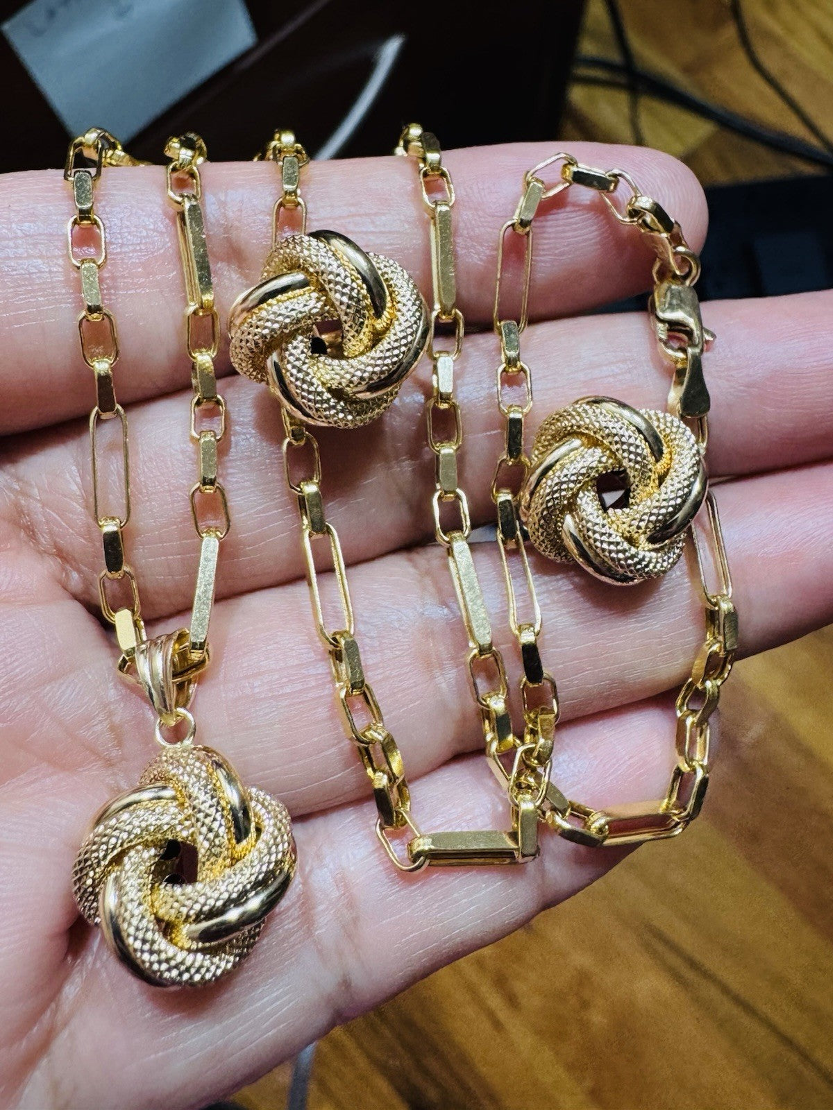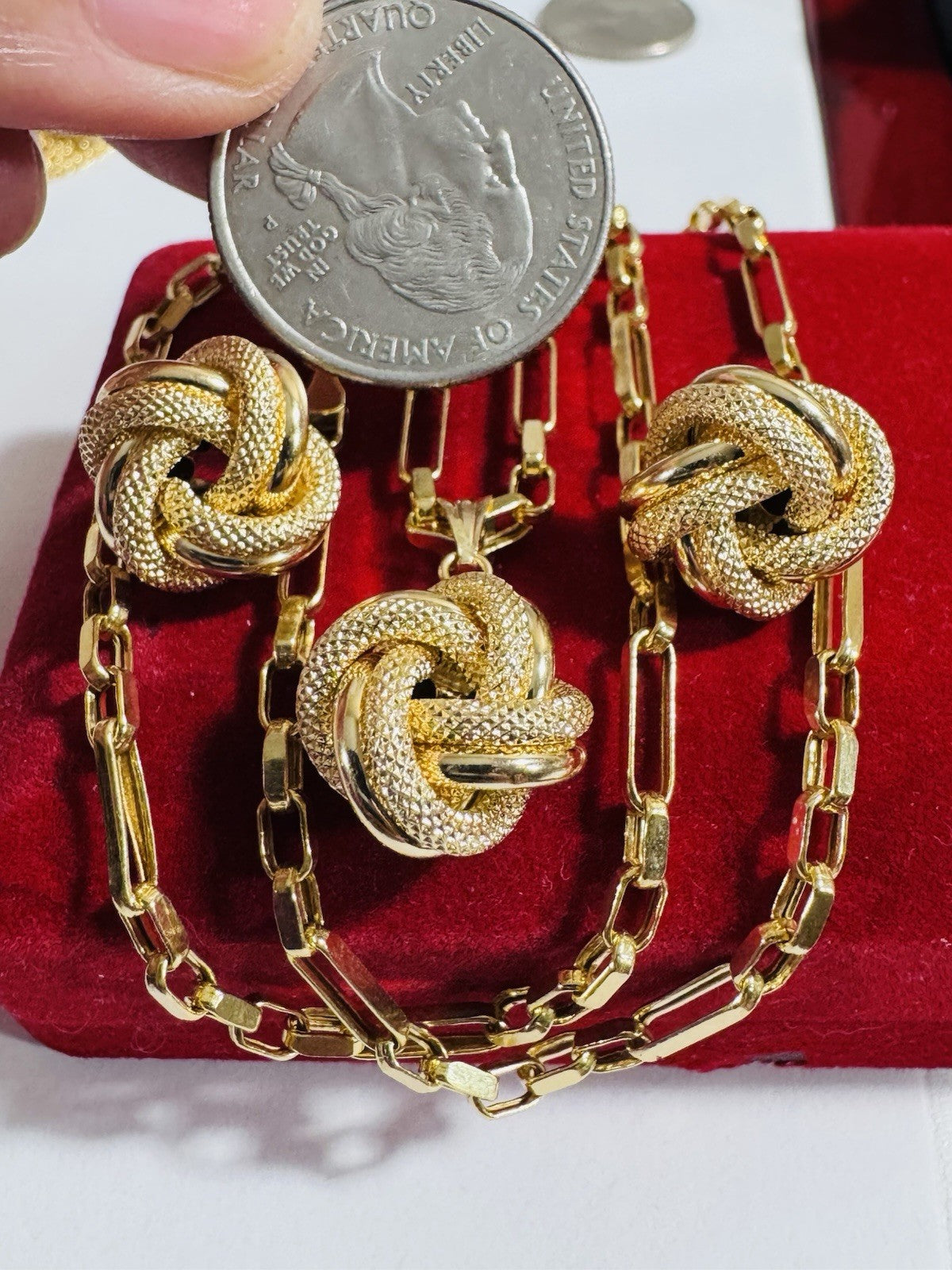 18K 750 Real Genuine Gold Knot Earring & Necklace 18” Inch Long 9.8g 3.2mm