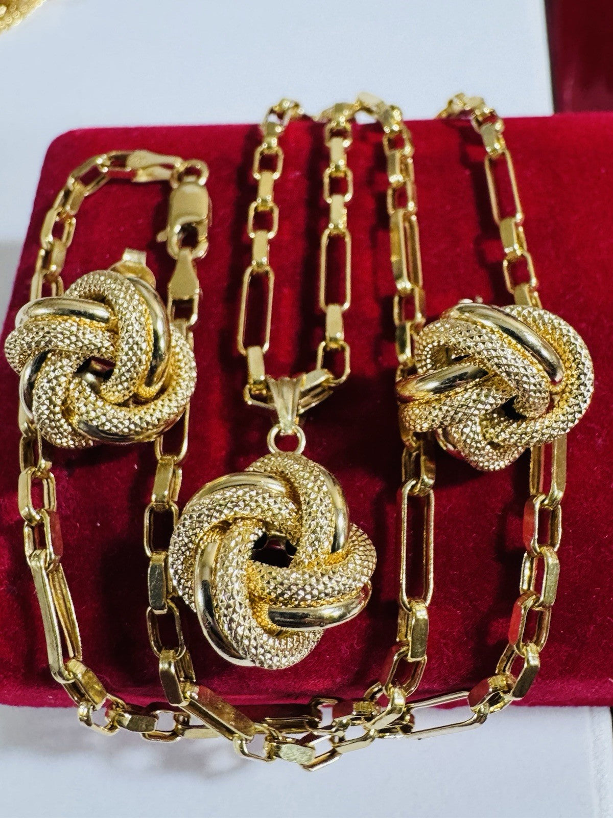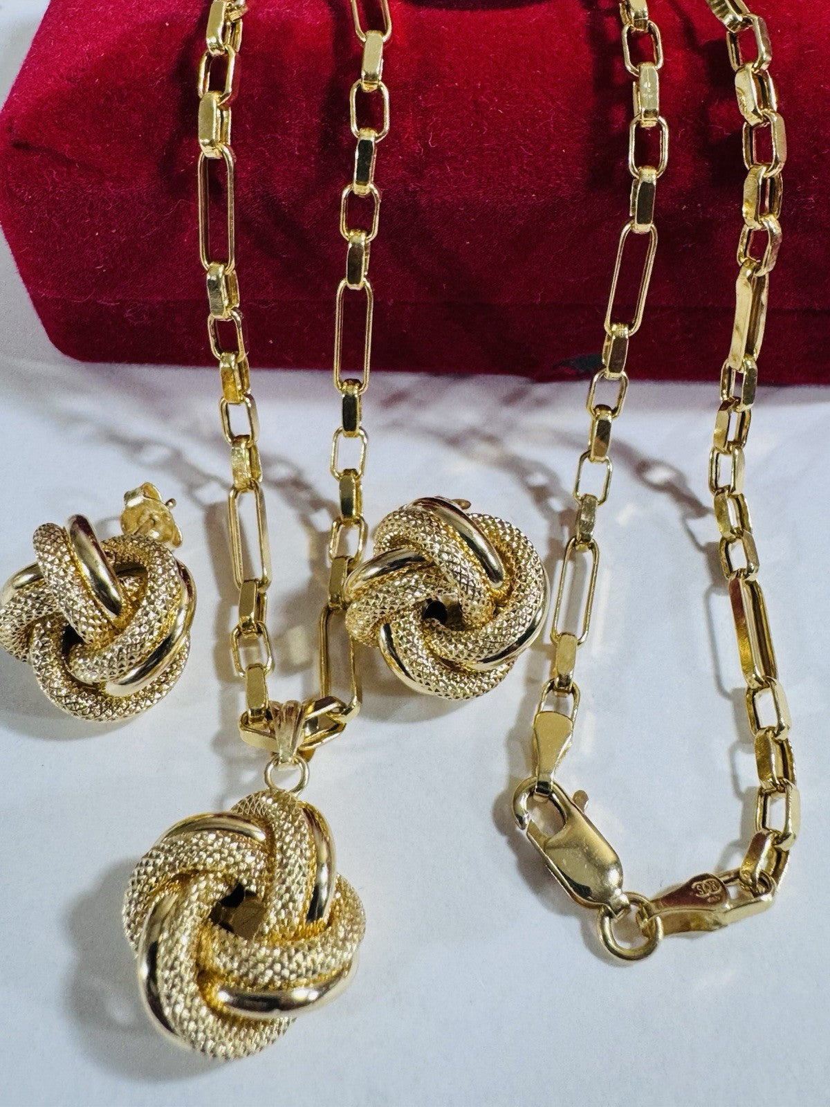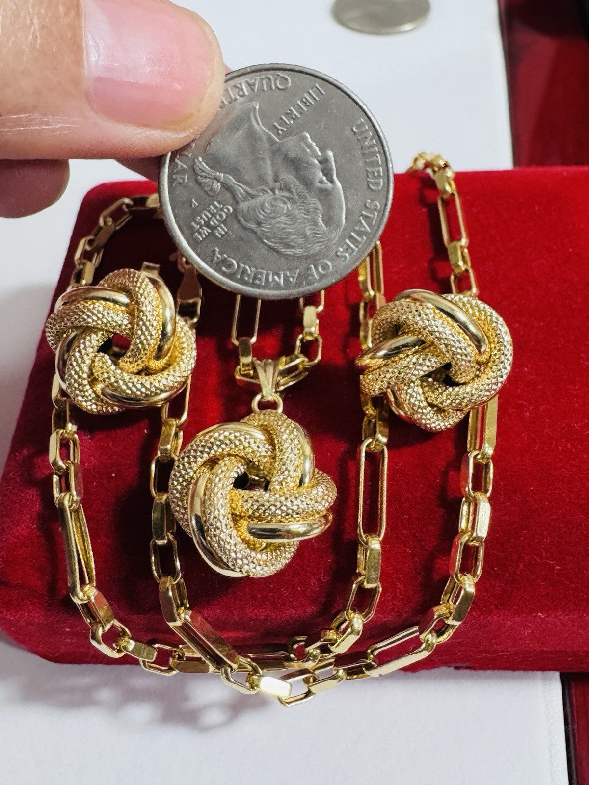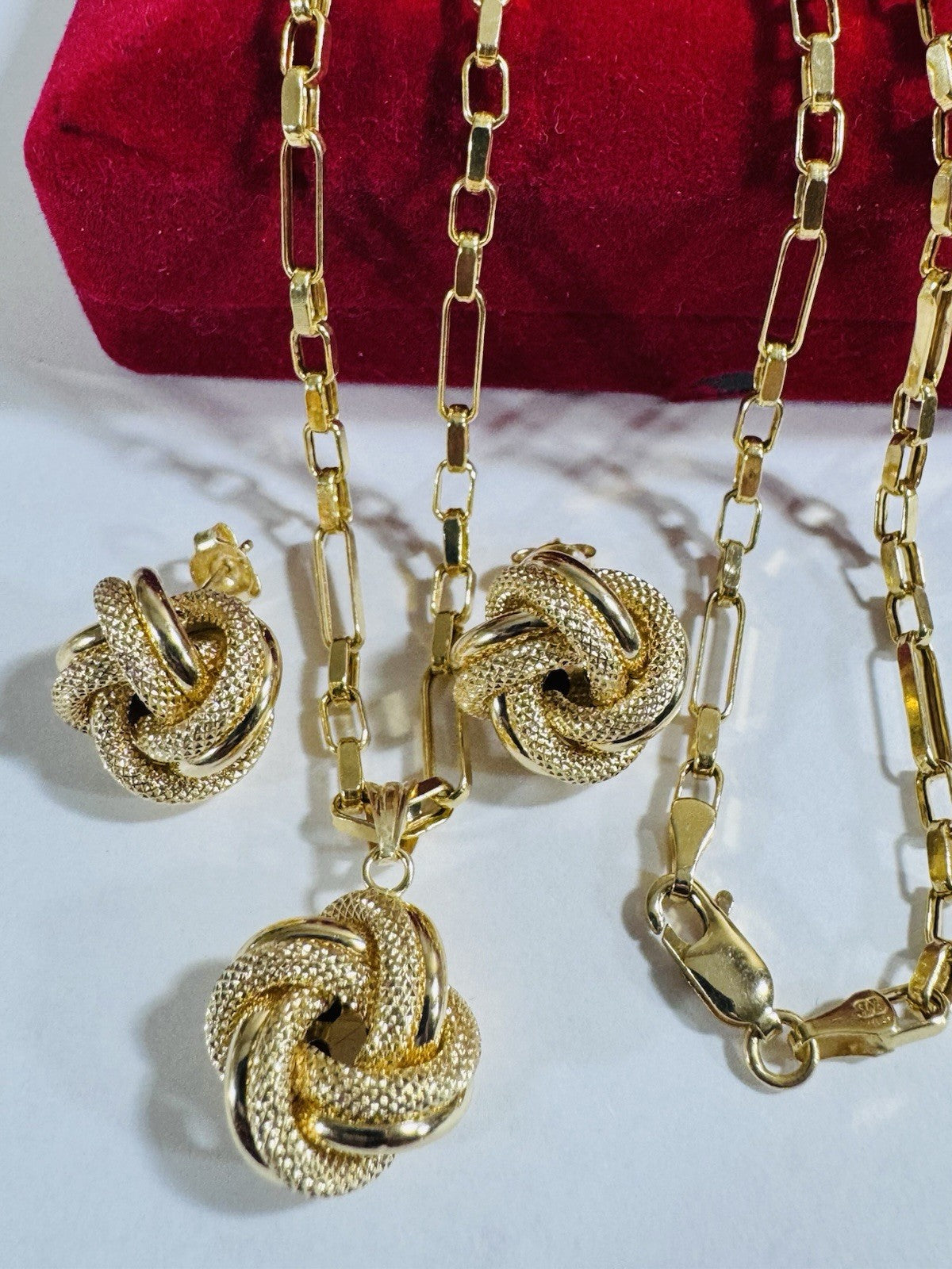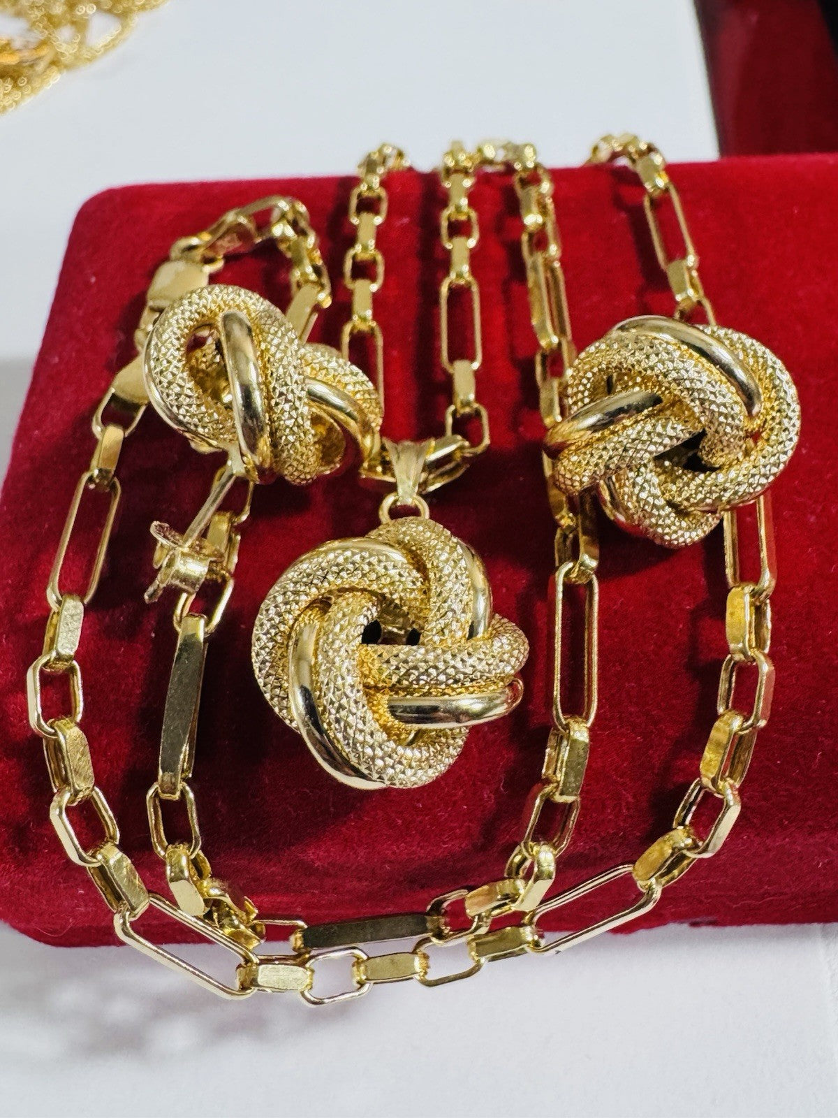 18K 750 Real Genuine Gold Knot Earring & Necklace 18” Inch Long 9.8g 3.2mm