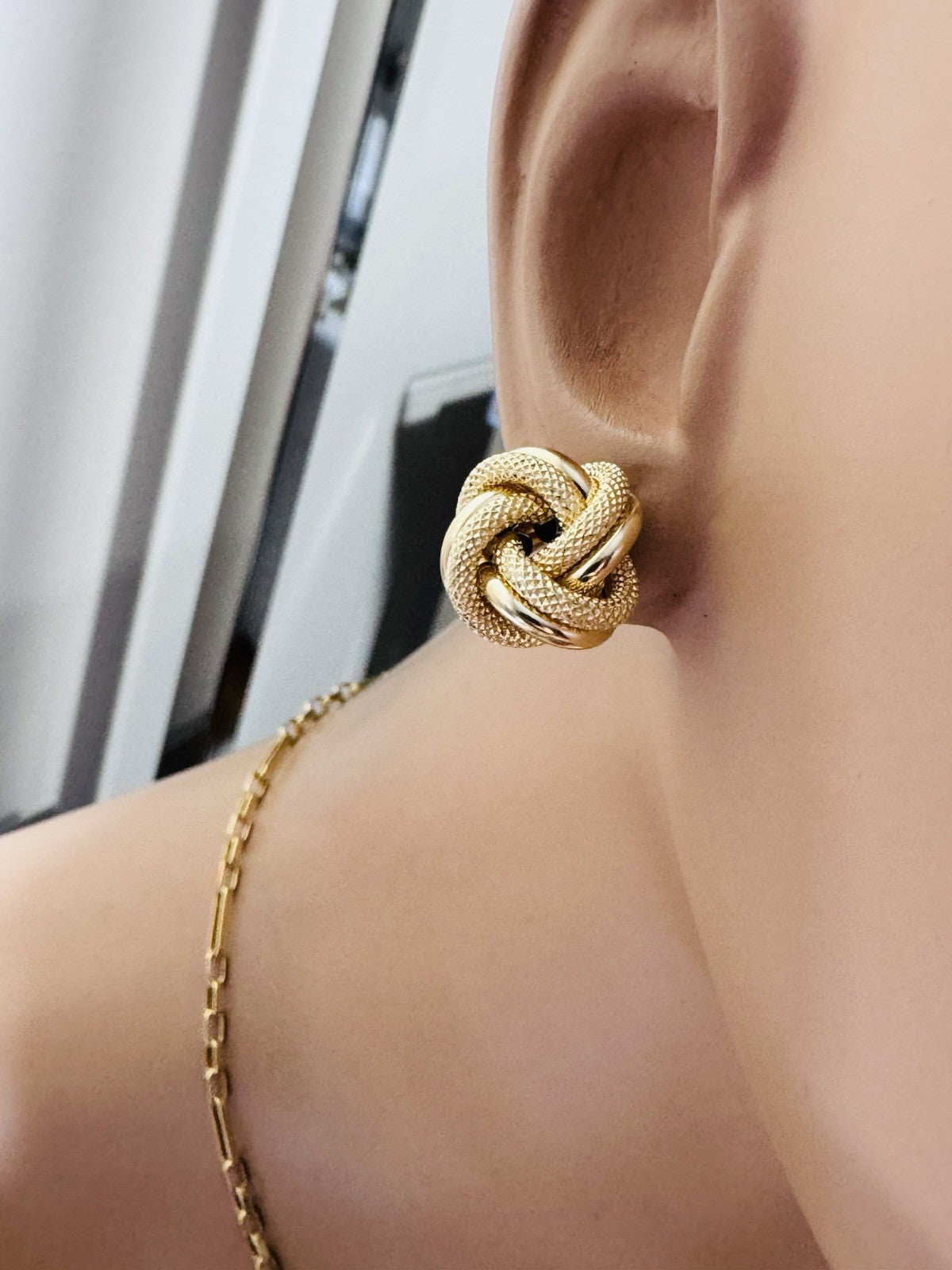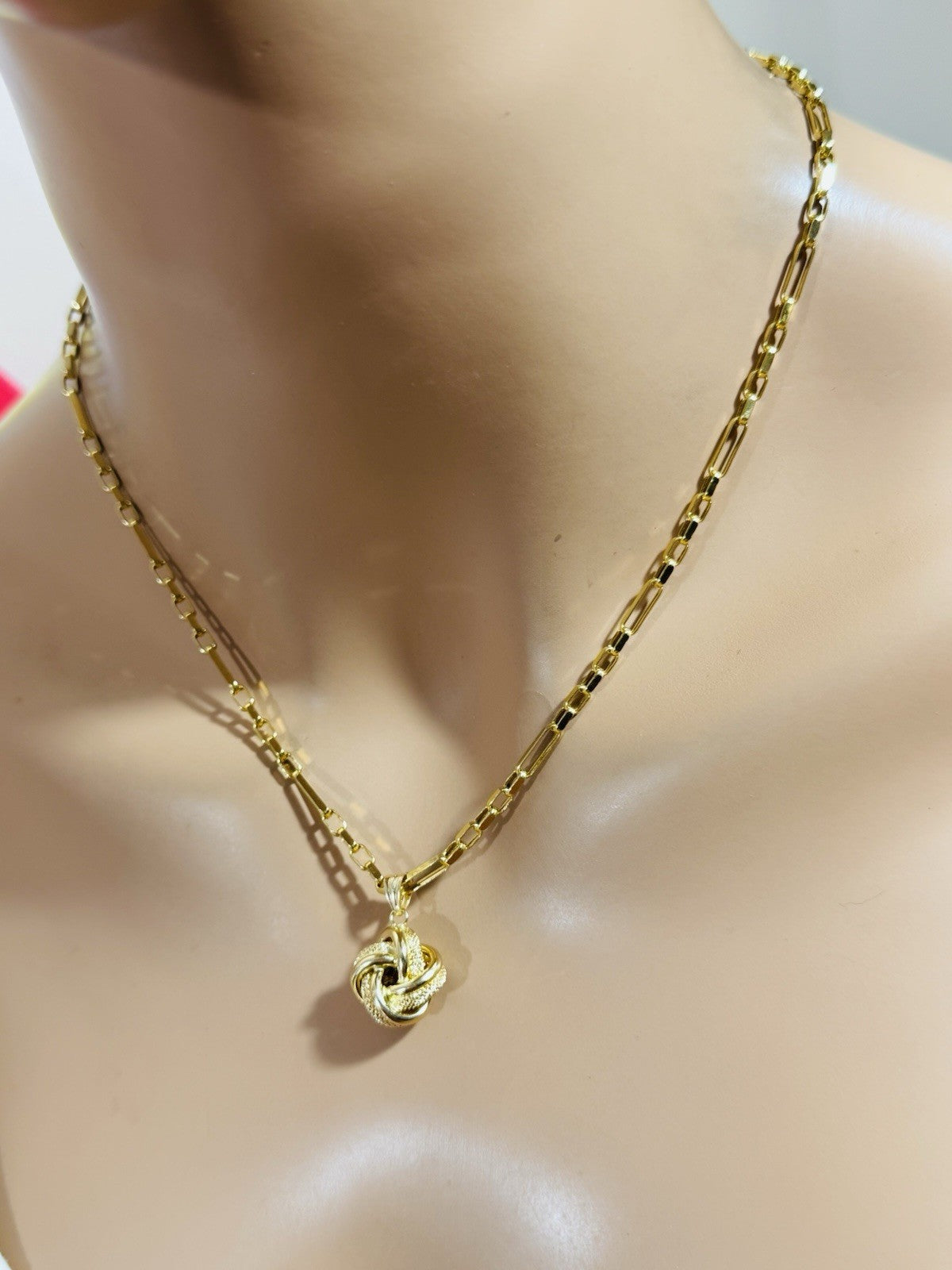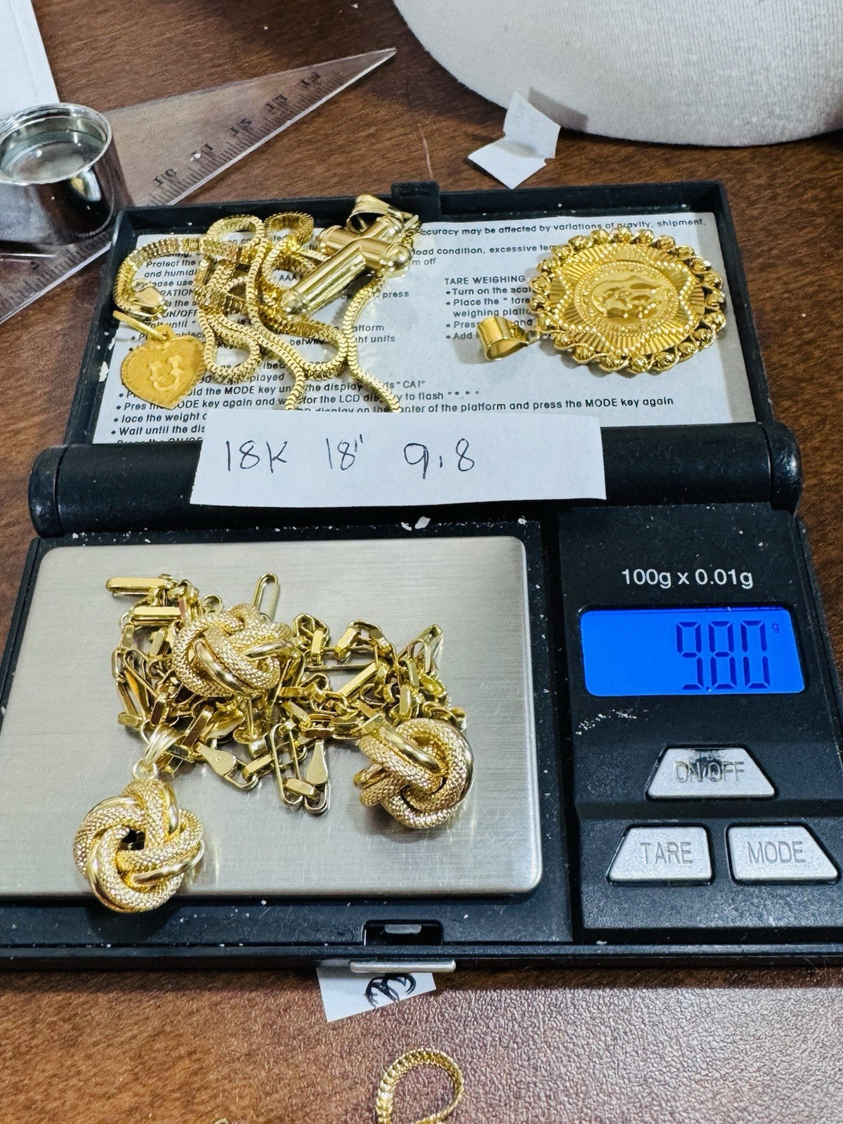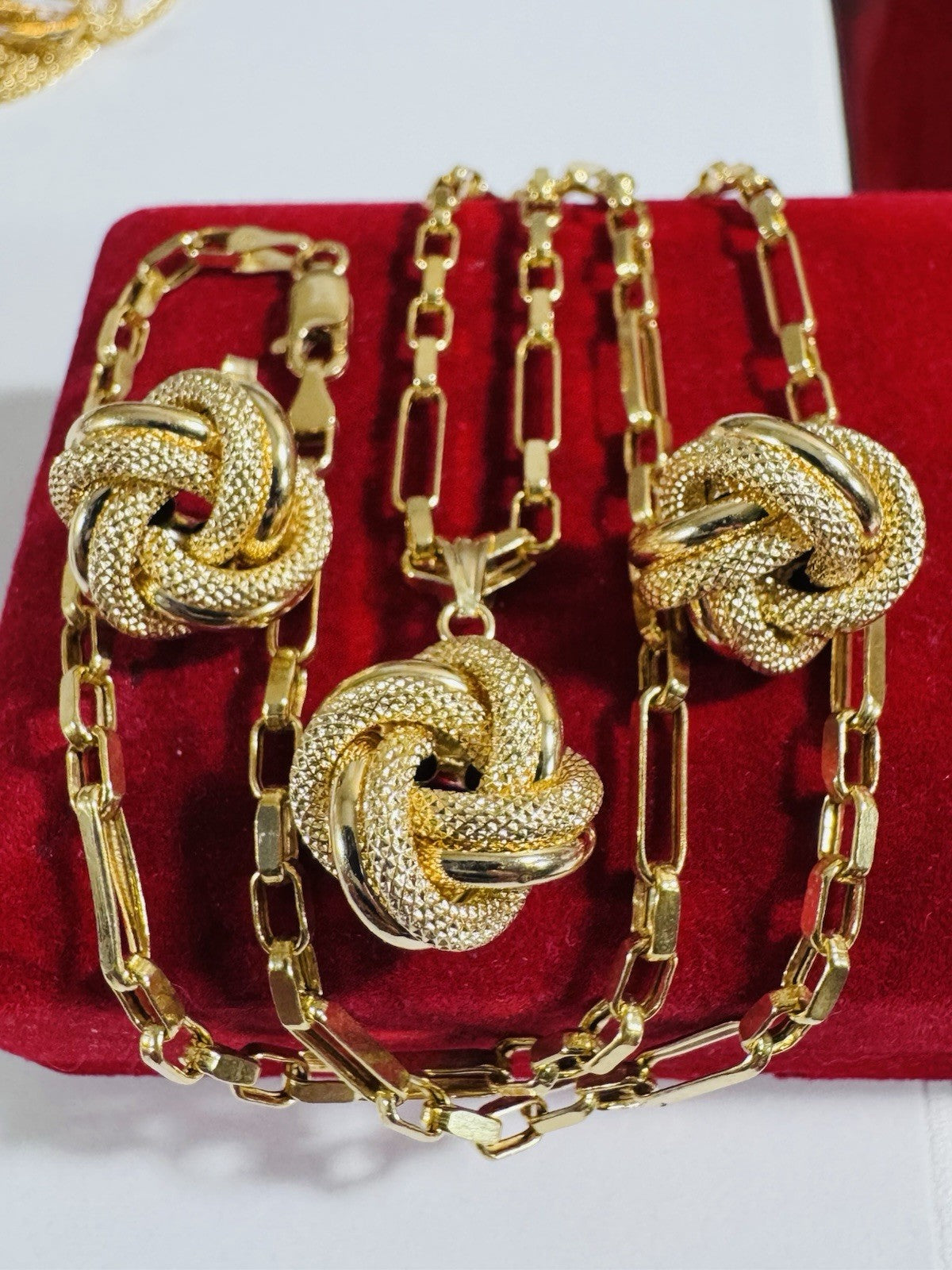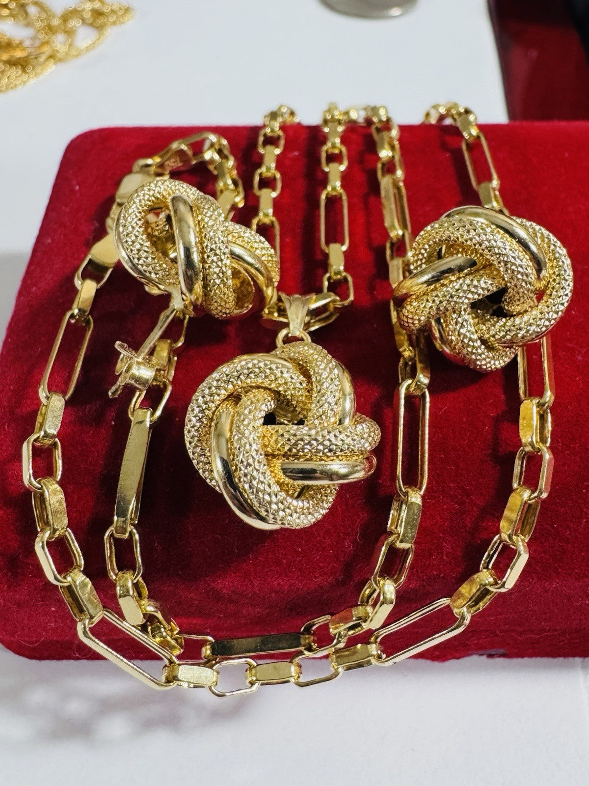 18K 750 Real Genuine Gold Knot Earring & Necklace 18” Inch Long 9.8g 3.2mm