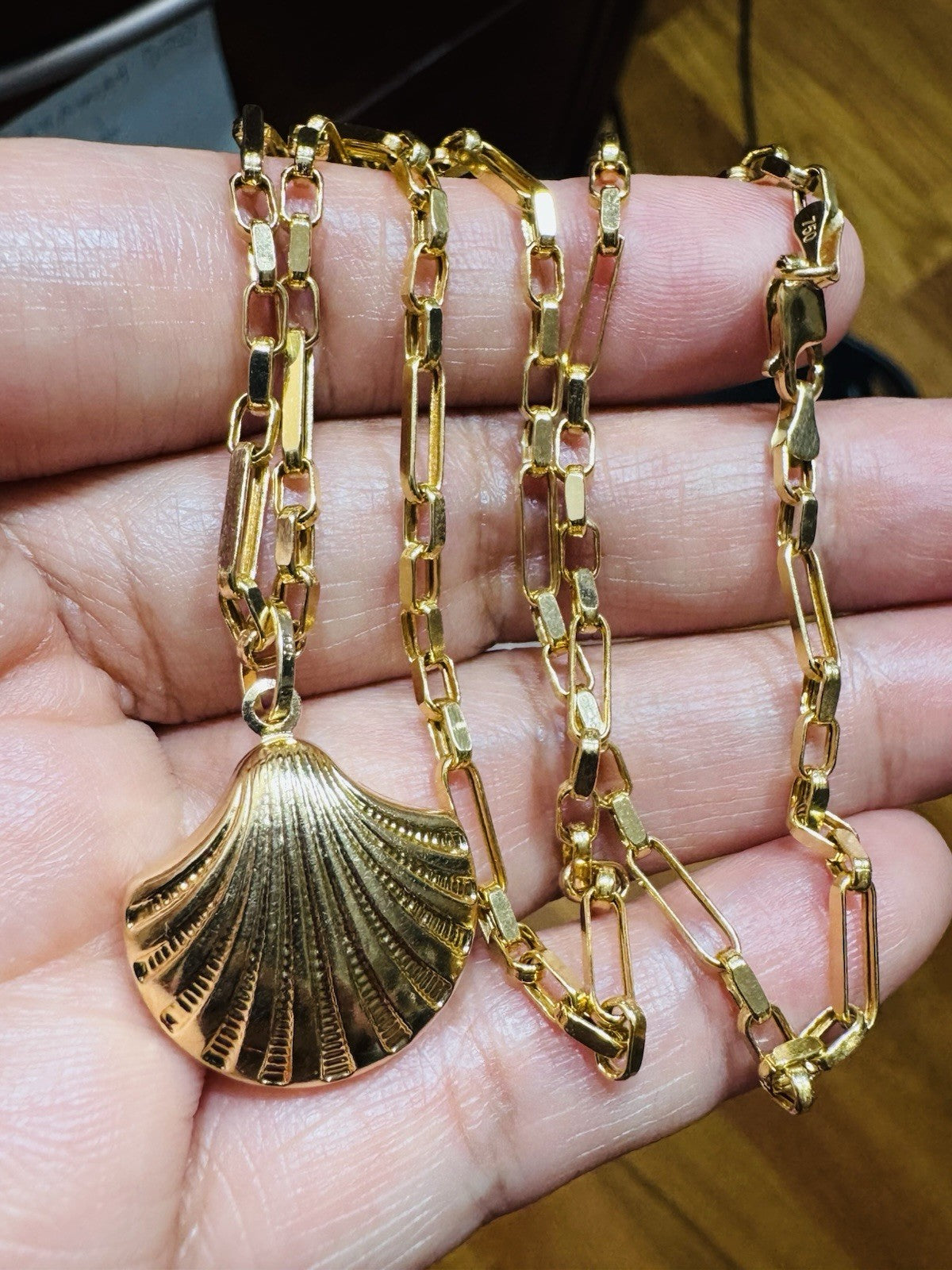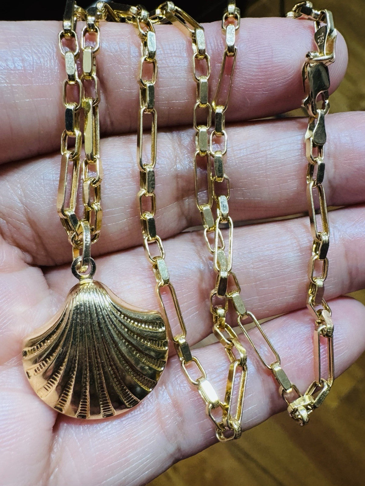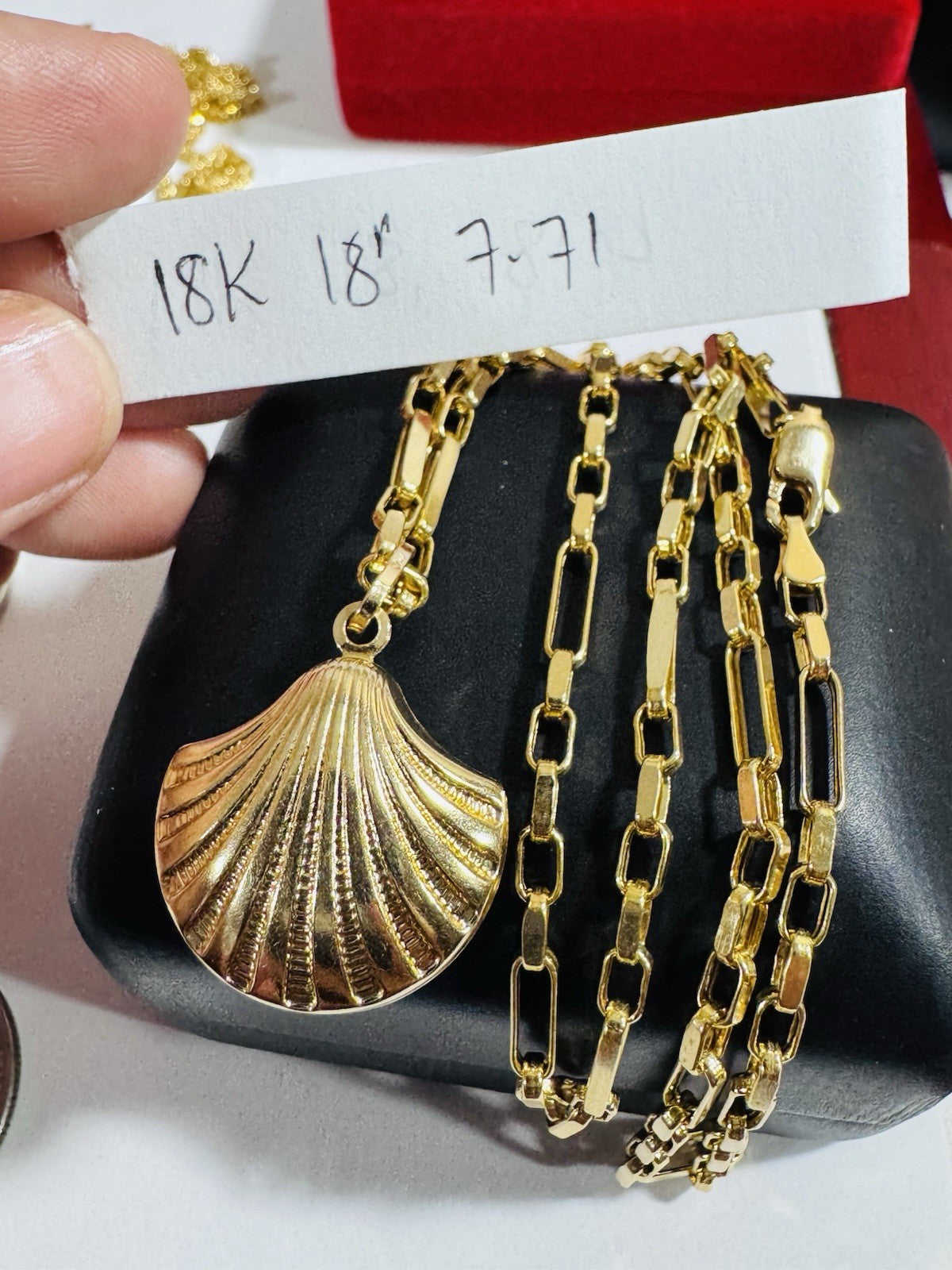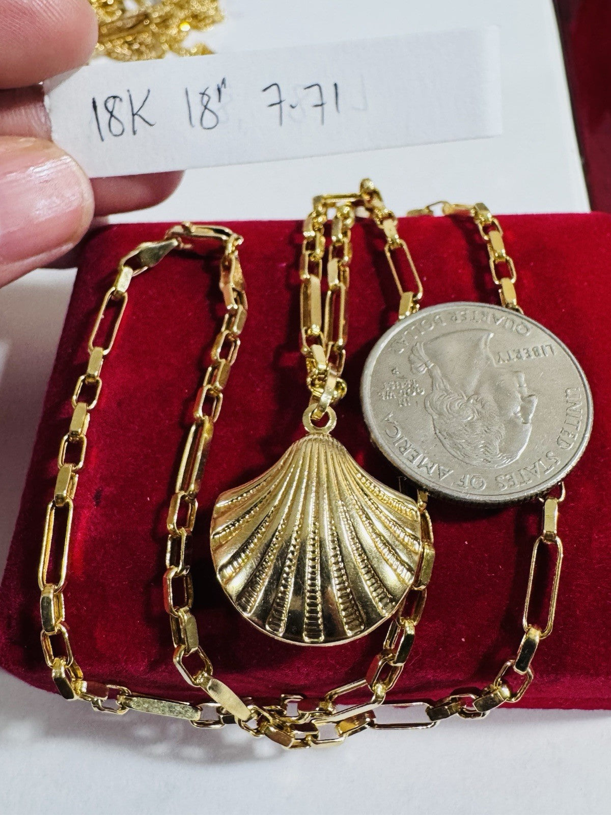18K 750 Real Genuine Gold Seashell Set Necklace 18” Inch Long 7.7g 3.2mm