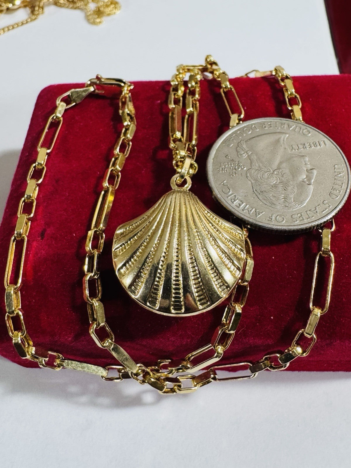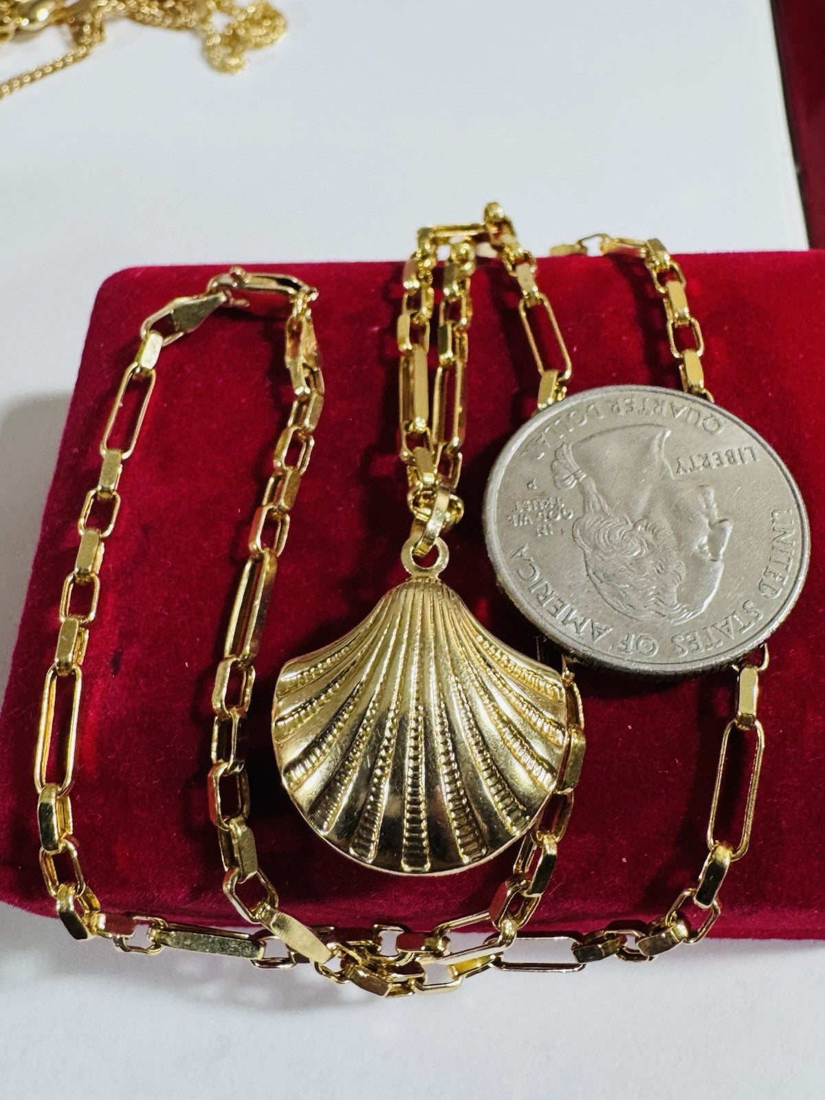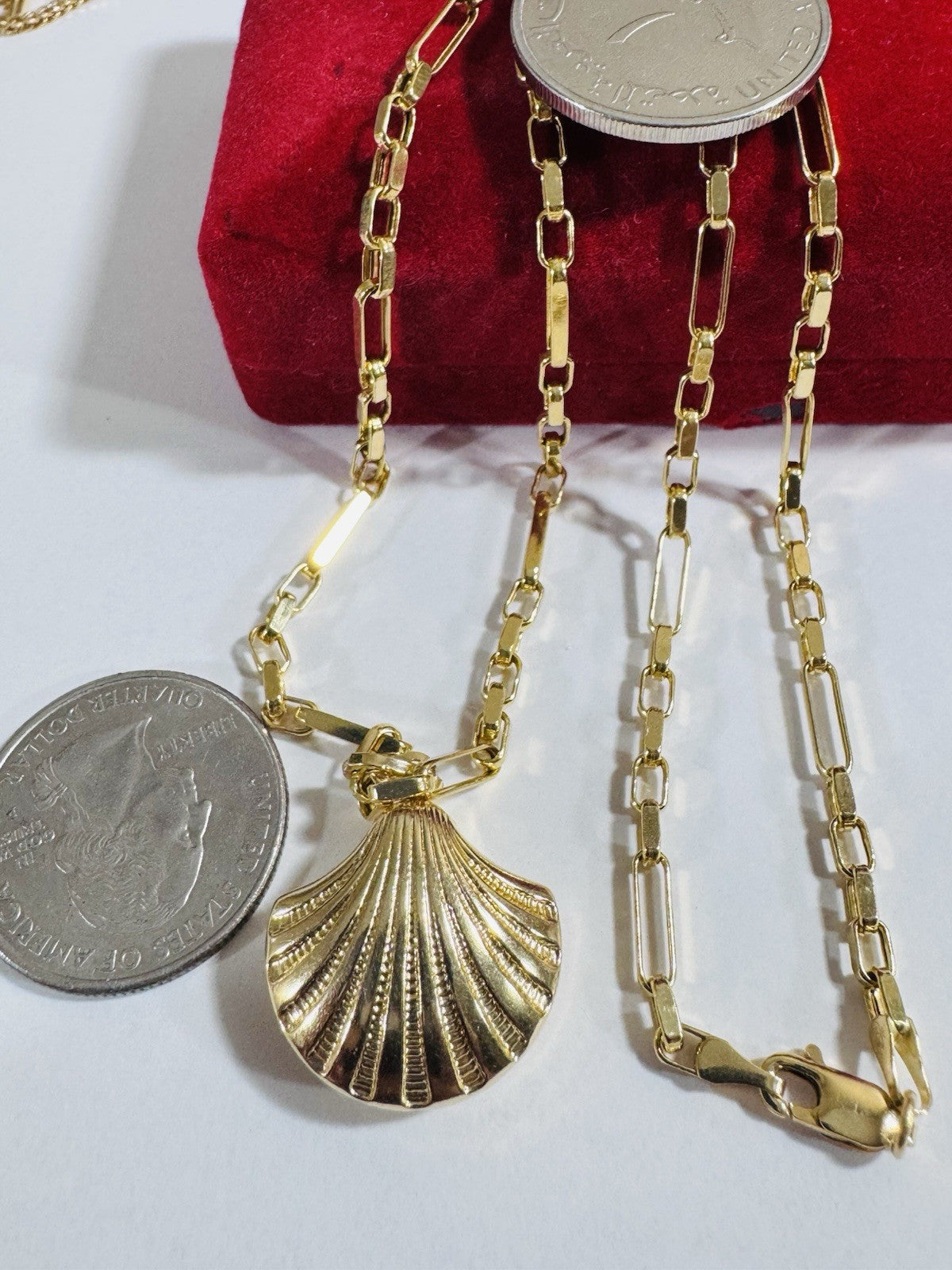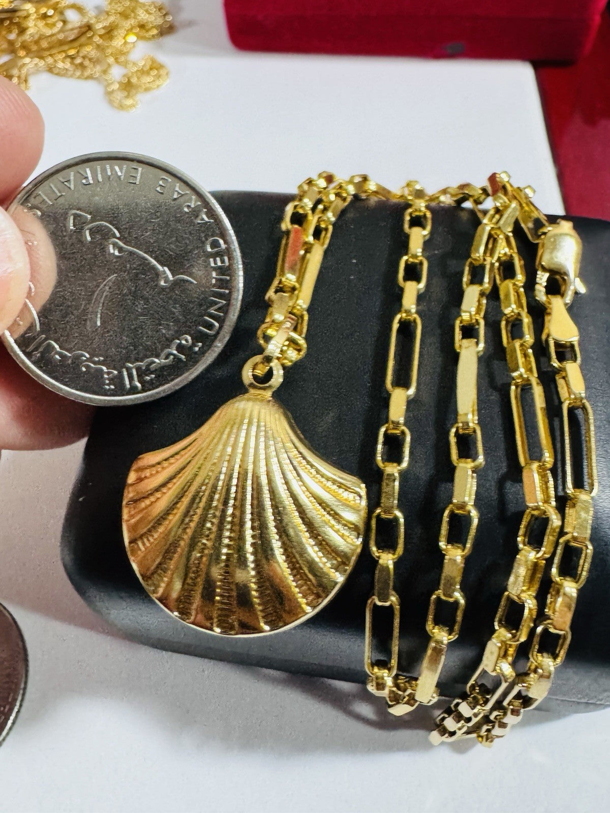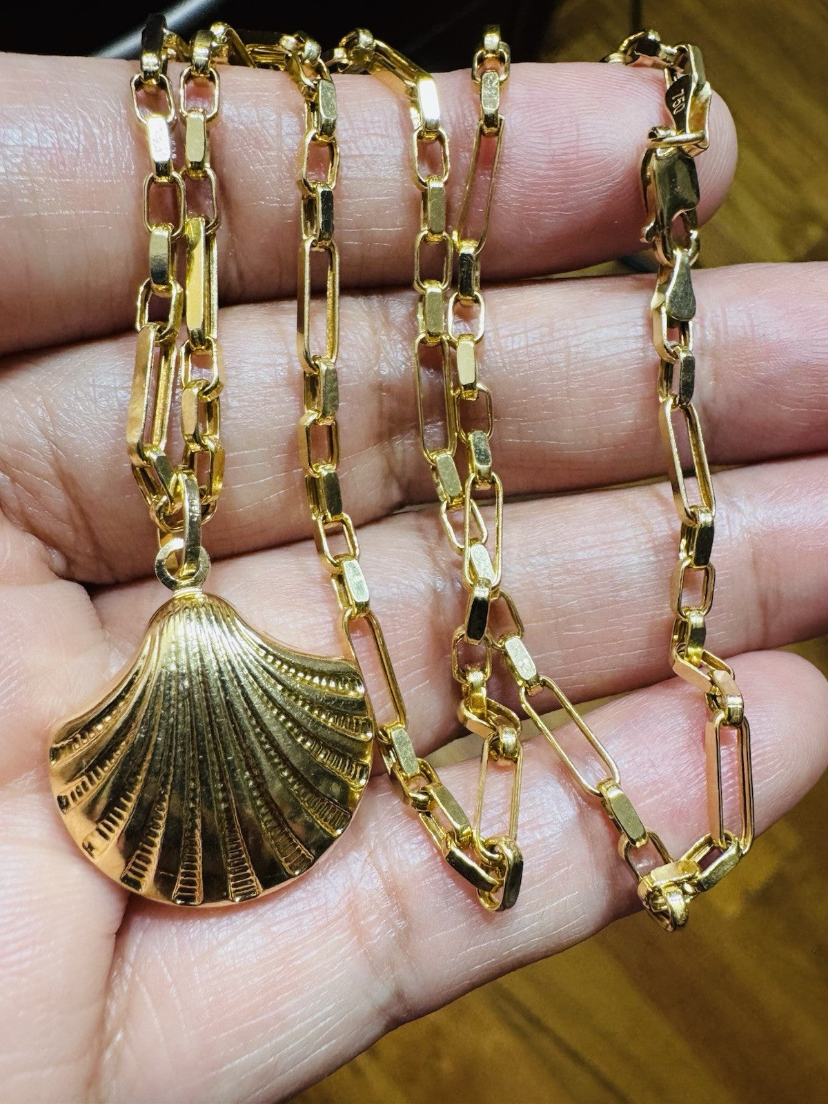 18K 750 Real Genuine Gold Seashell Set Necklace 18” Inch Long 7.7g 3.2mm