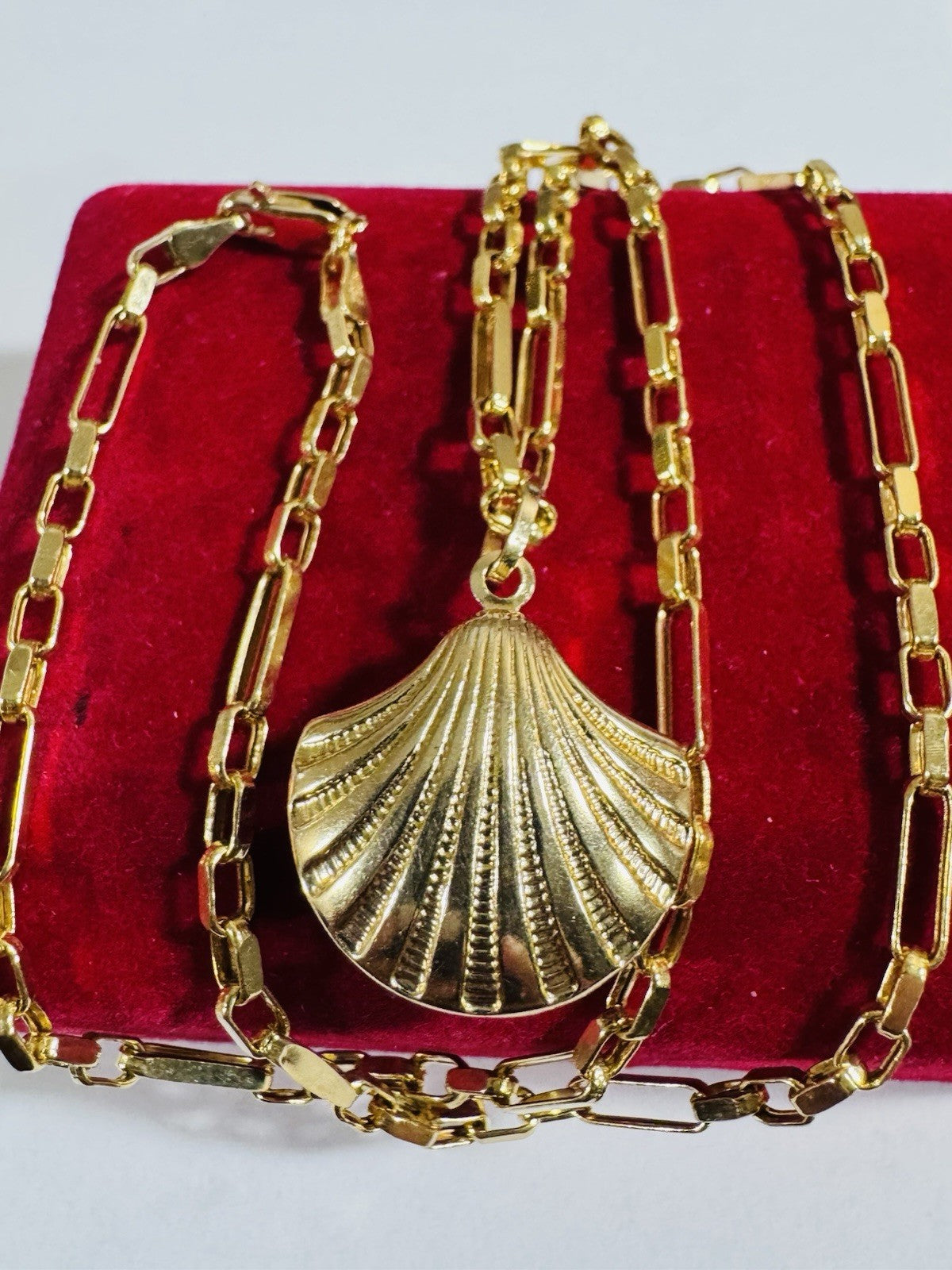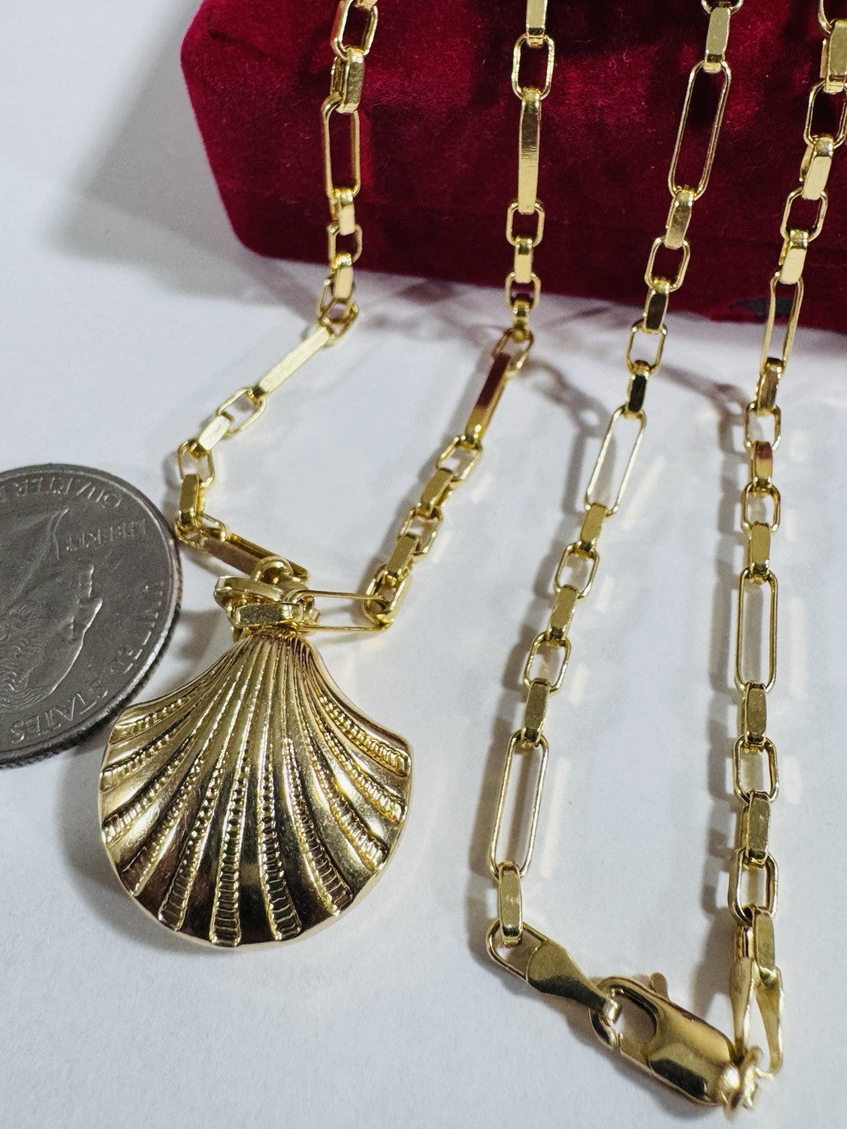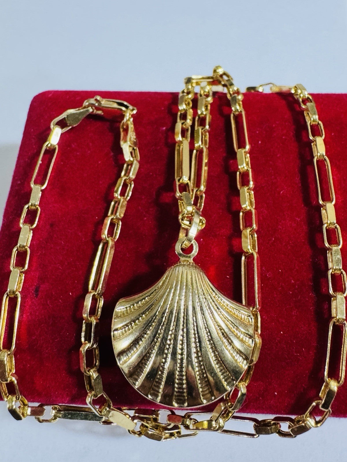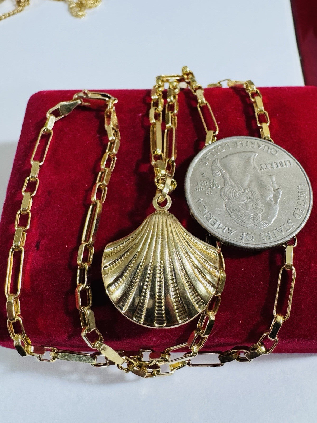 18K 750 Real Genuine Gold Seashell Set Necklace 18” Inch Long 7.7g 3.2mm