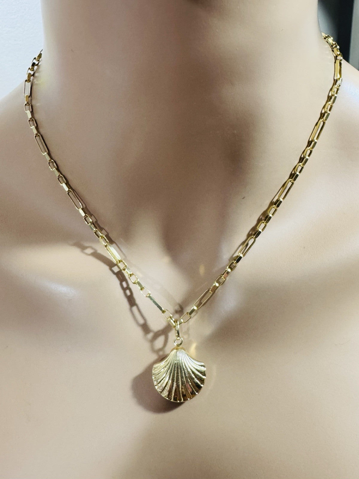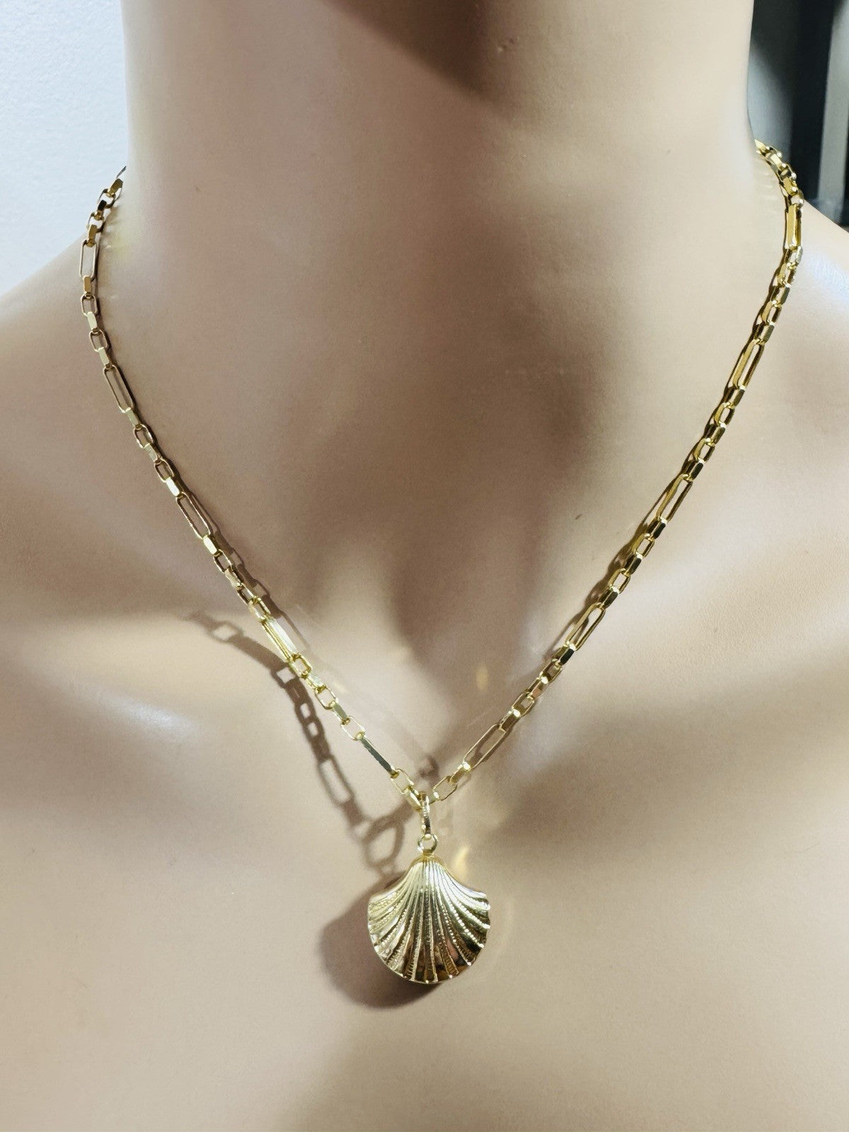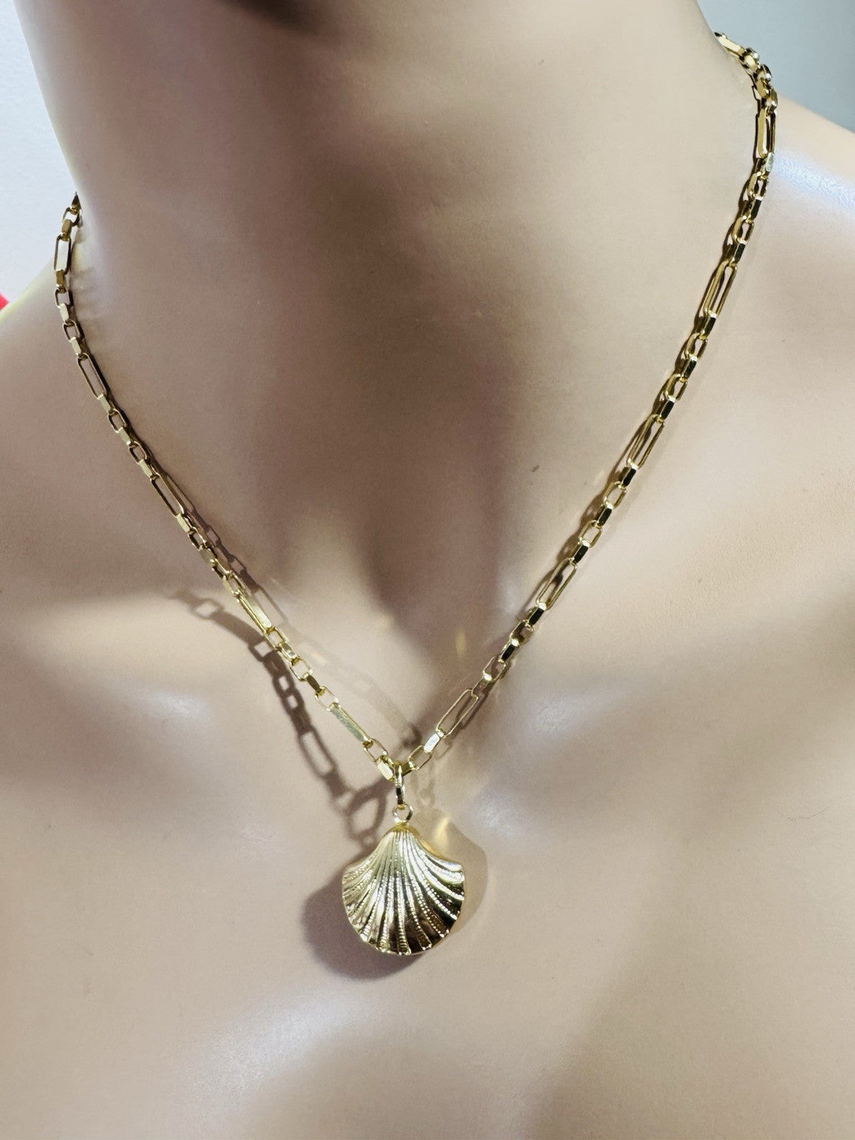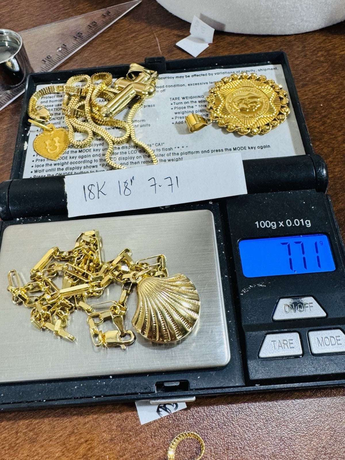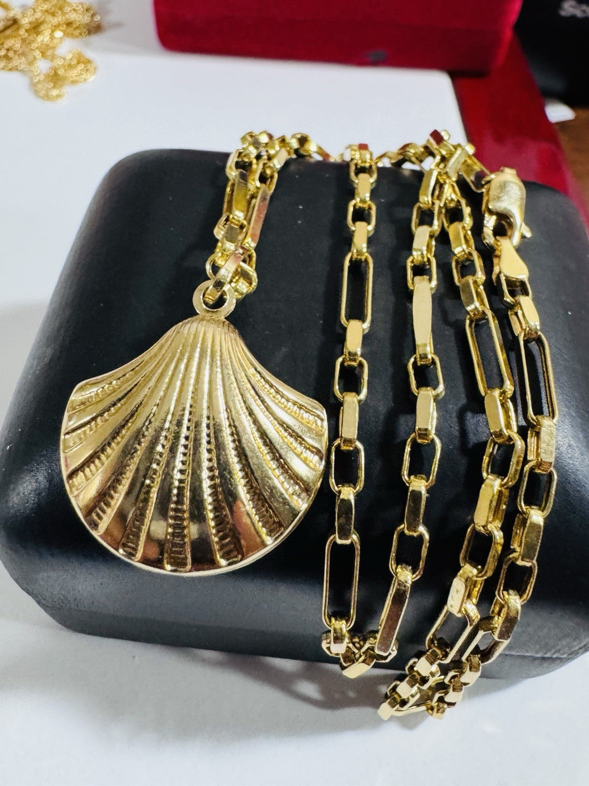 18K 750 Real Genuine Gold Seashell Set Necklace 18” Inch Long 7.7g 3.2mm
