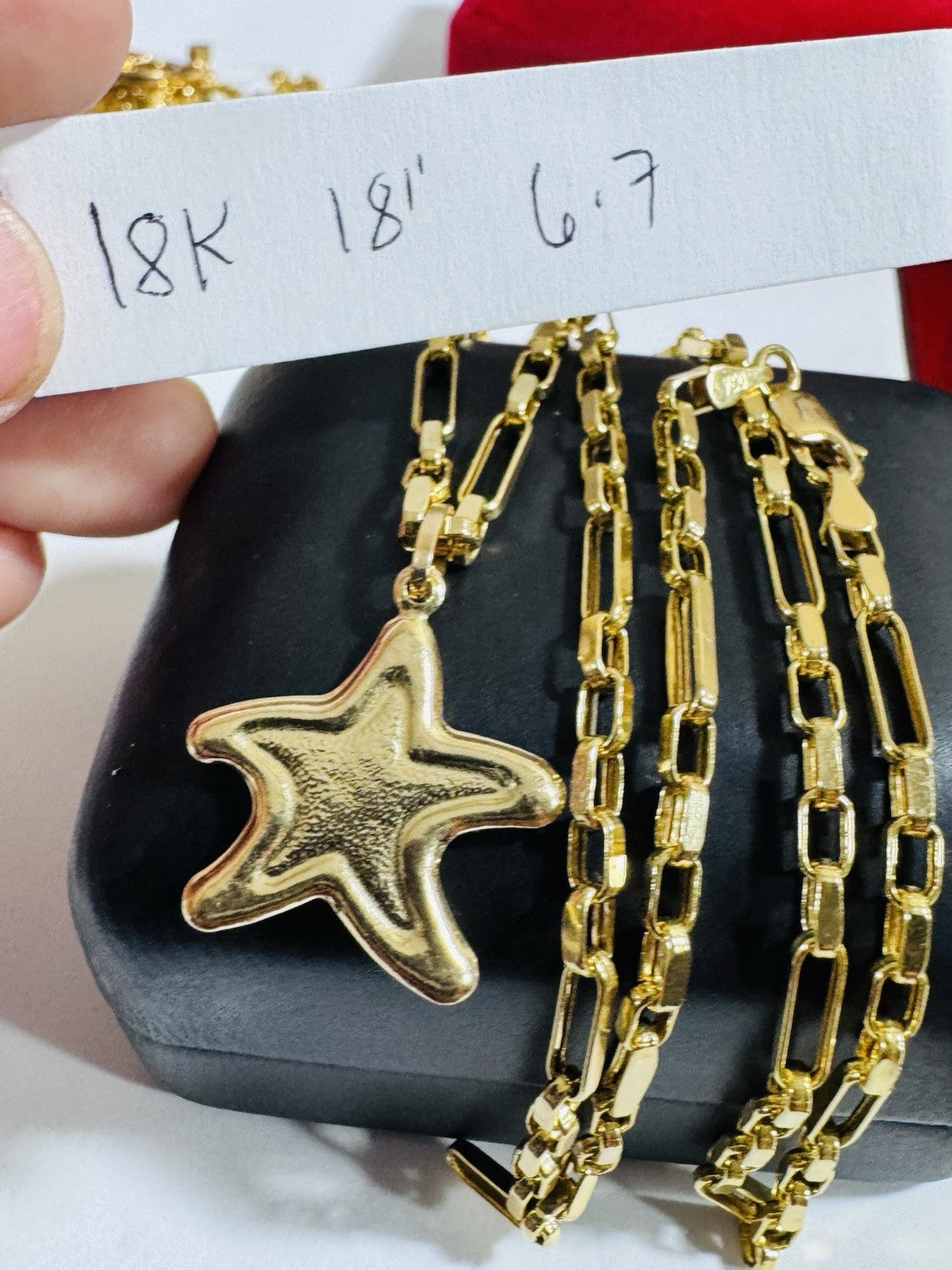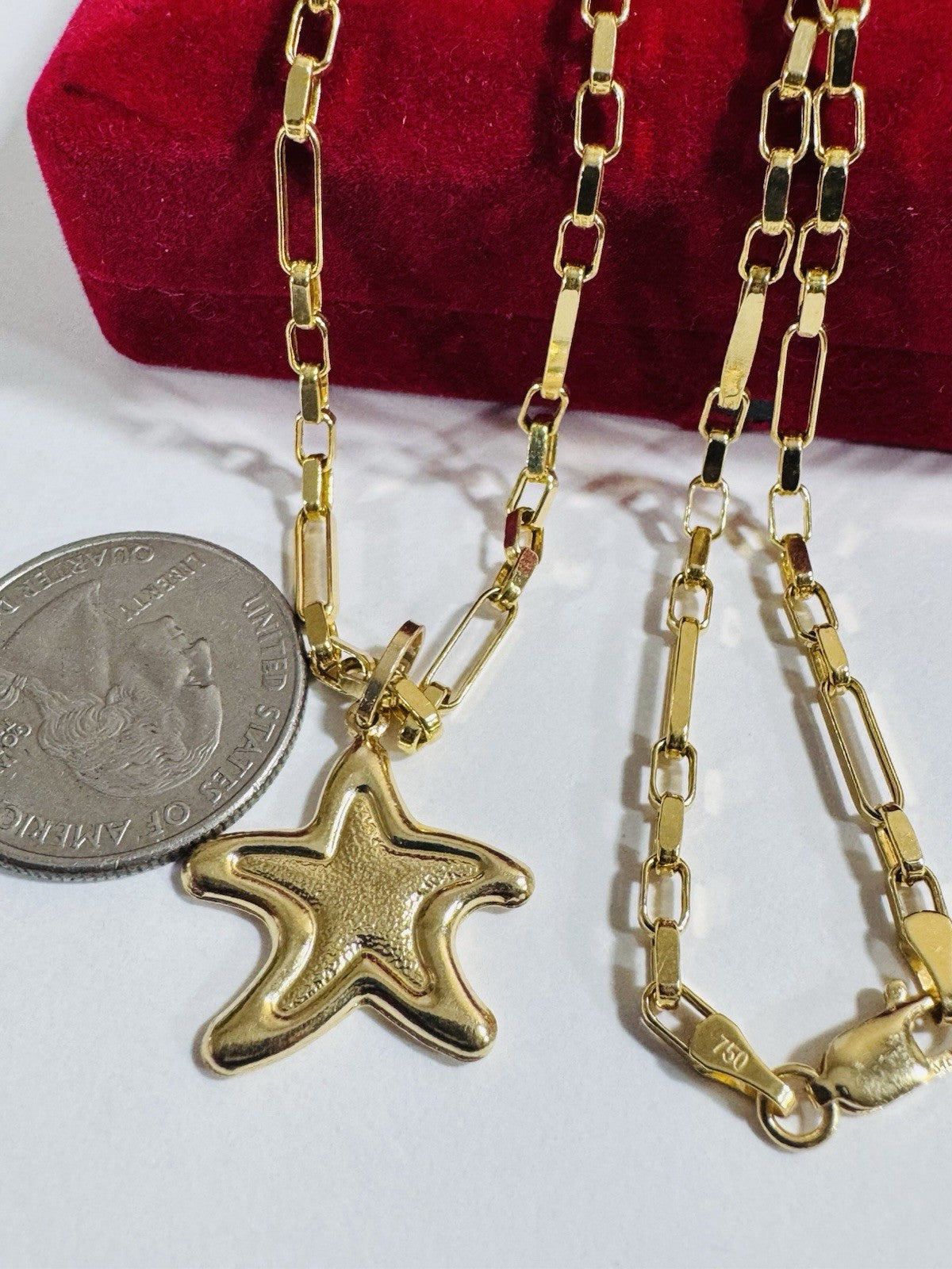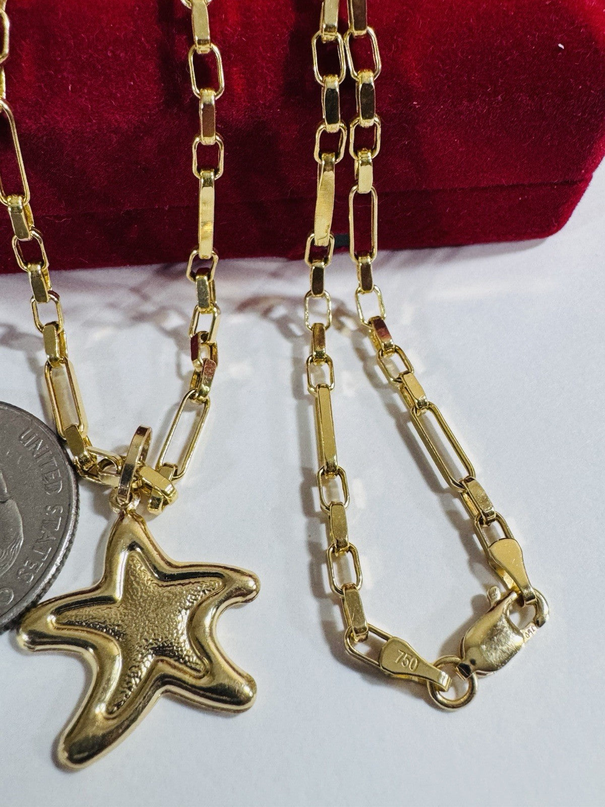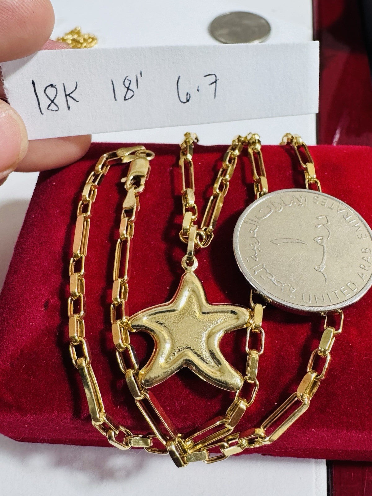 18K 750 Real Genuine Gold Star Set Necklace 18” Inch Long 6.7g 3.2mm