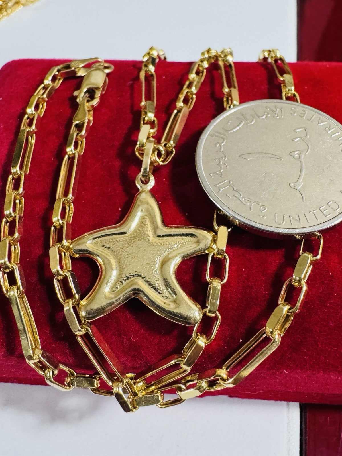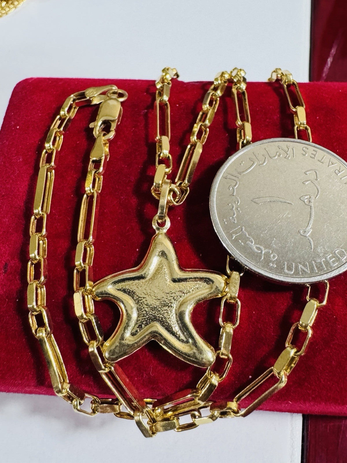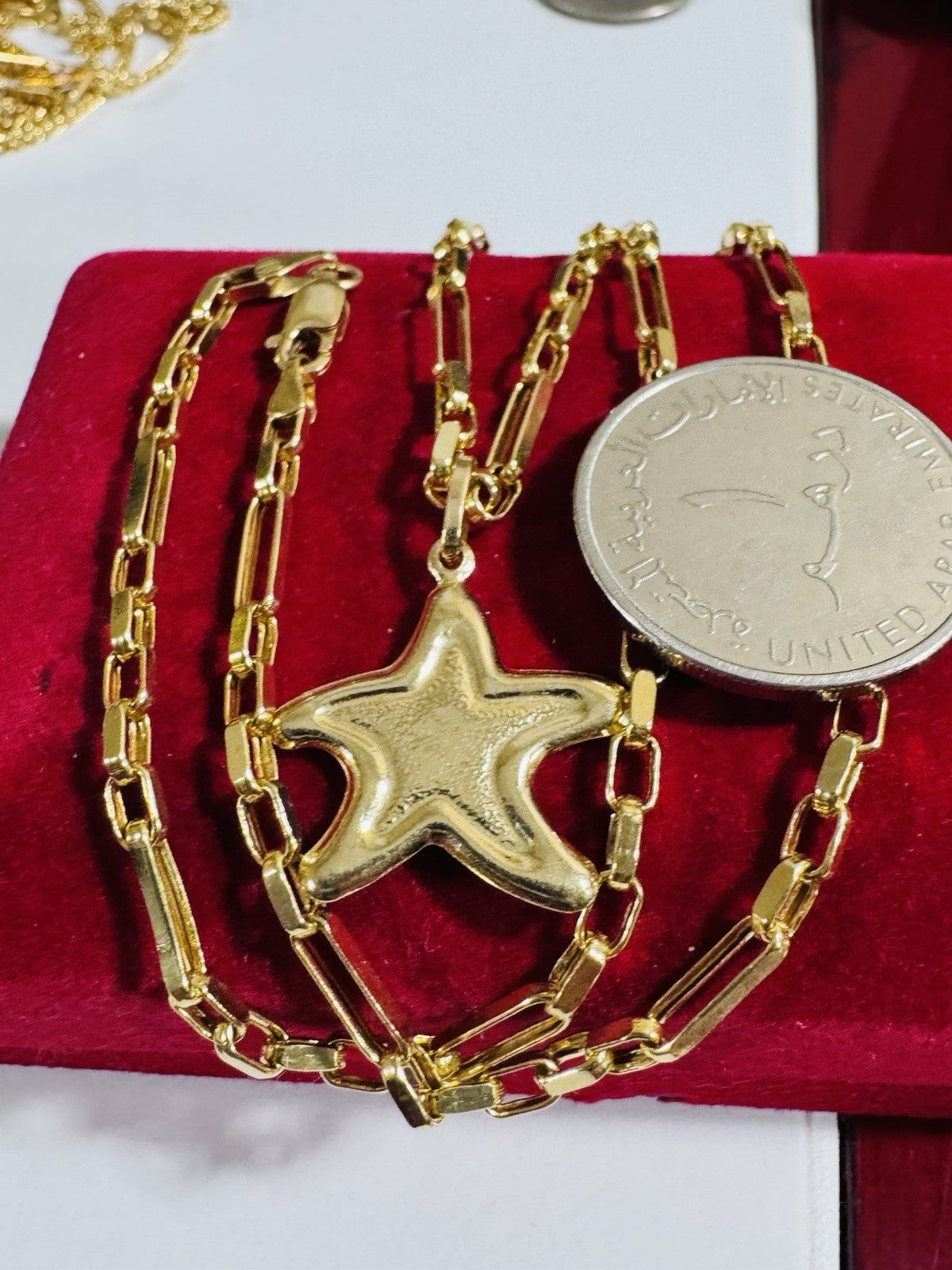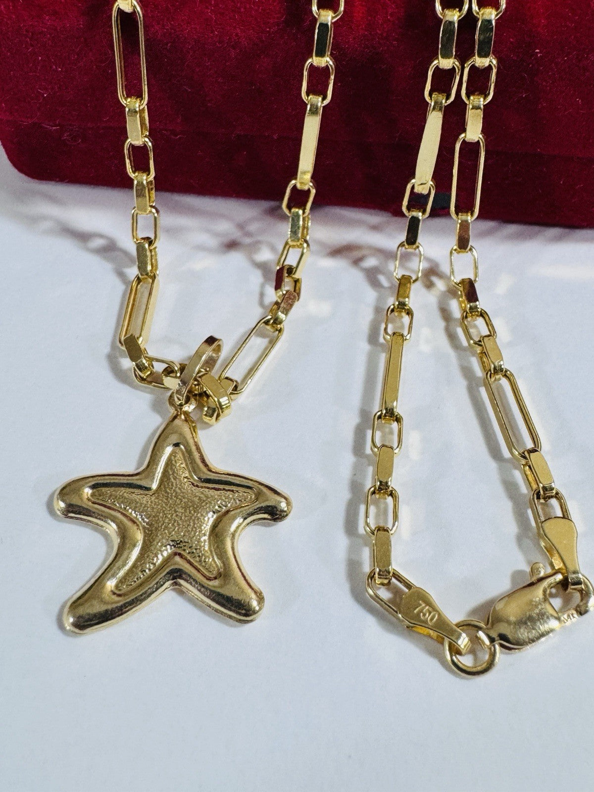 18K 750 Real Genuine Gold Star Set Necklace 18” Inch Long 6.7g 3.2mm