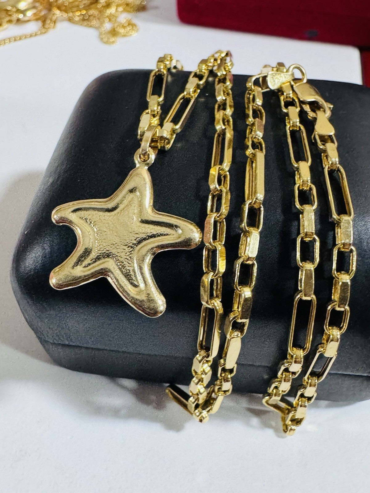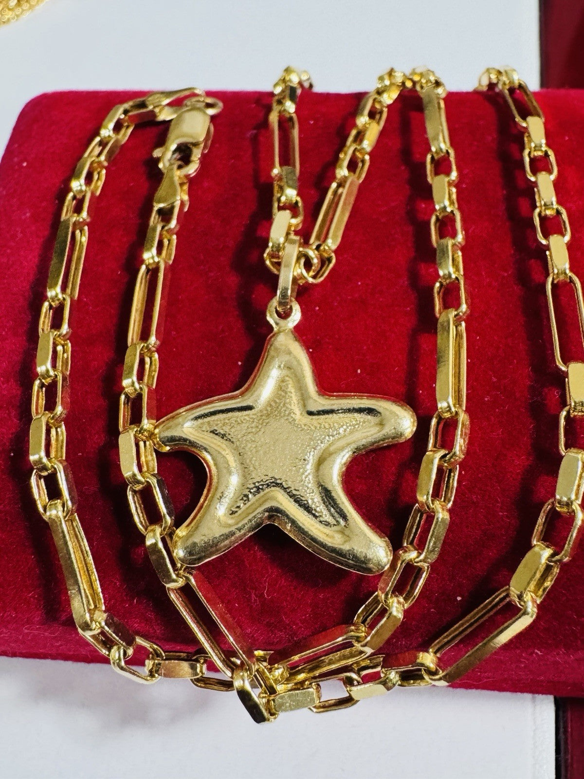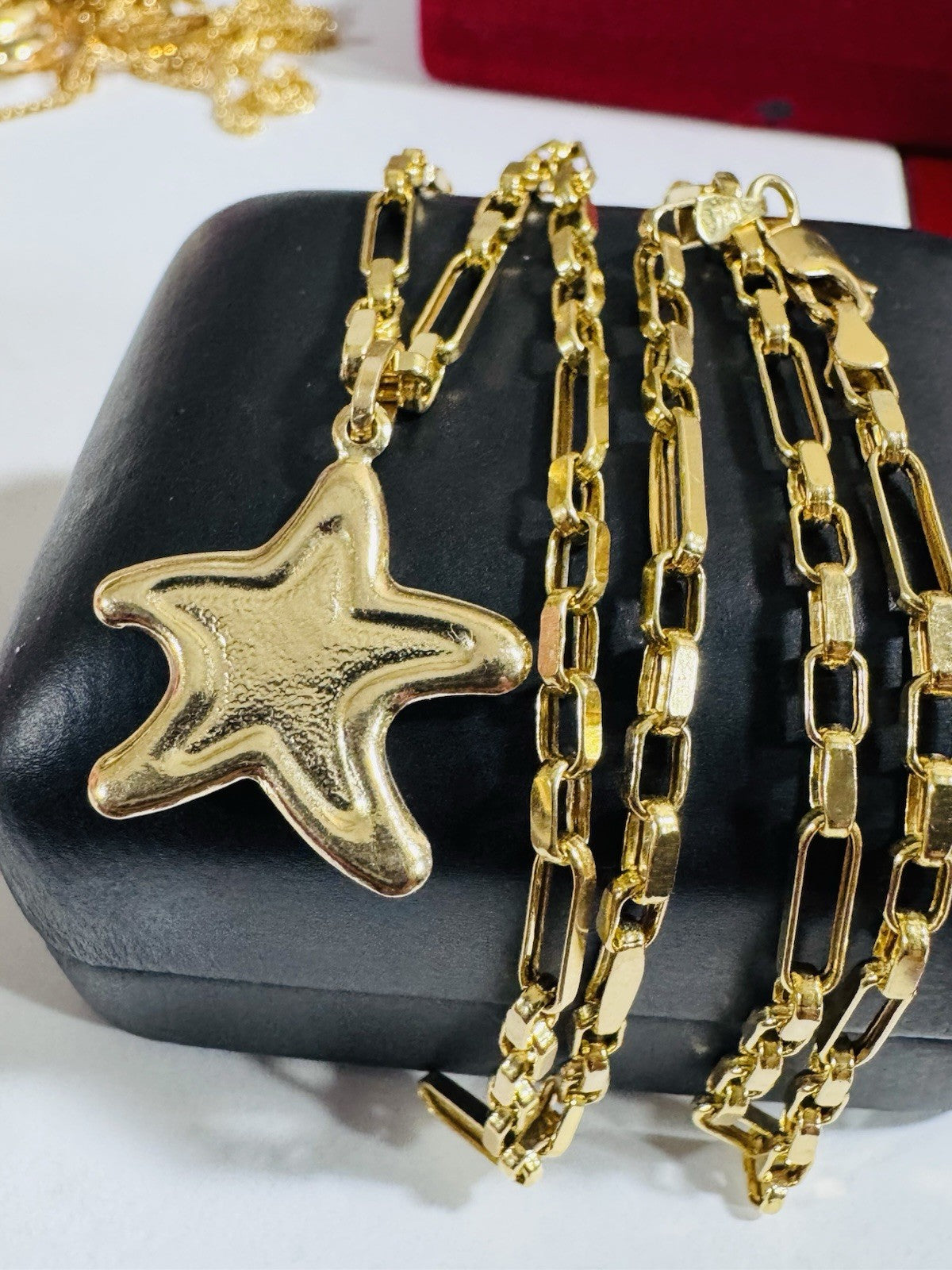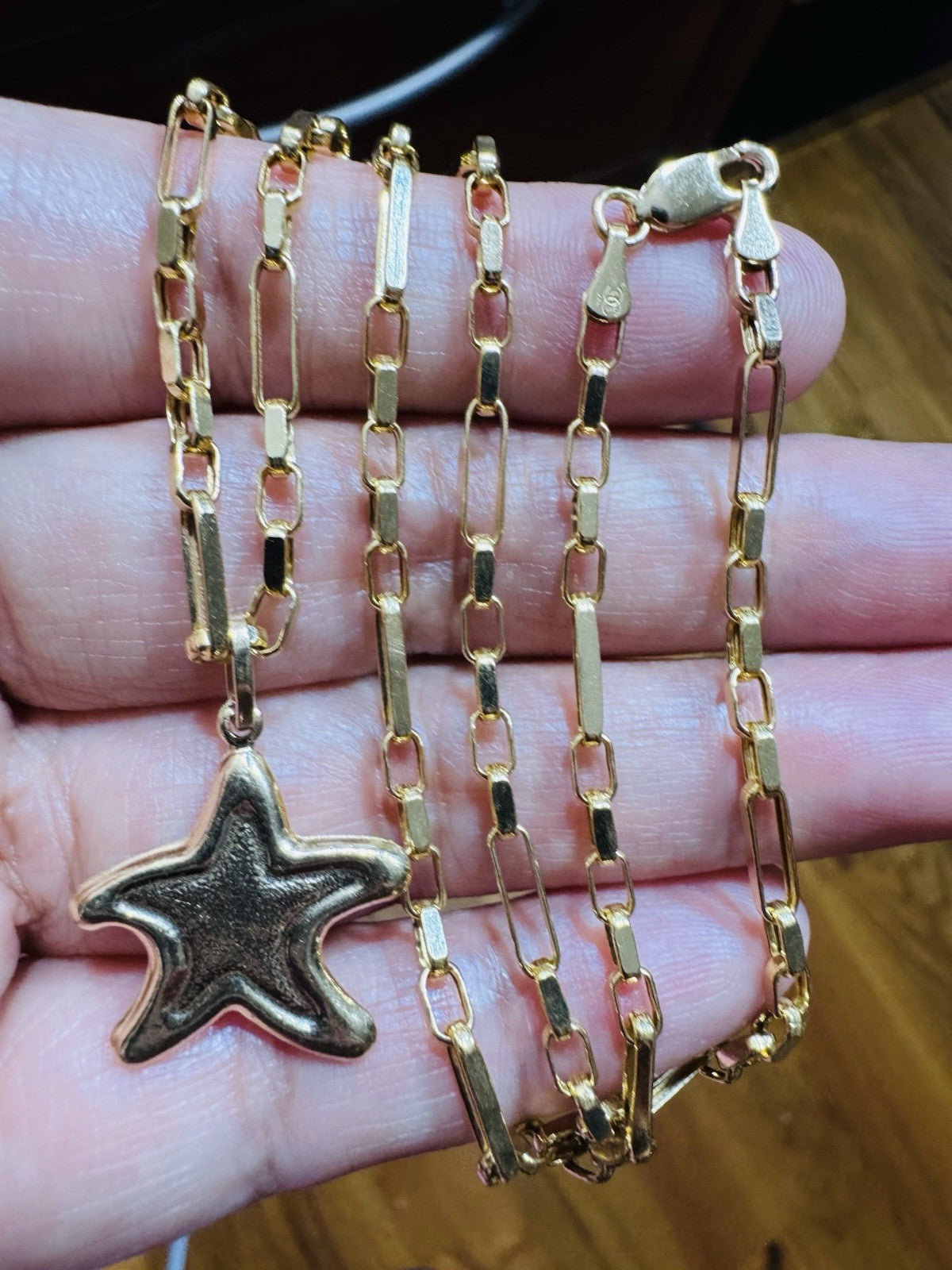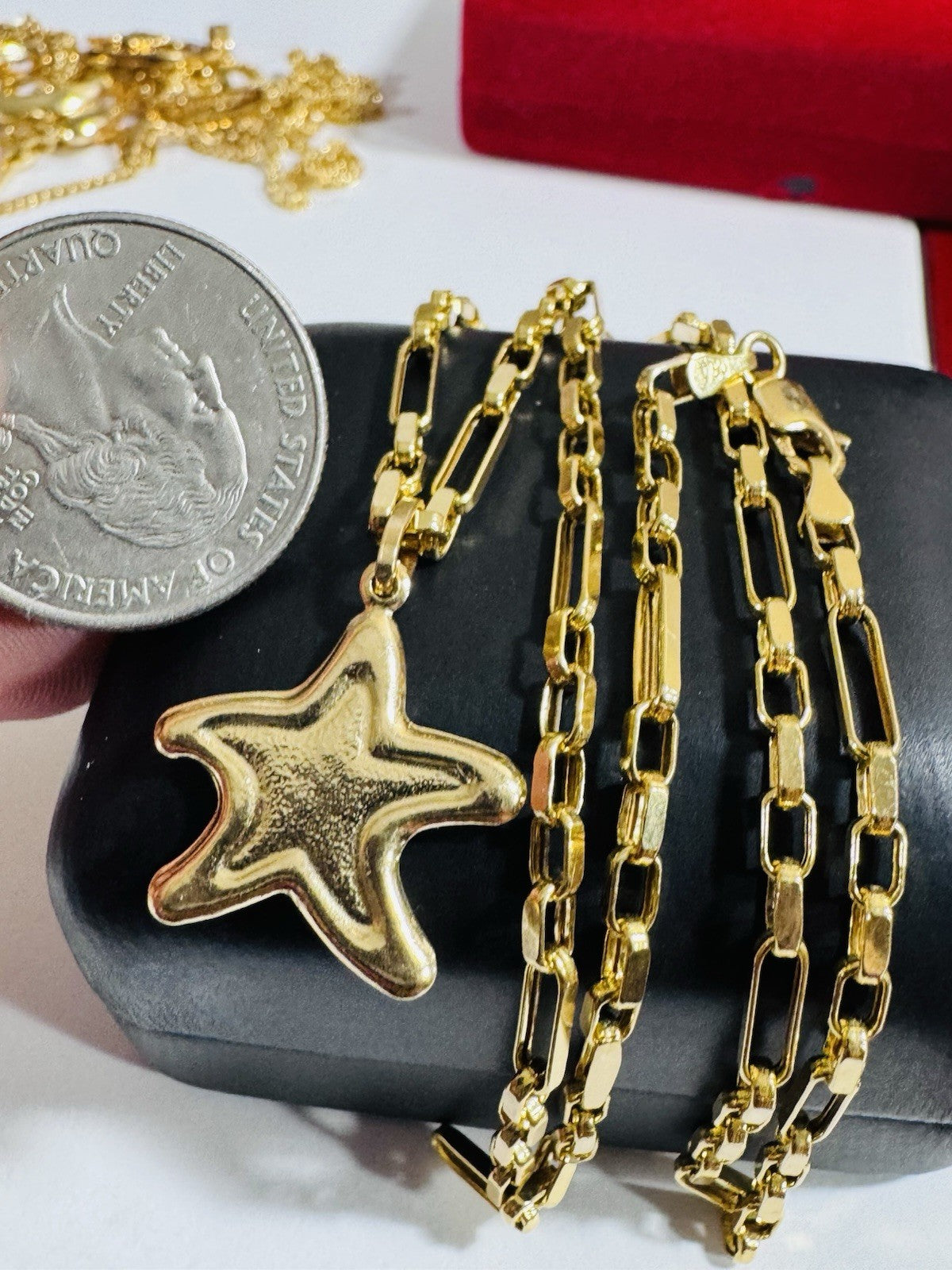 18K 750 Real Genuine Gold Star Set Necklace 18” Inch Long 6.7g 3.2mm