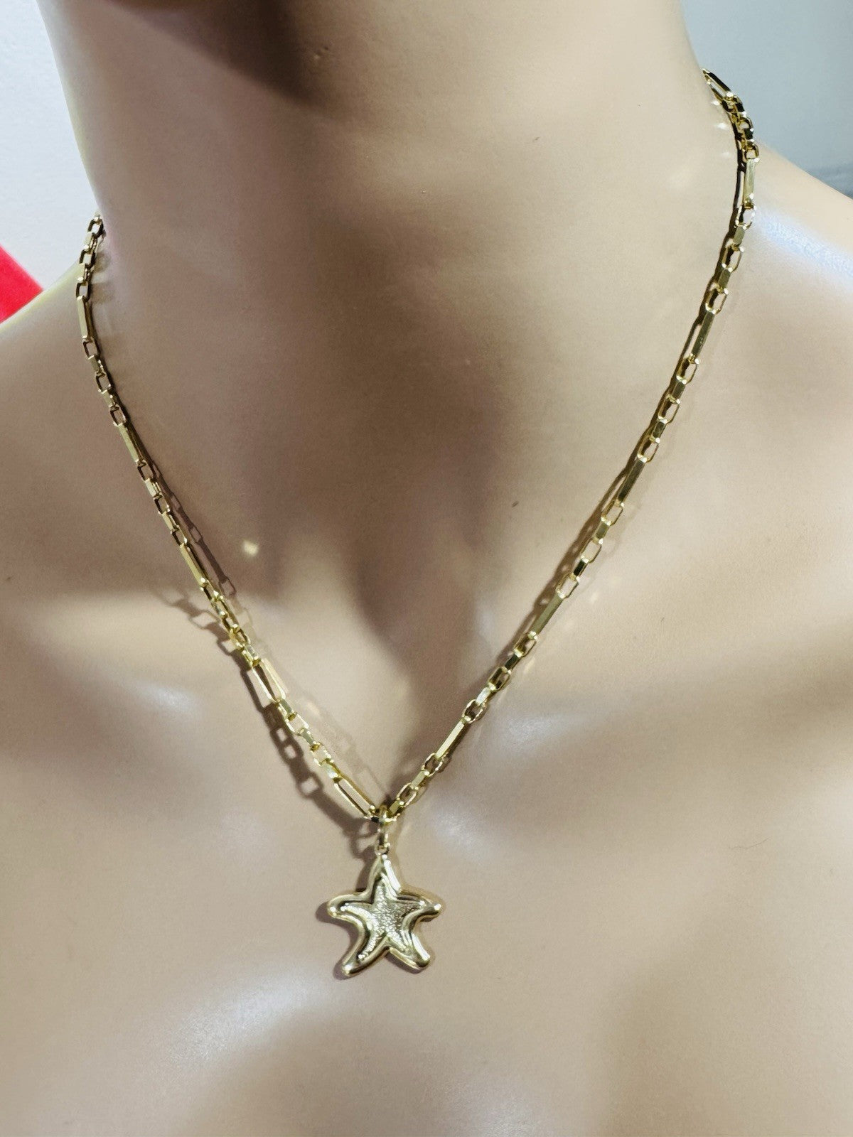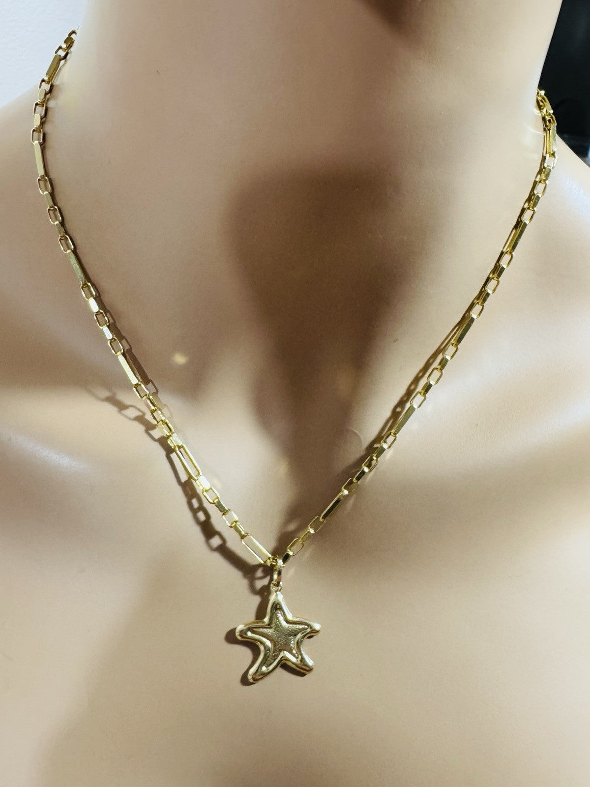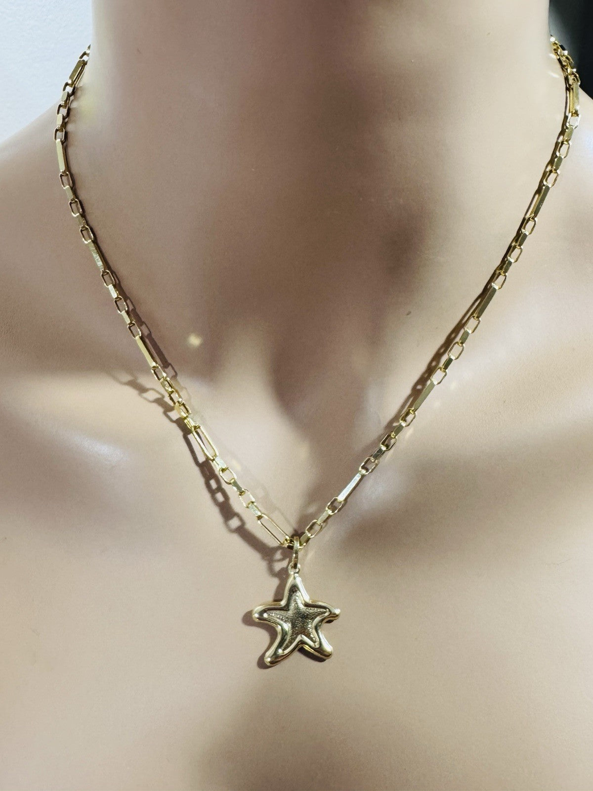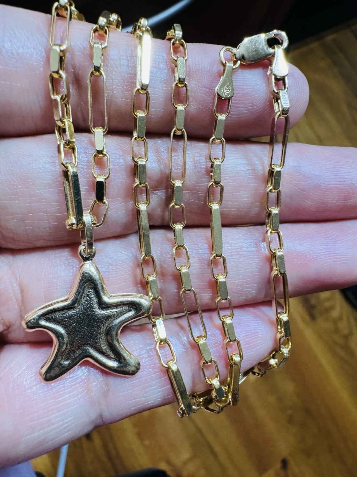 18K 750 Real Genuine Gold Star Set Necklace 18” Inch Long 6.7g 3.2mm