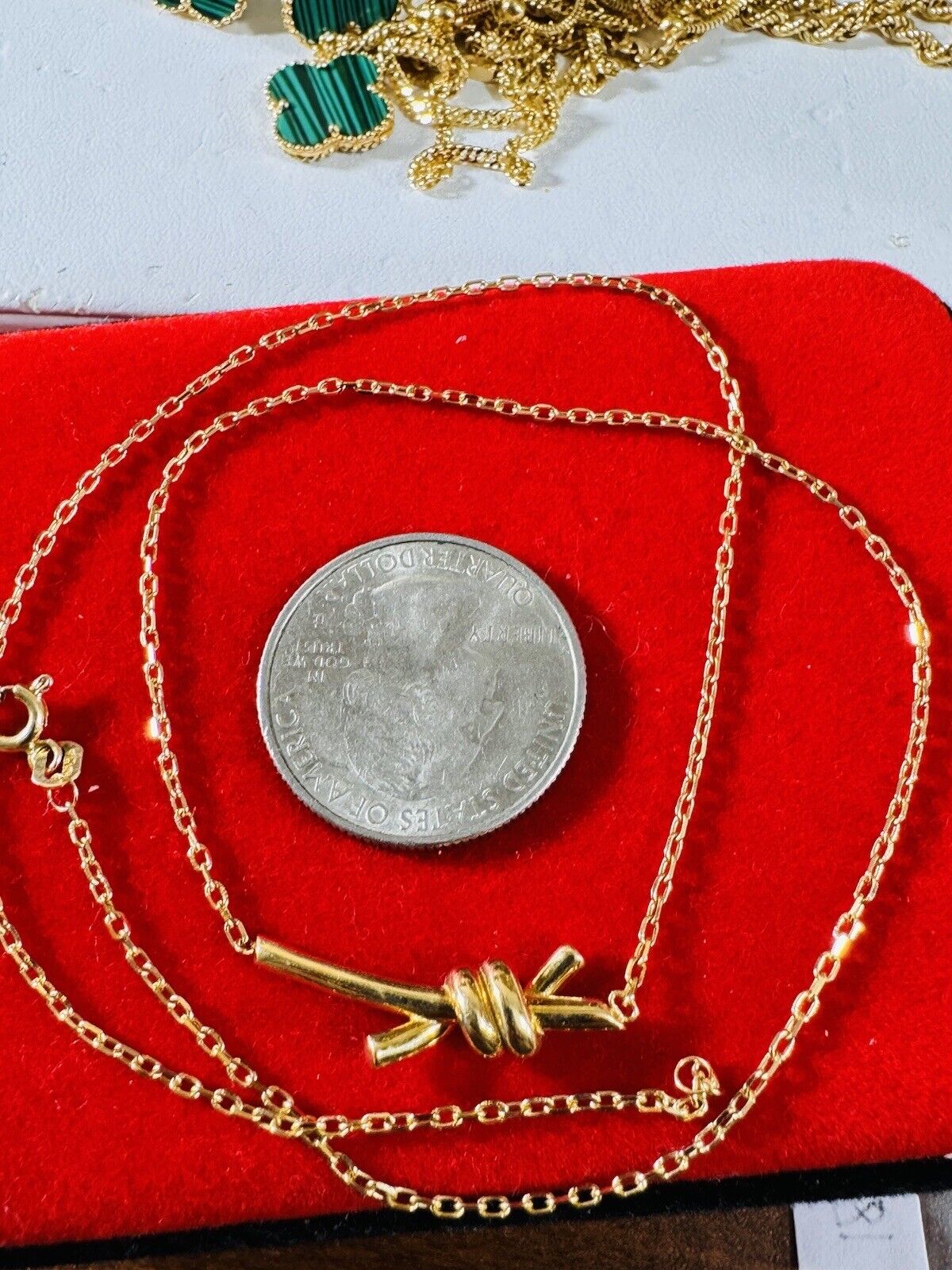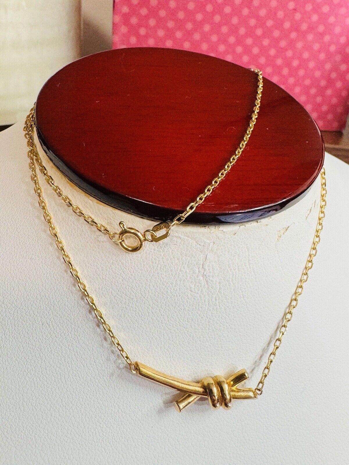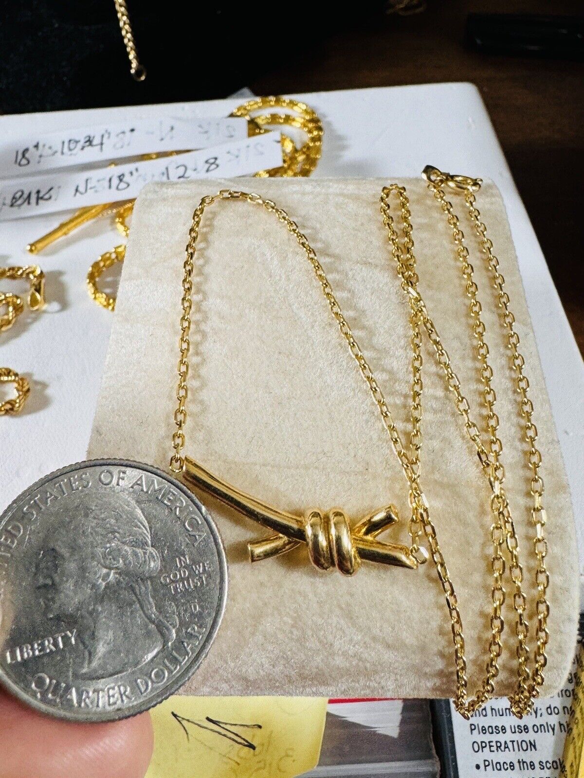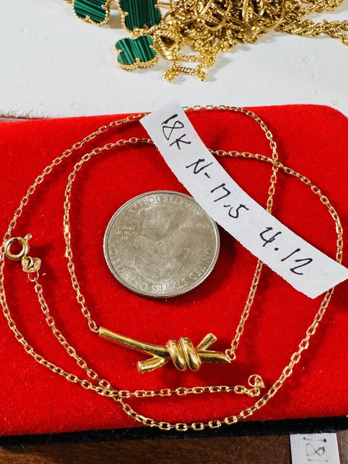 18K 750 Saudi Real Gold 17.5” Long Knot Ribbon Necklace 1.5mm 4.1g