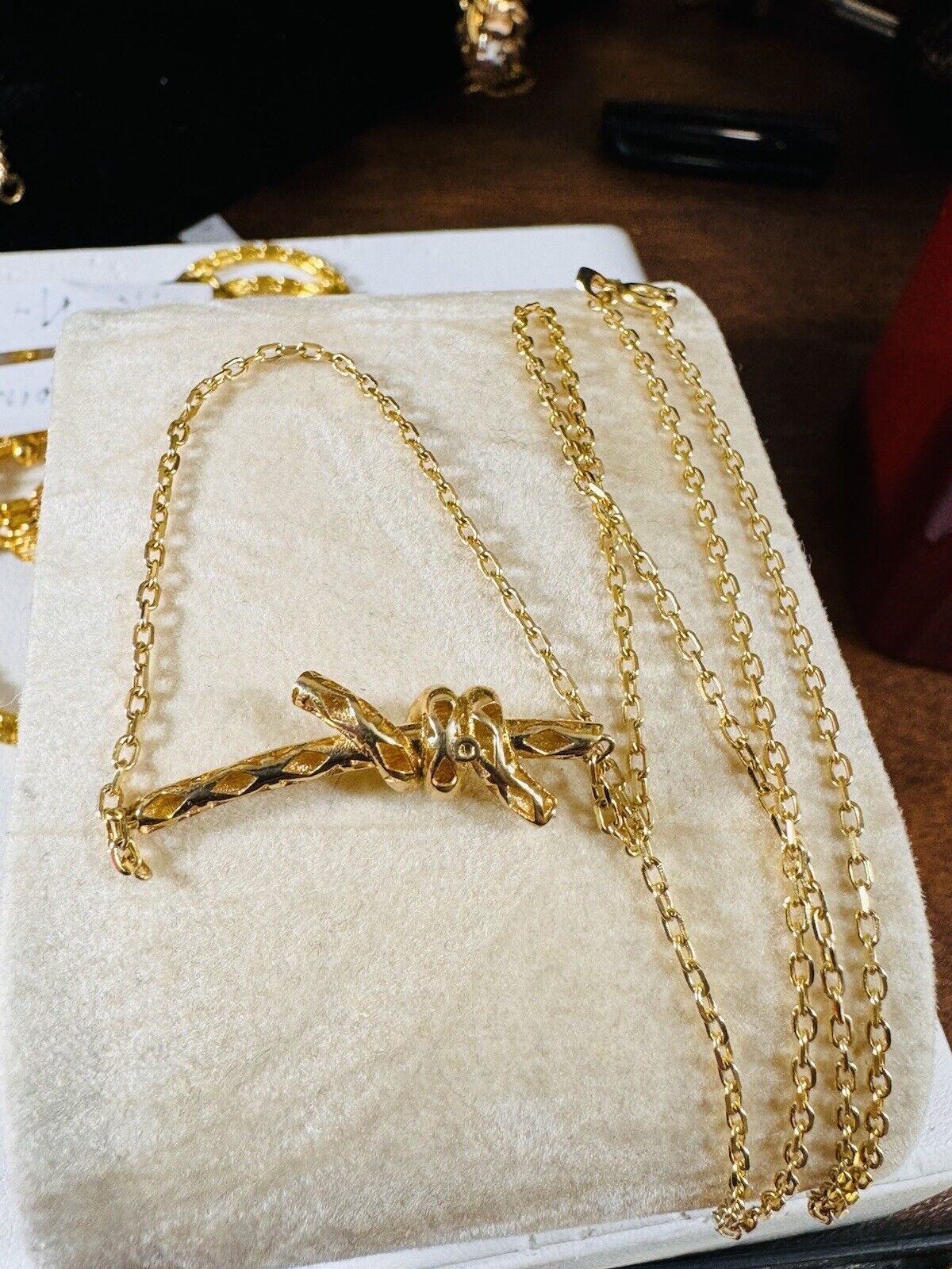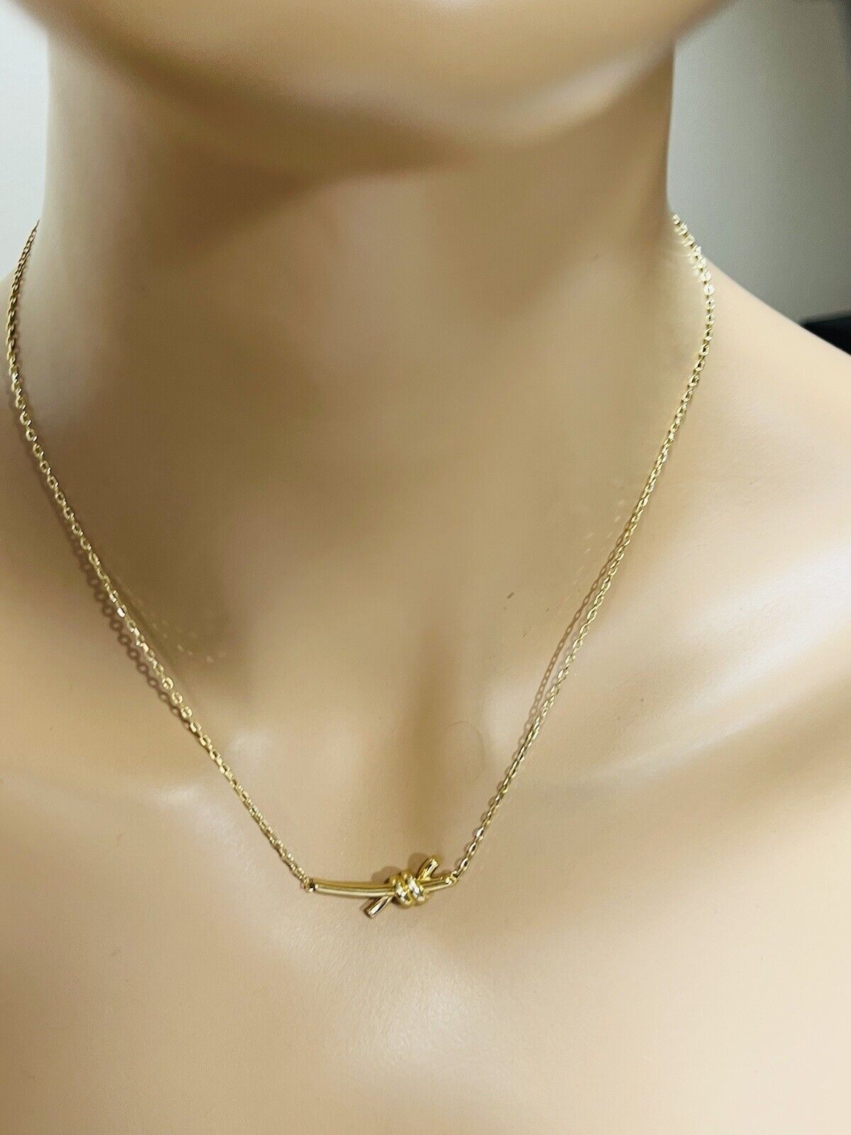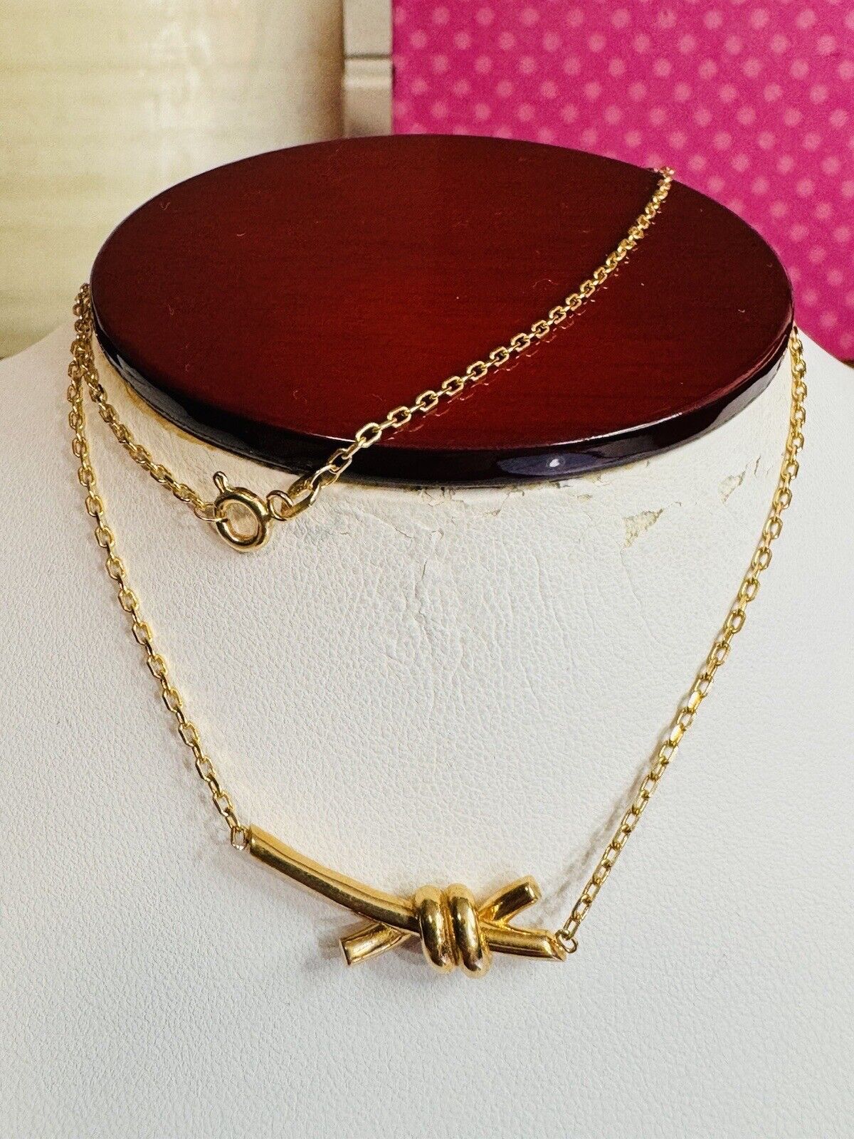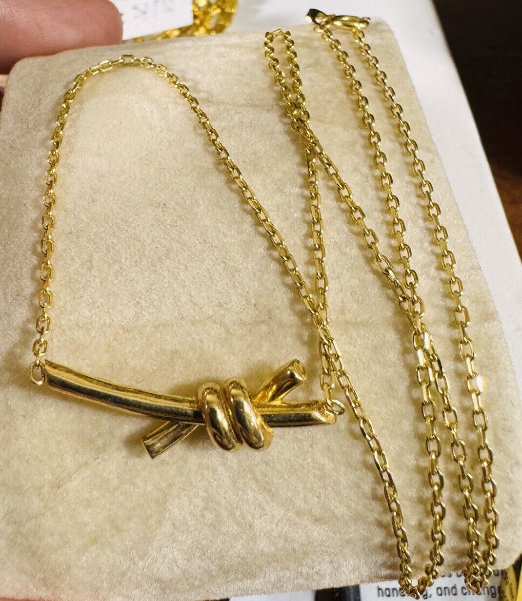 18K 750 Saudi Real Gold 17.5” Long Knot Ribbon Necklace 1.5mm 4.1g