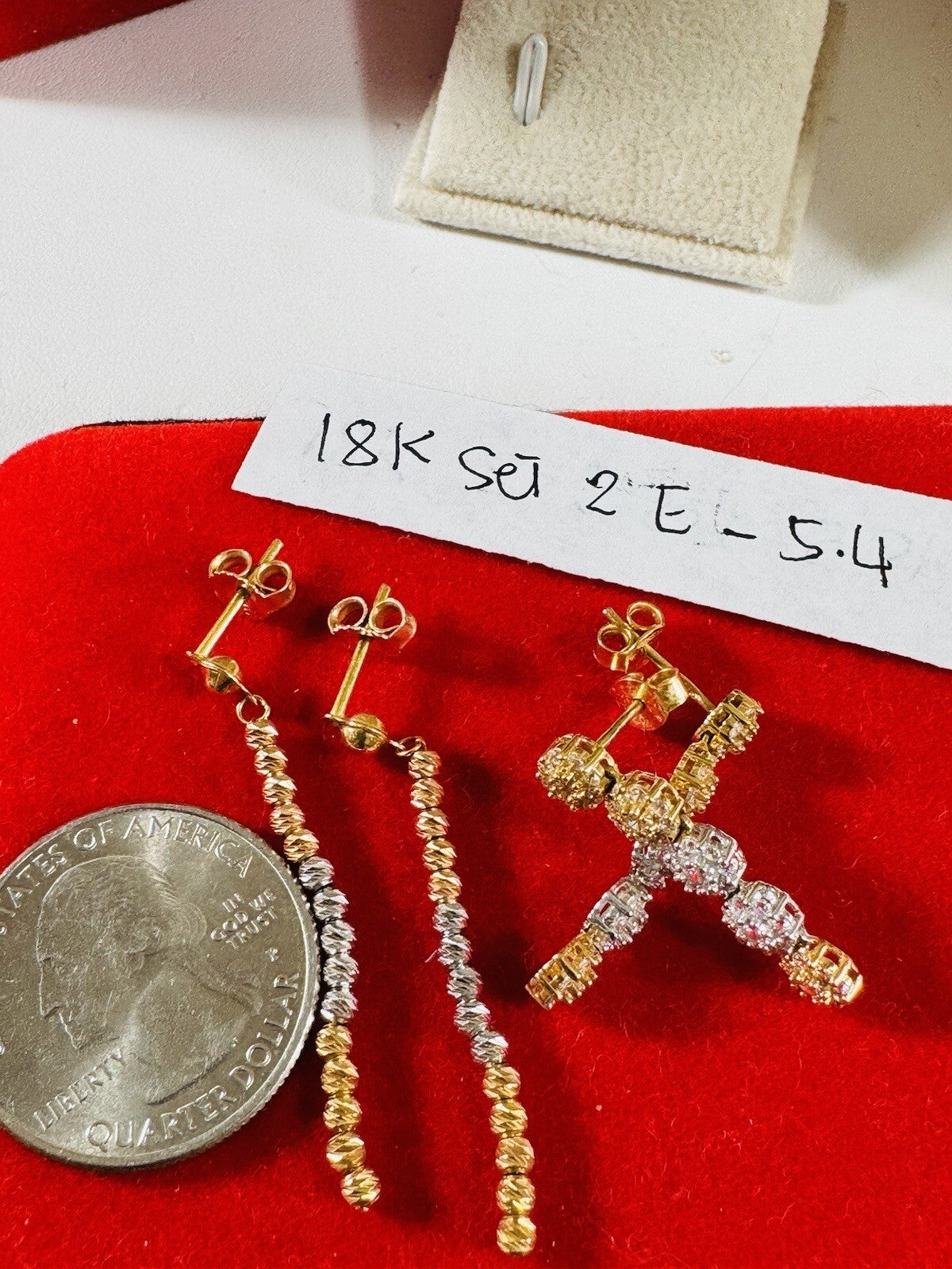 18K Earring 750 Fine Gold 2 Set Dangle Women’s Earring 5.4g Tri color