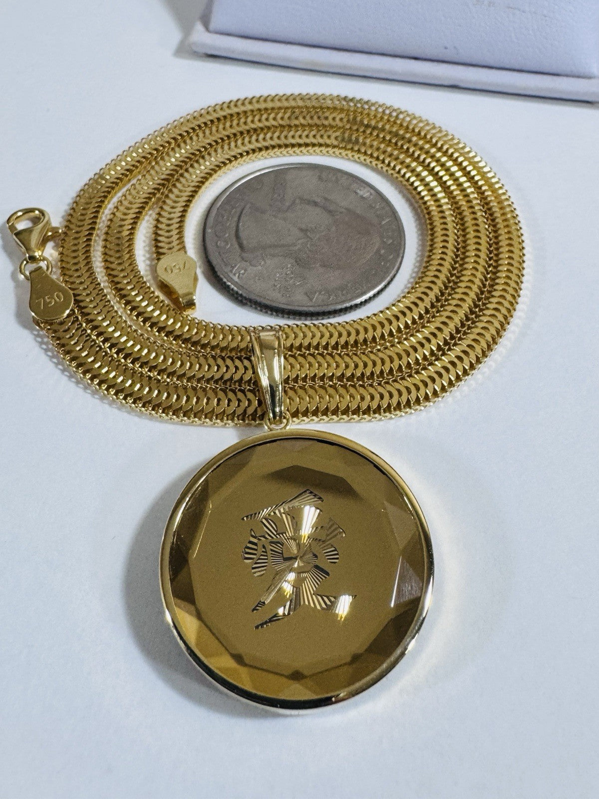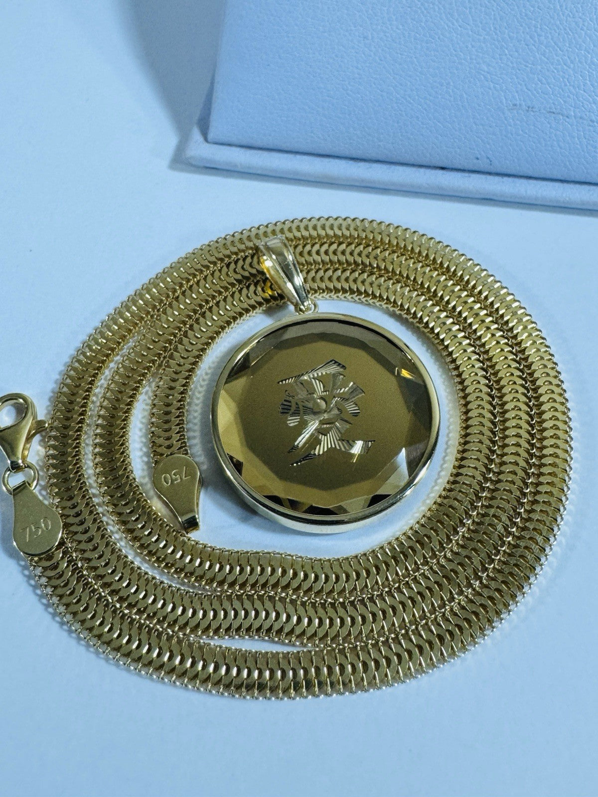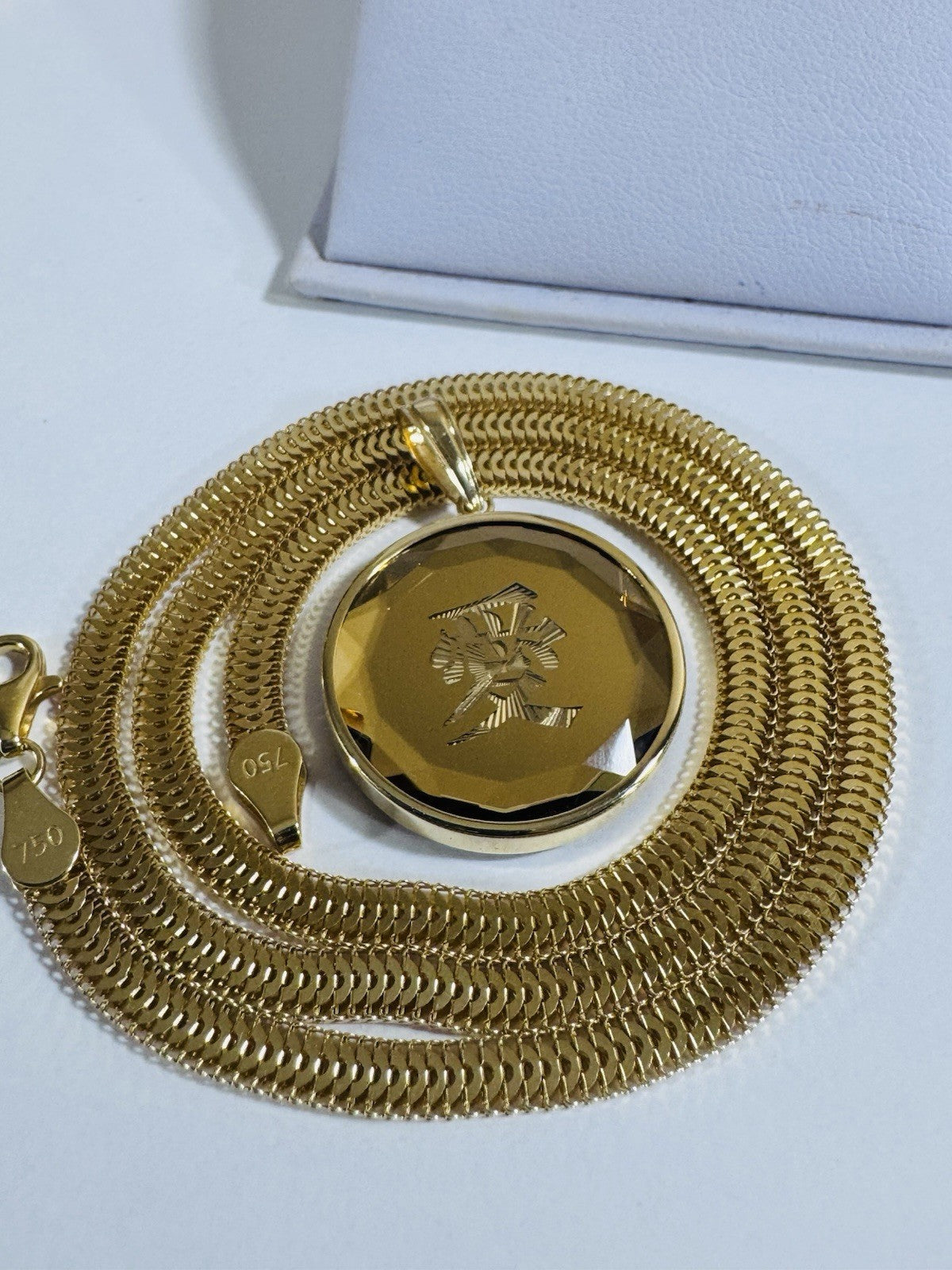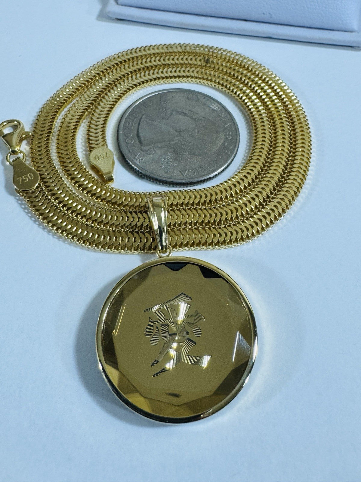 This beautiful Set Necklace is expertly crafted in K18 18K 750 with Yellow Gold Love Pendant features a stunning 18” inch chain with a secured clasp with 3.2mm wide. 18 grams Reversible pendant.