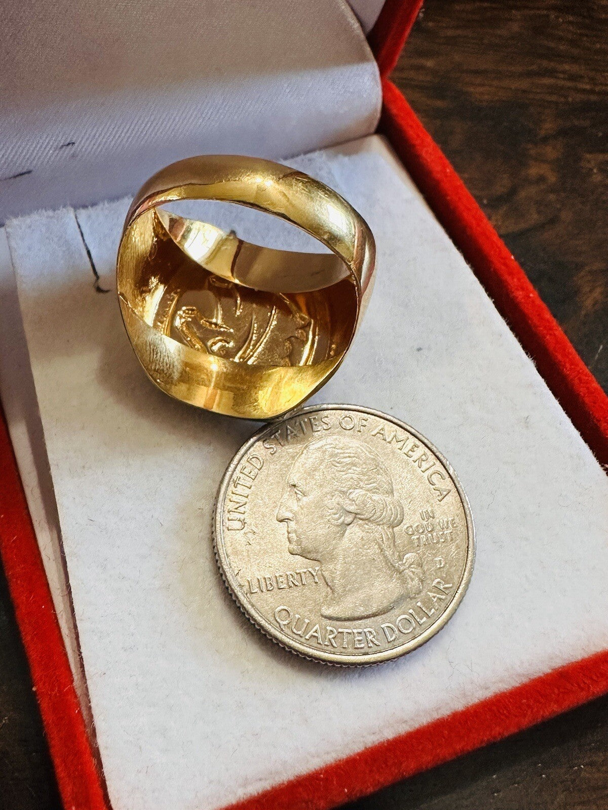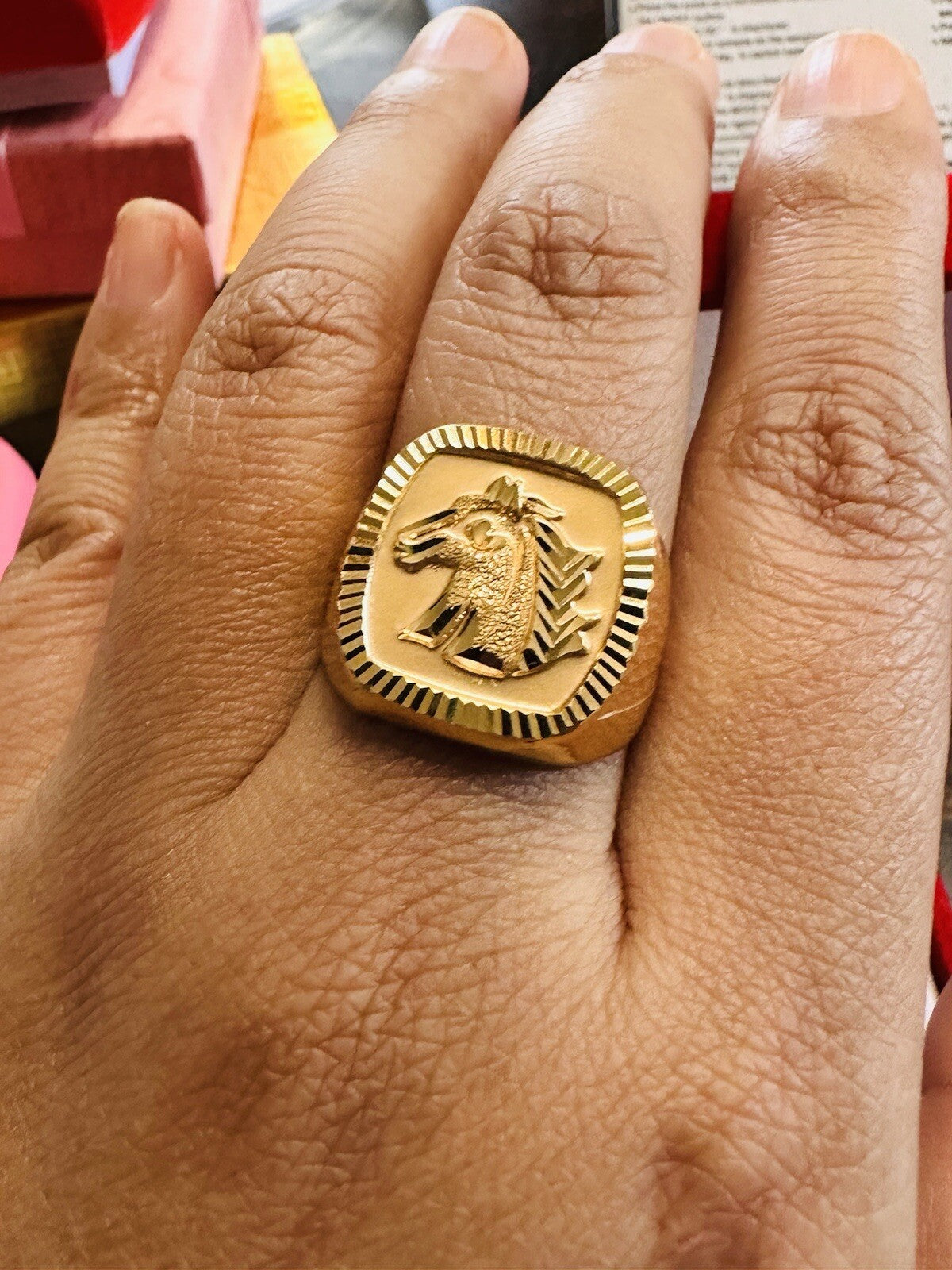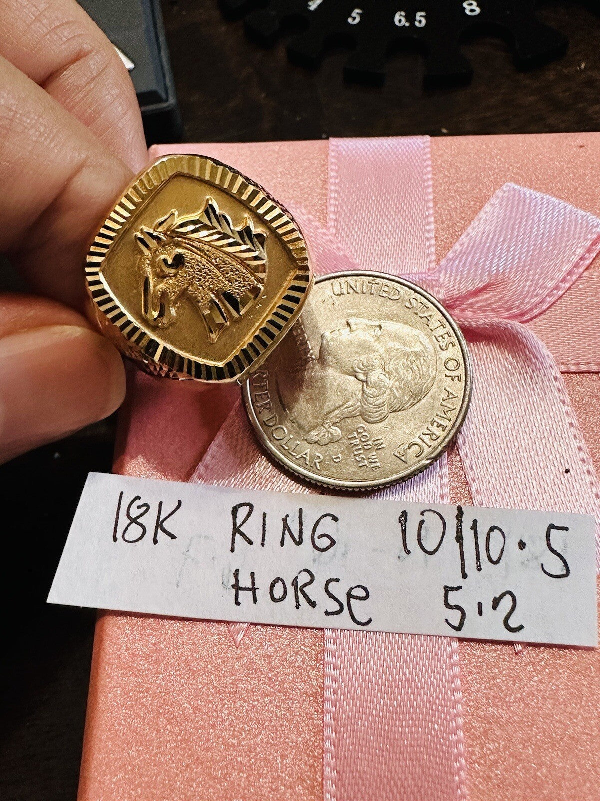 New 18K 750 Real Gold Horse Unicorn Ring Fits Size 10-10.5” 5.2g Mens