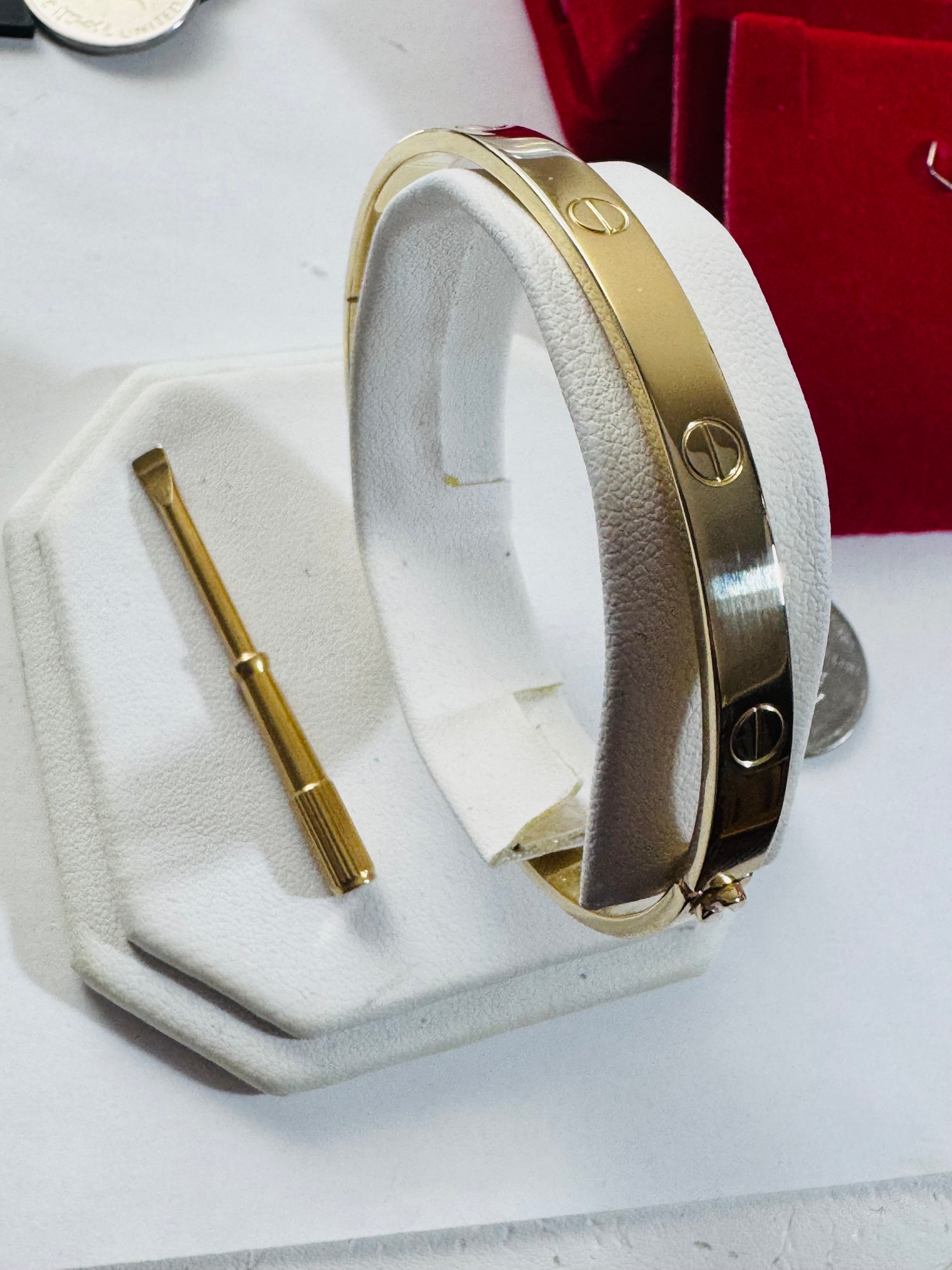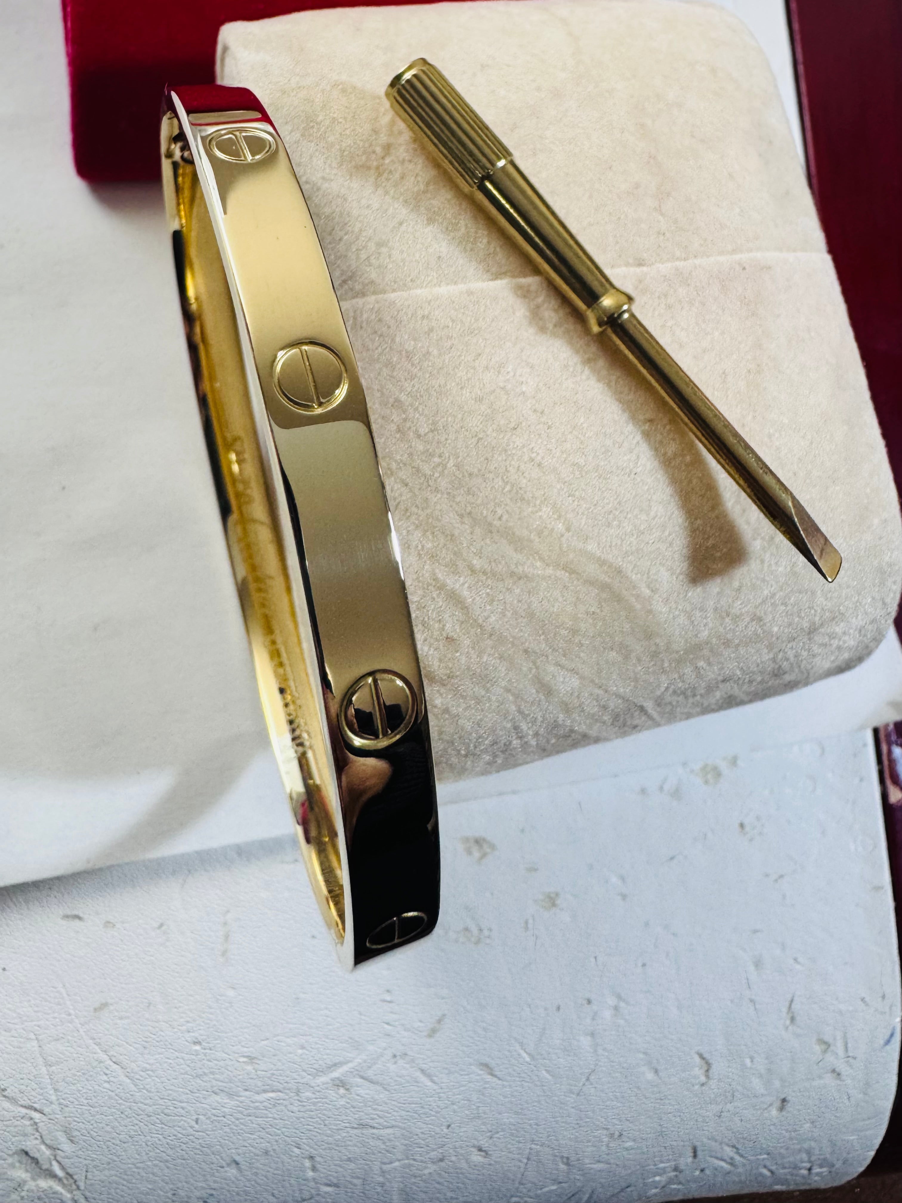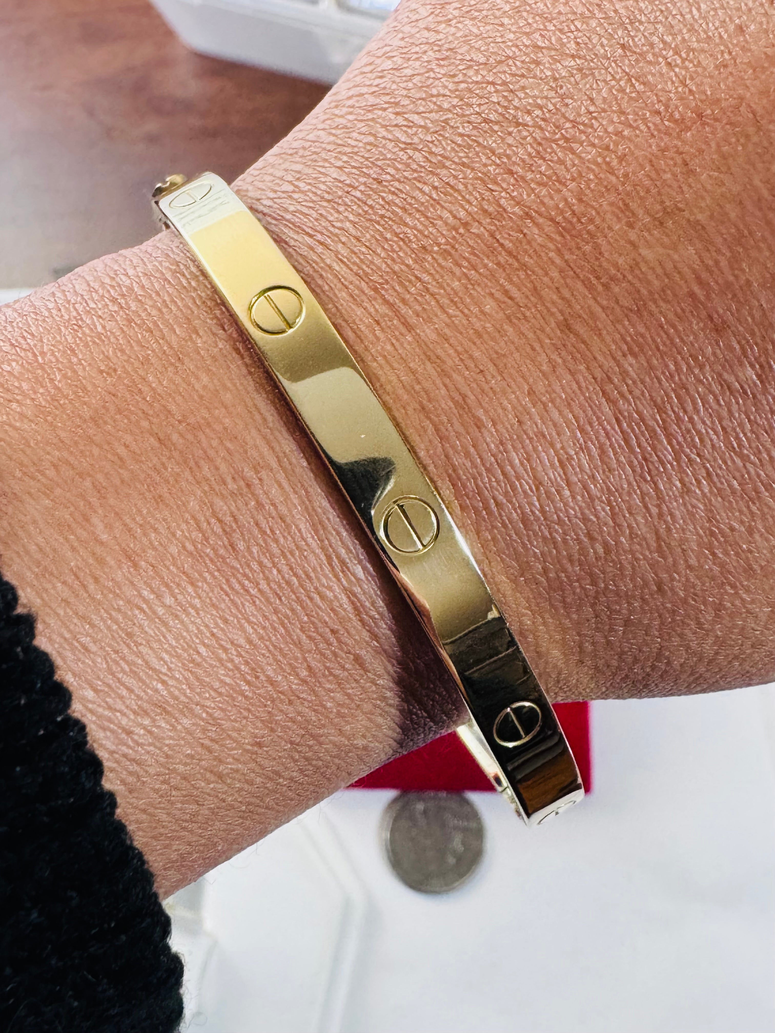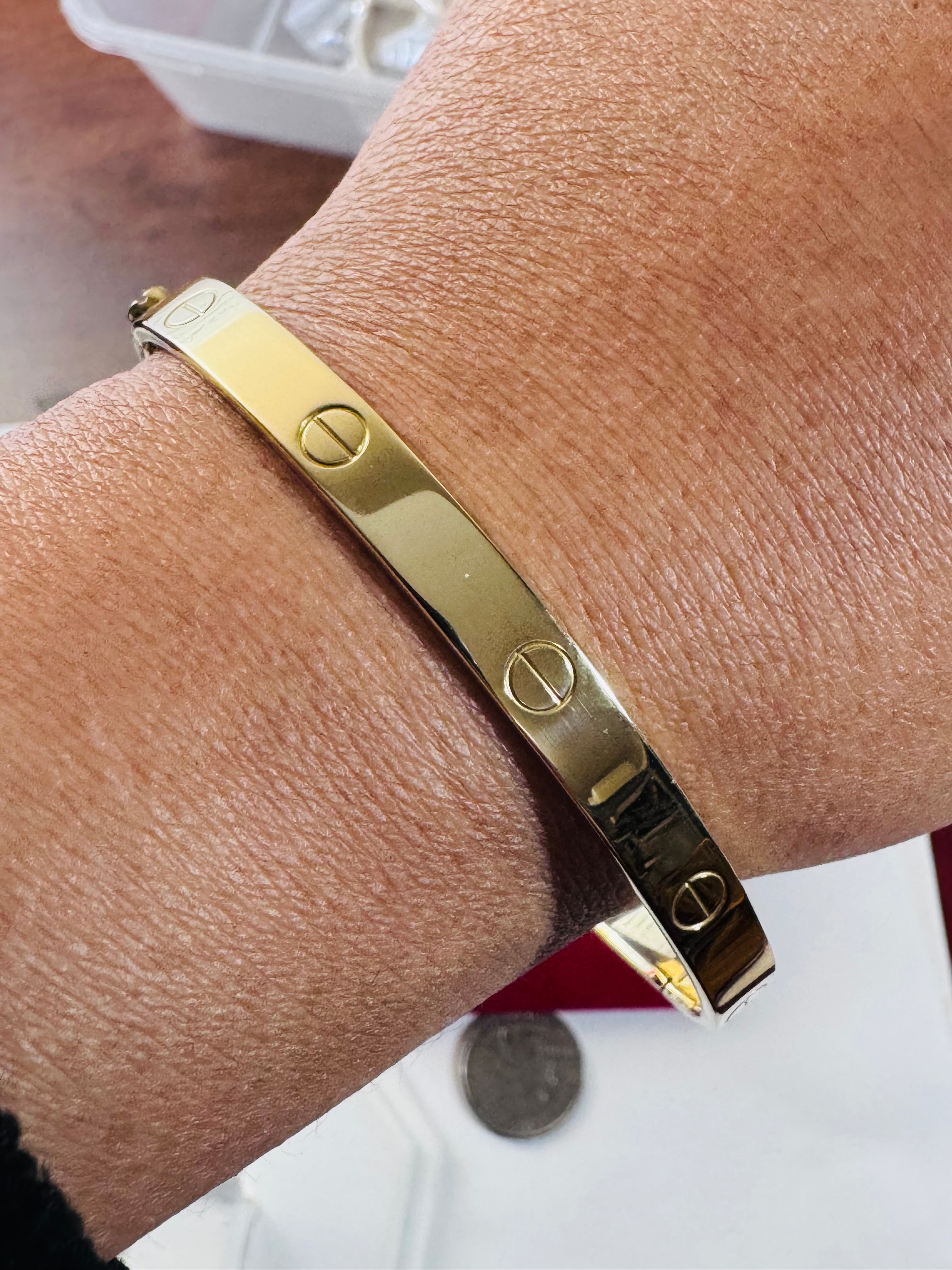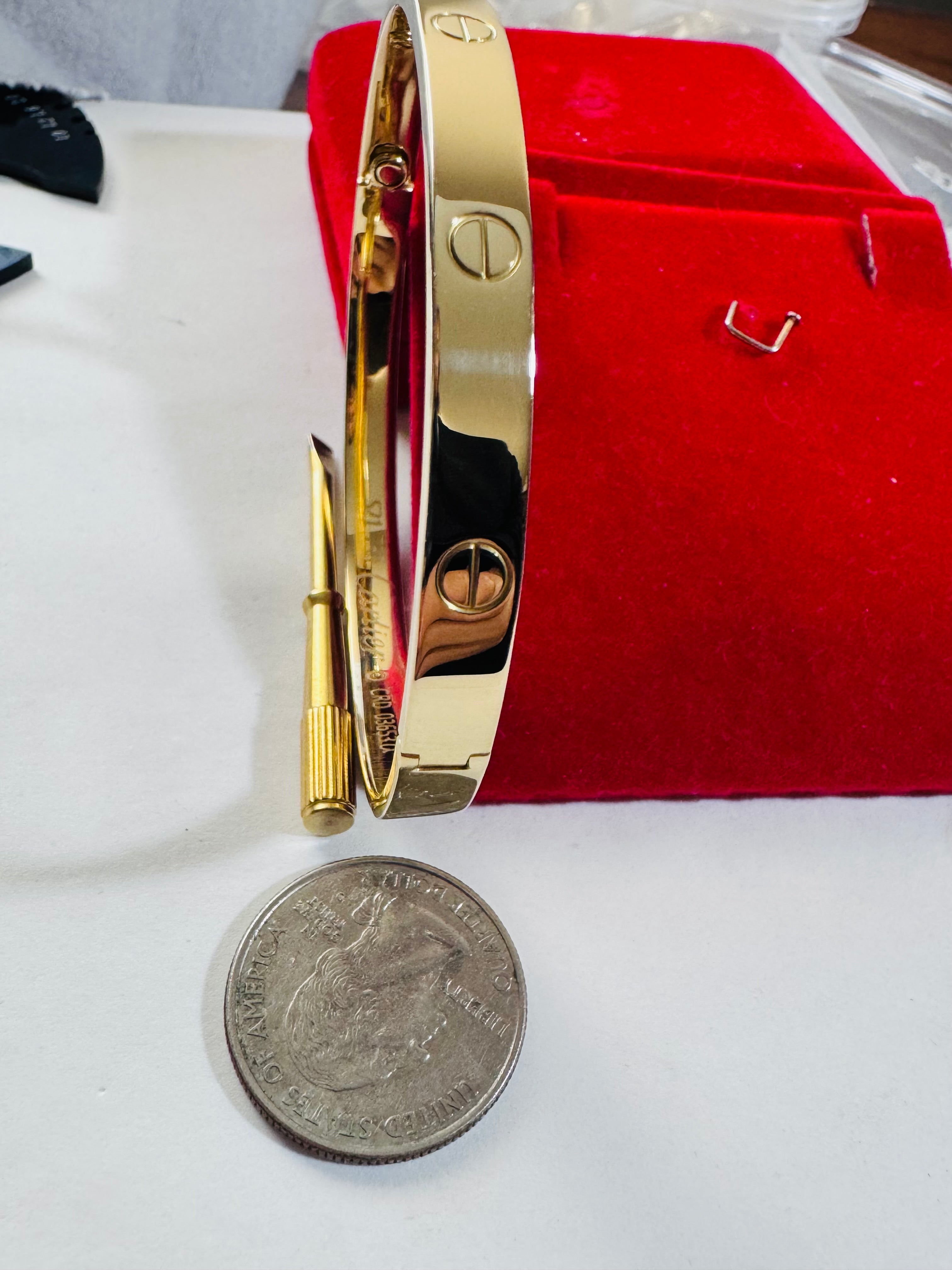 New 18K 750 Yellow Fine Gold Love Bangle Fits 21cm/ 8”inch Large/XL Real Genuine Gold Handmade Special order
