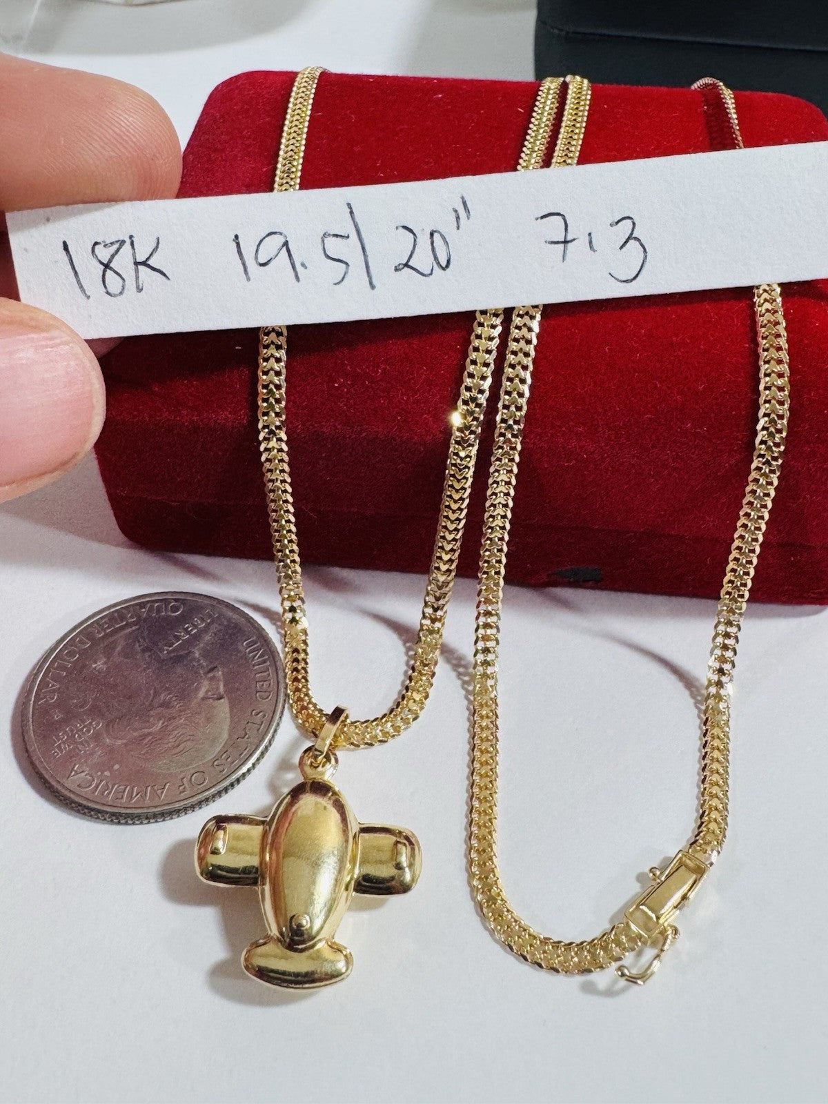 Pure 18K 750 Fine Genuine Gold Airplane Set Necklace 19.5”/20” Long 7.3g 3mm