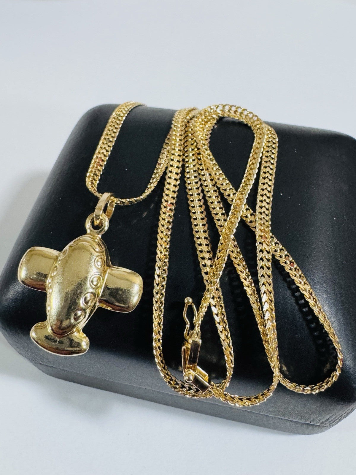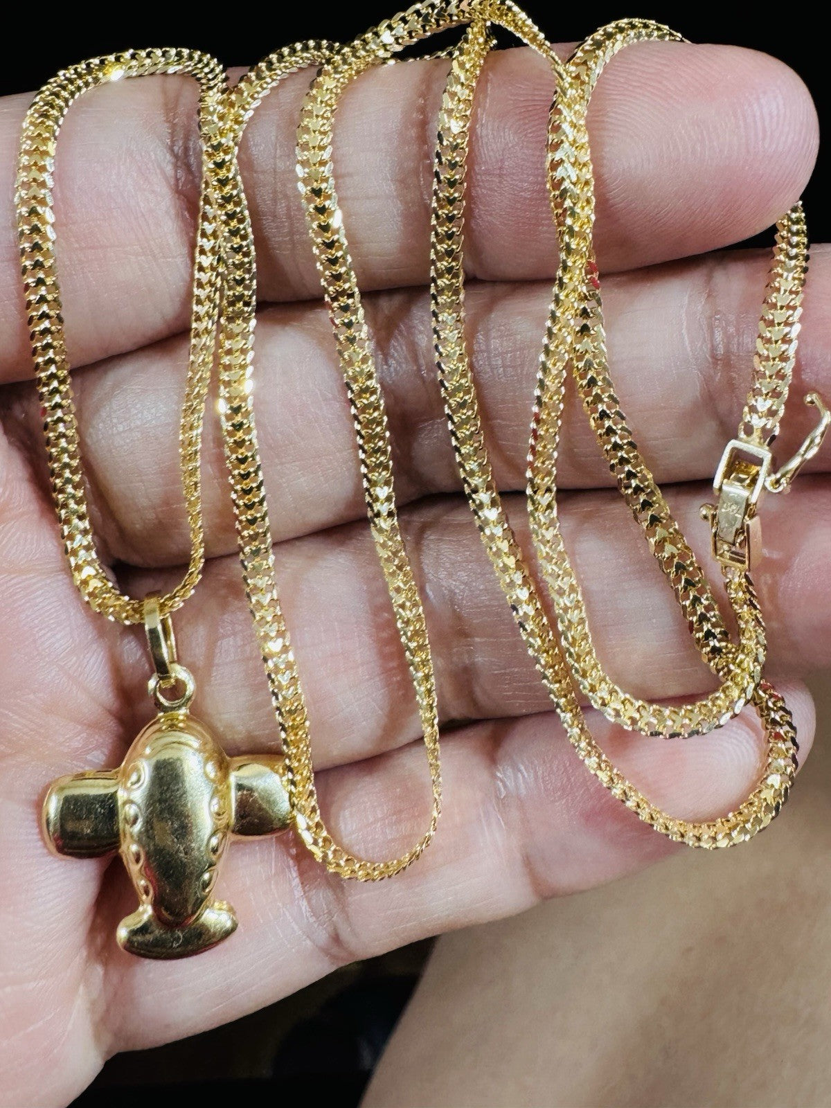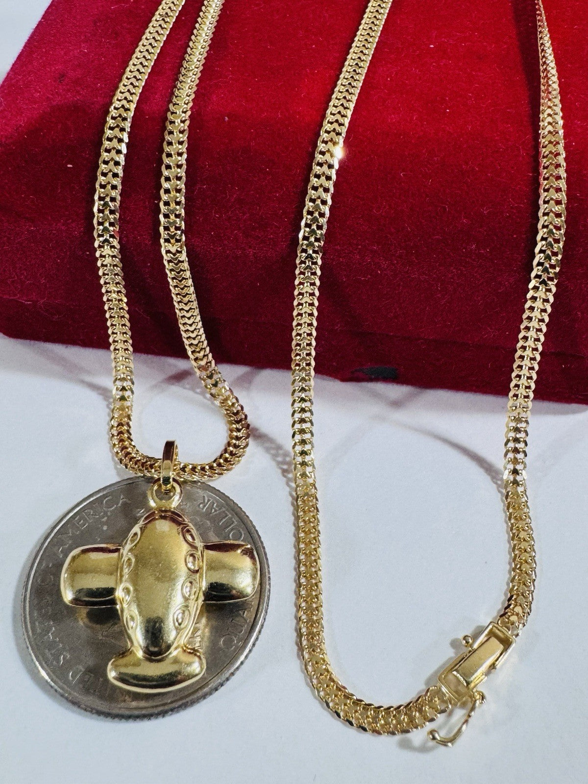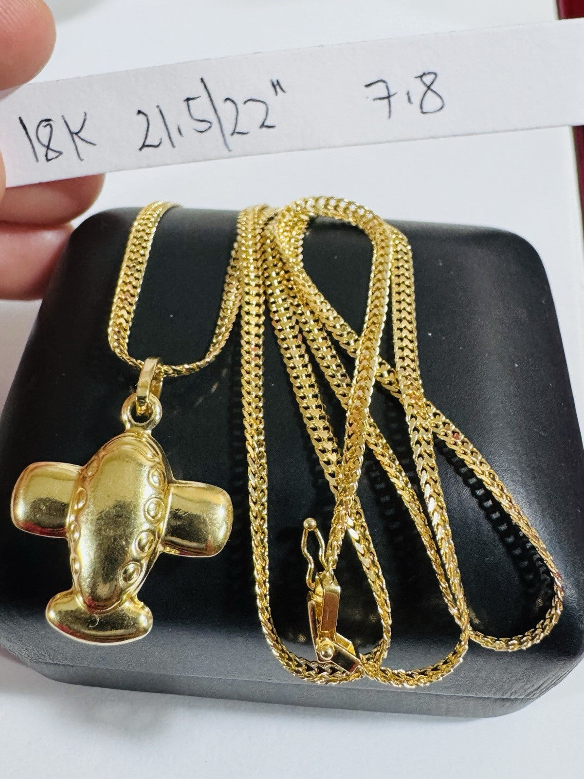This beautiful Set Necklace is expertly crafted in 18K 750 real yellow gold and features a stunning 21.5 inch chain with a lobster clasp with 3mm wide 7.8 grams