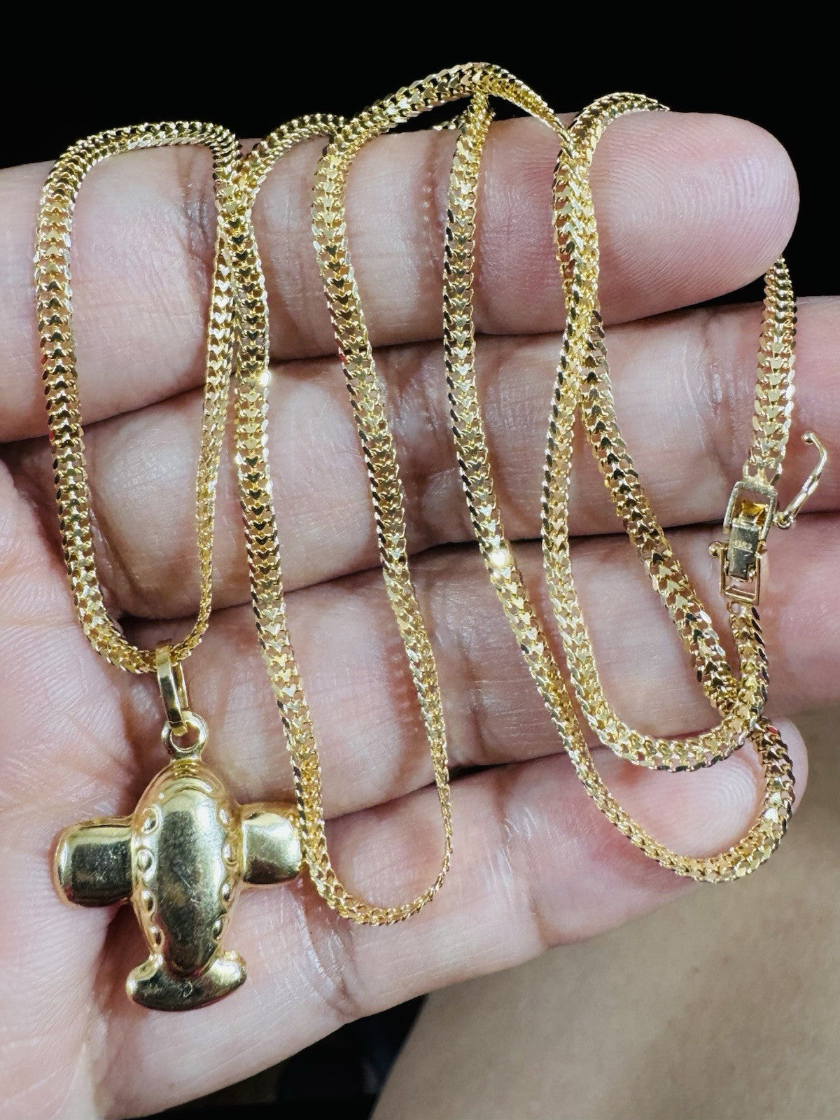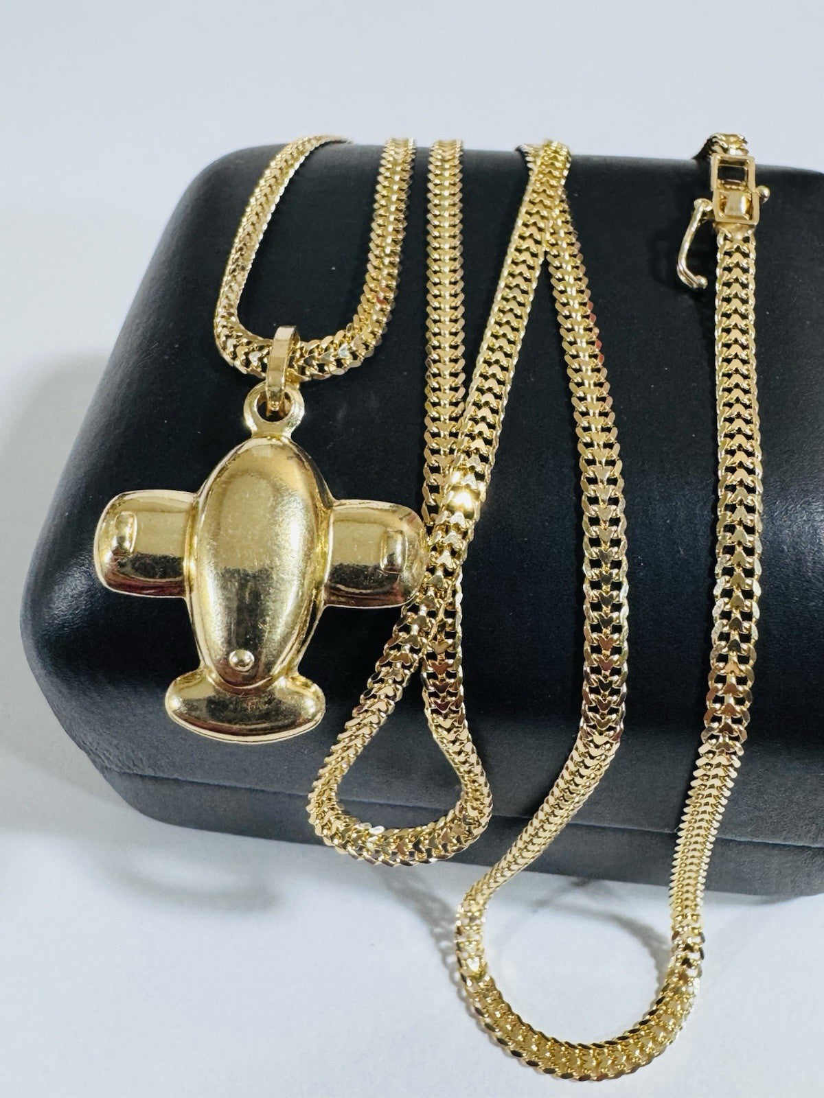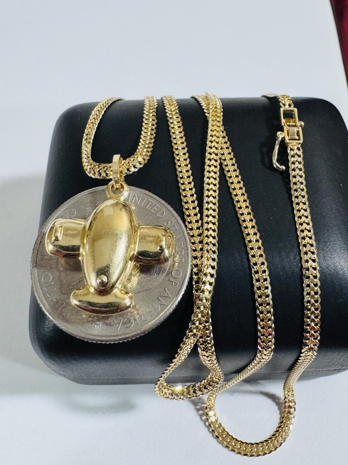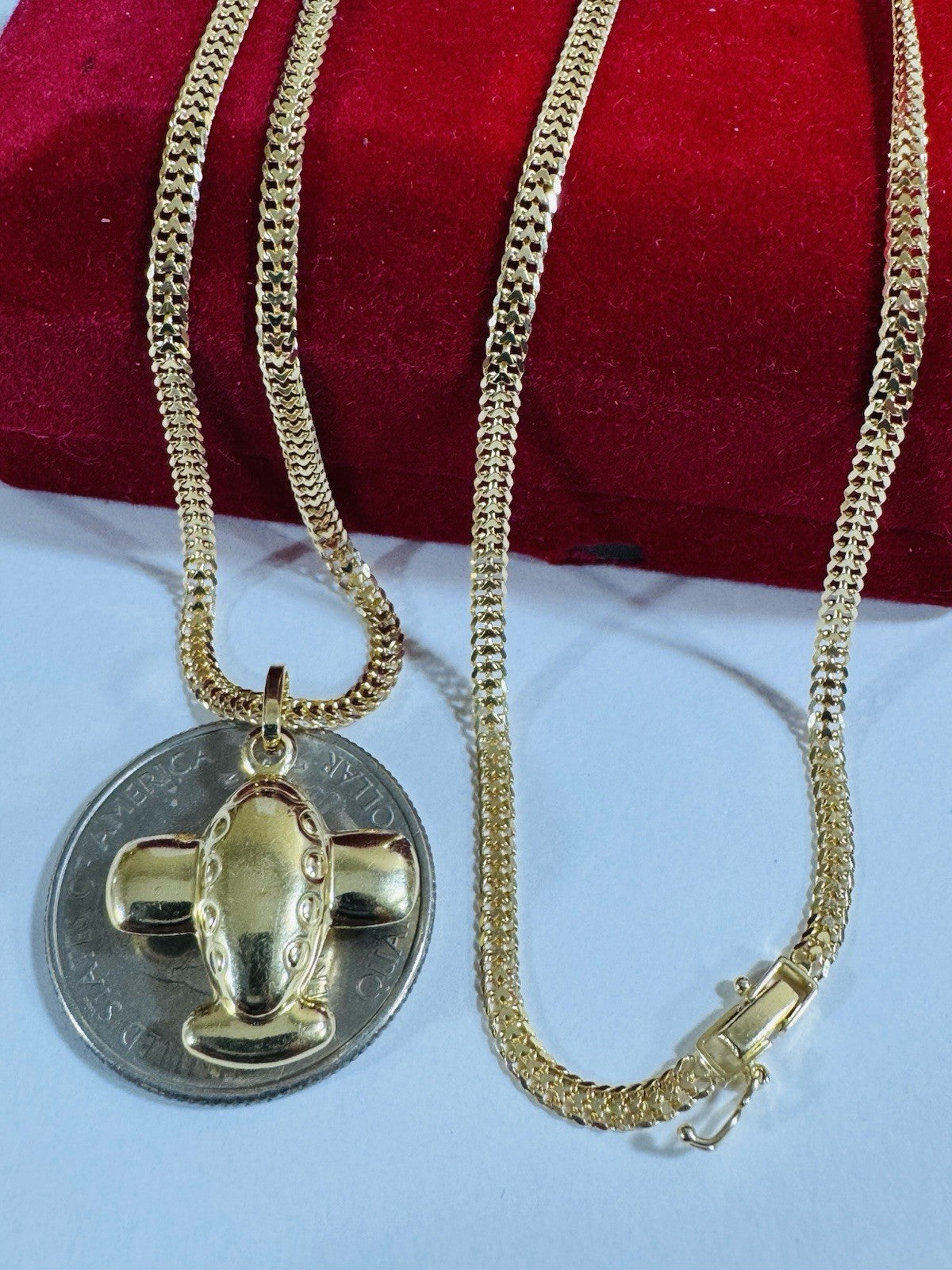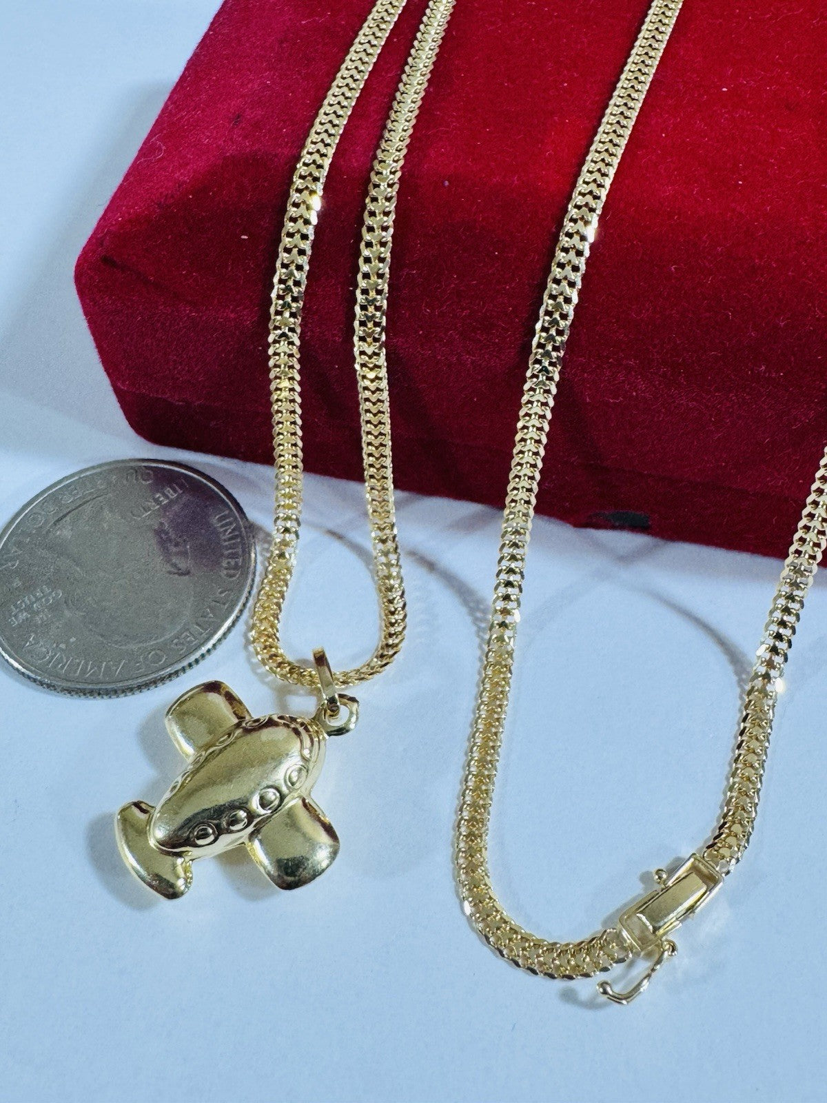 Pure 18K 750 Fine Genuine Gold Airplane Set Necklace 21.5”/22” Long 7.8g 3mm