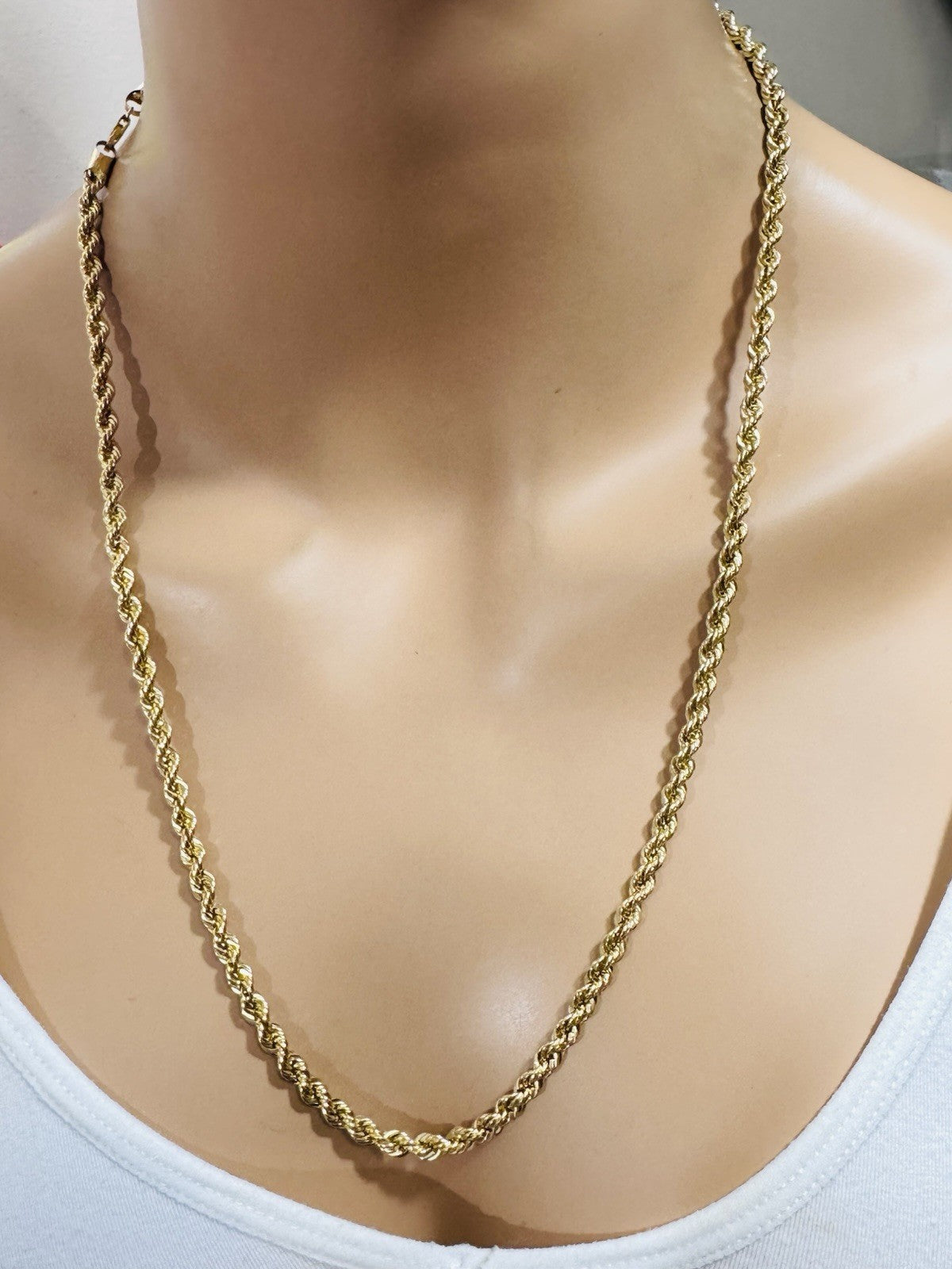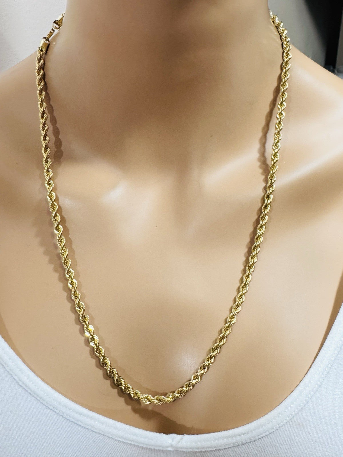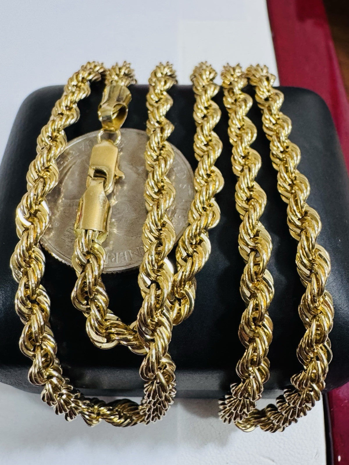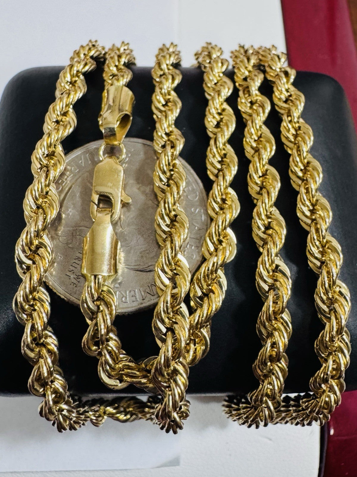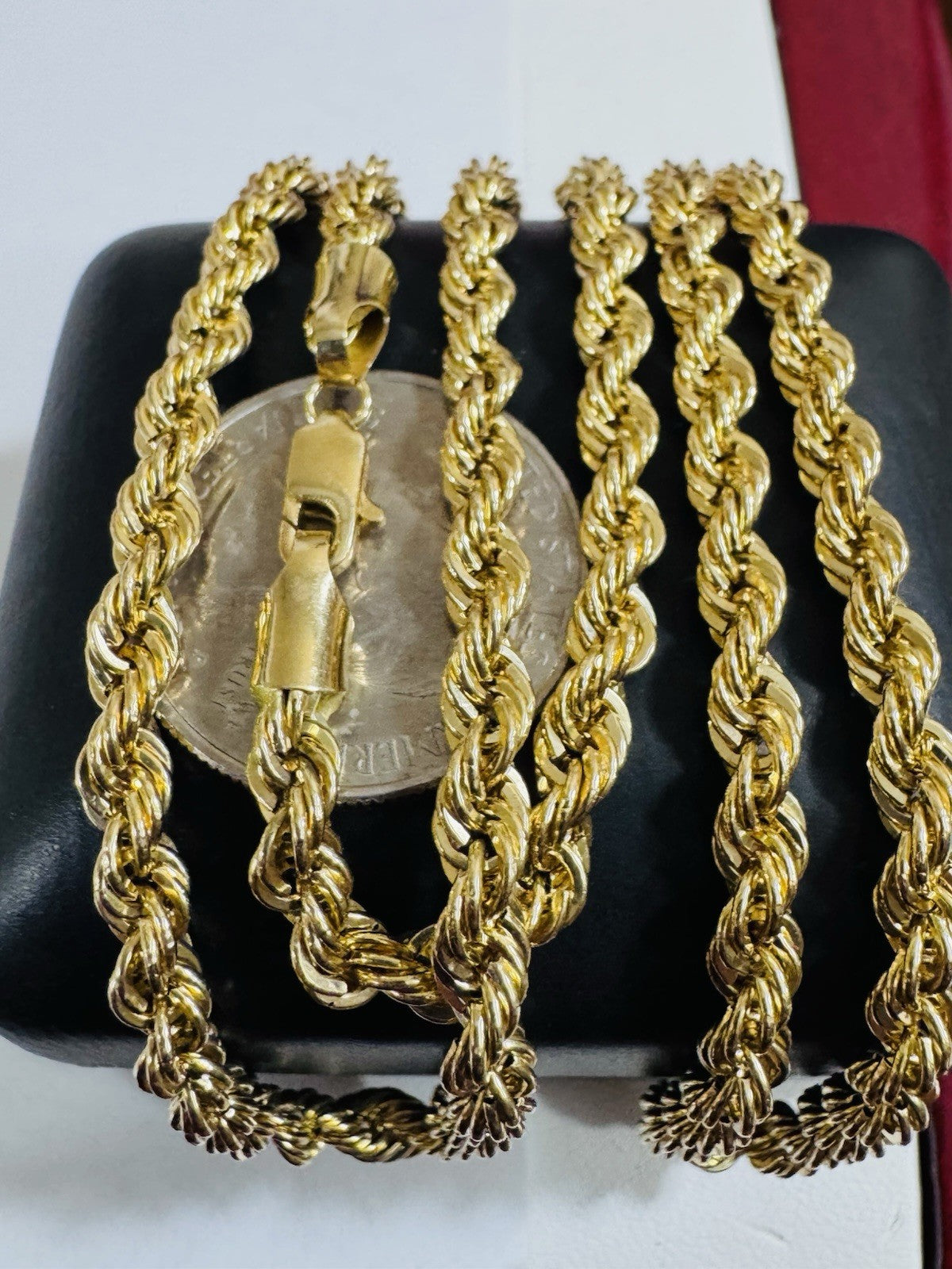 * Hello You are buying Real Brand New 18K 750 Real Fine Yellow Gold Rope Chain Necklace 24.5” Long 4mm 12.9g Fast ship. Good weight Good size yet Hollow inside.