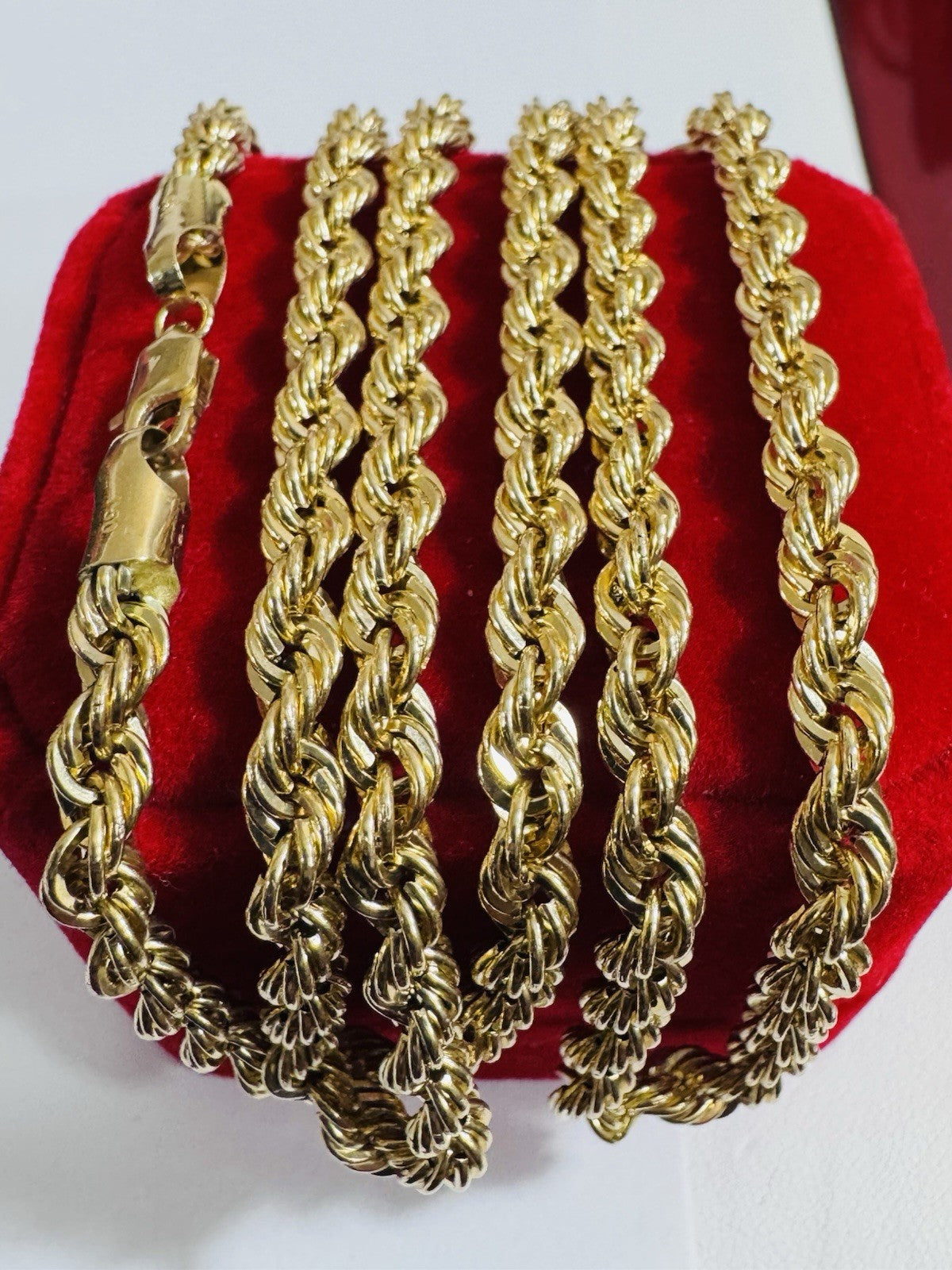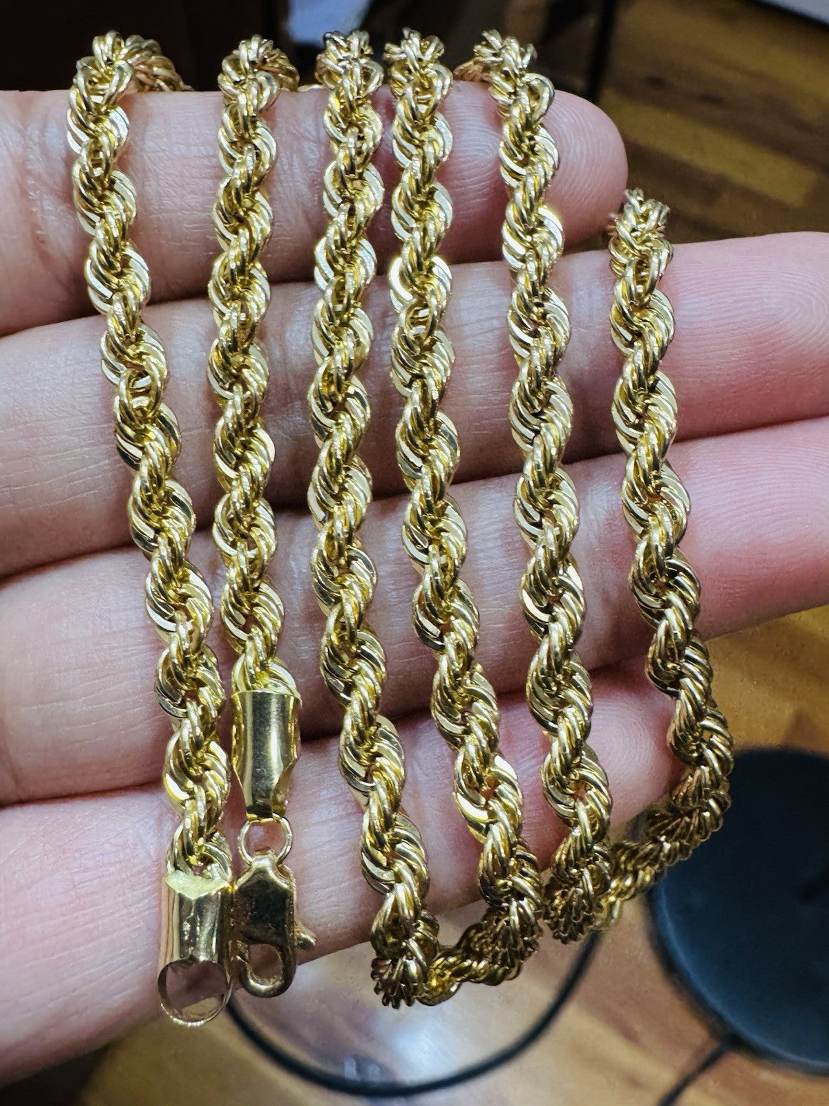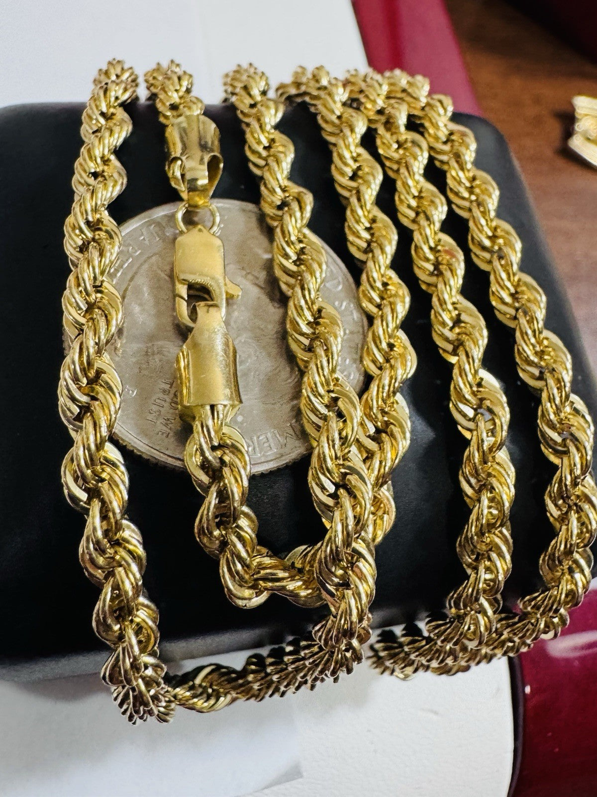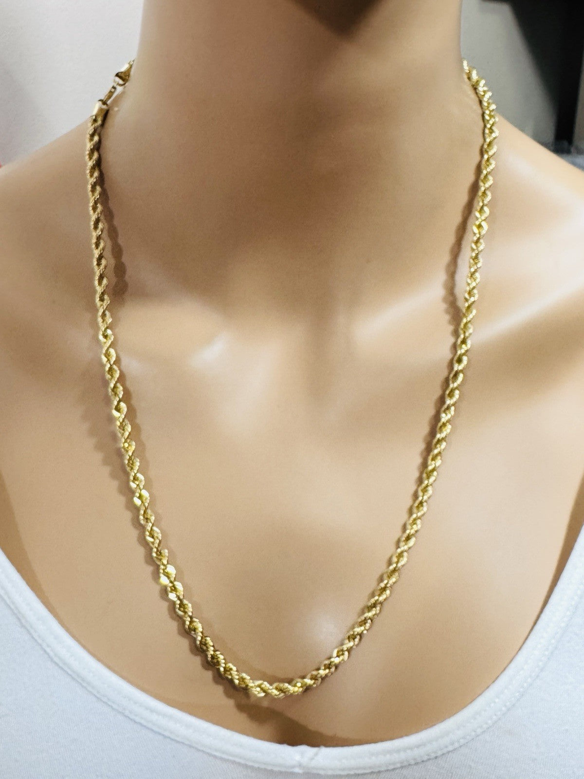 * Hello You are buying Real Brand New 18K 750 Real Fine Yellow Gold Rope Chain Necklace 24.5” Long 4mm 12.9g Fast ship. Good weight Good size yet Hollow inside.