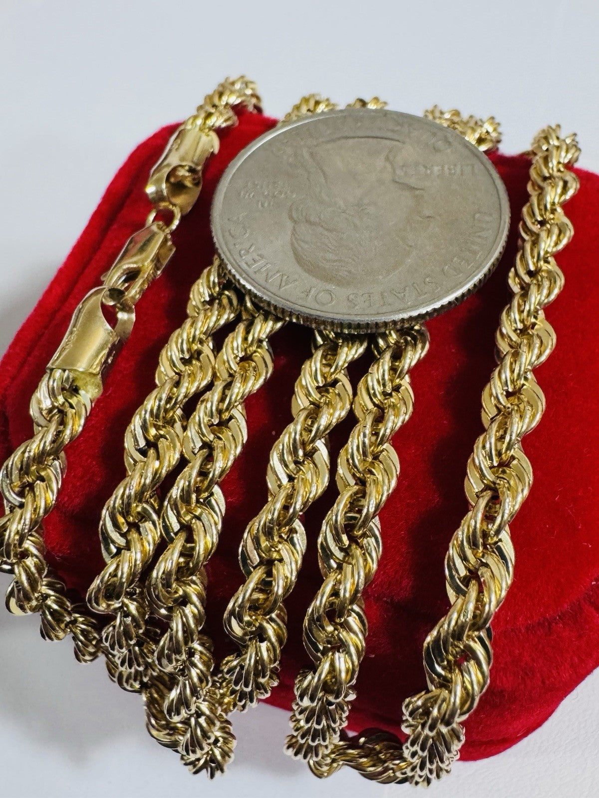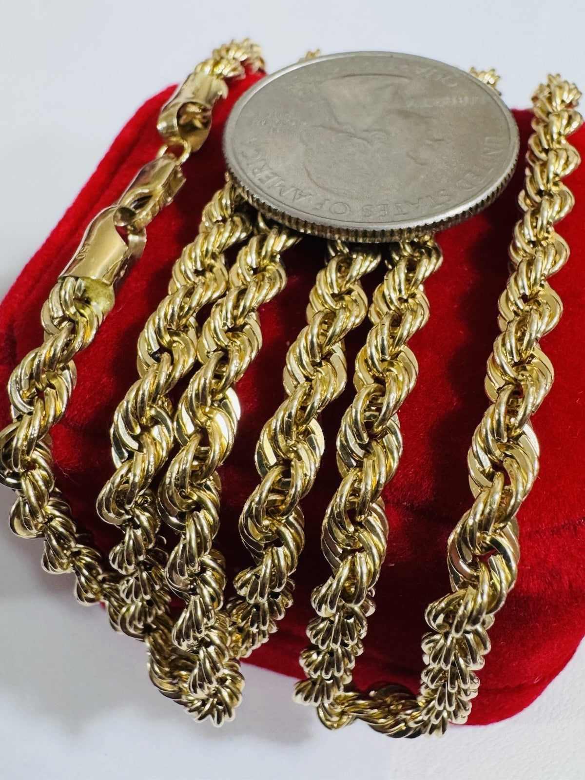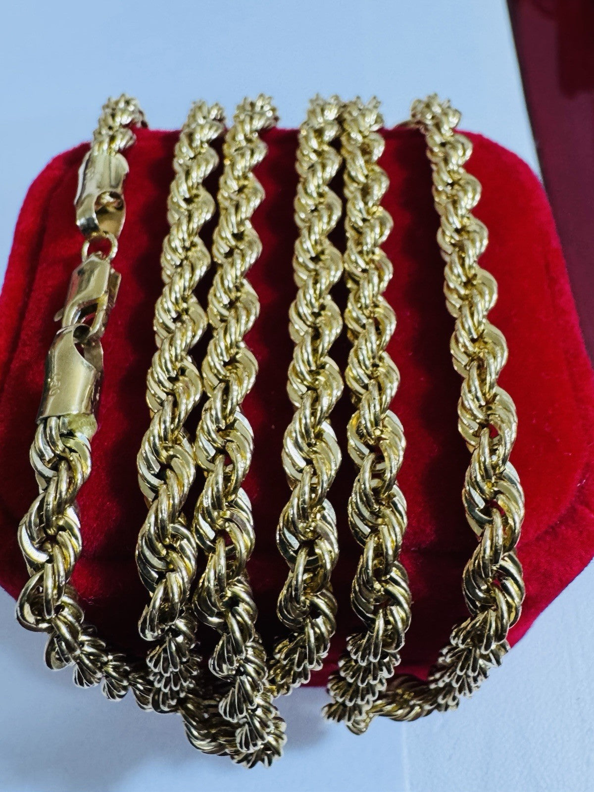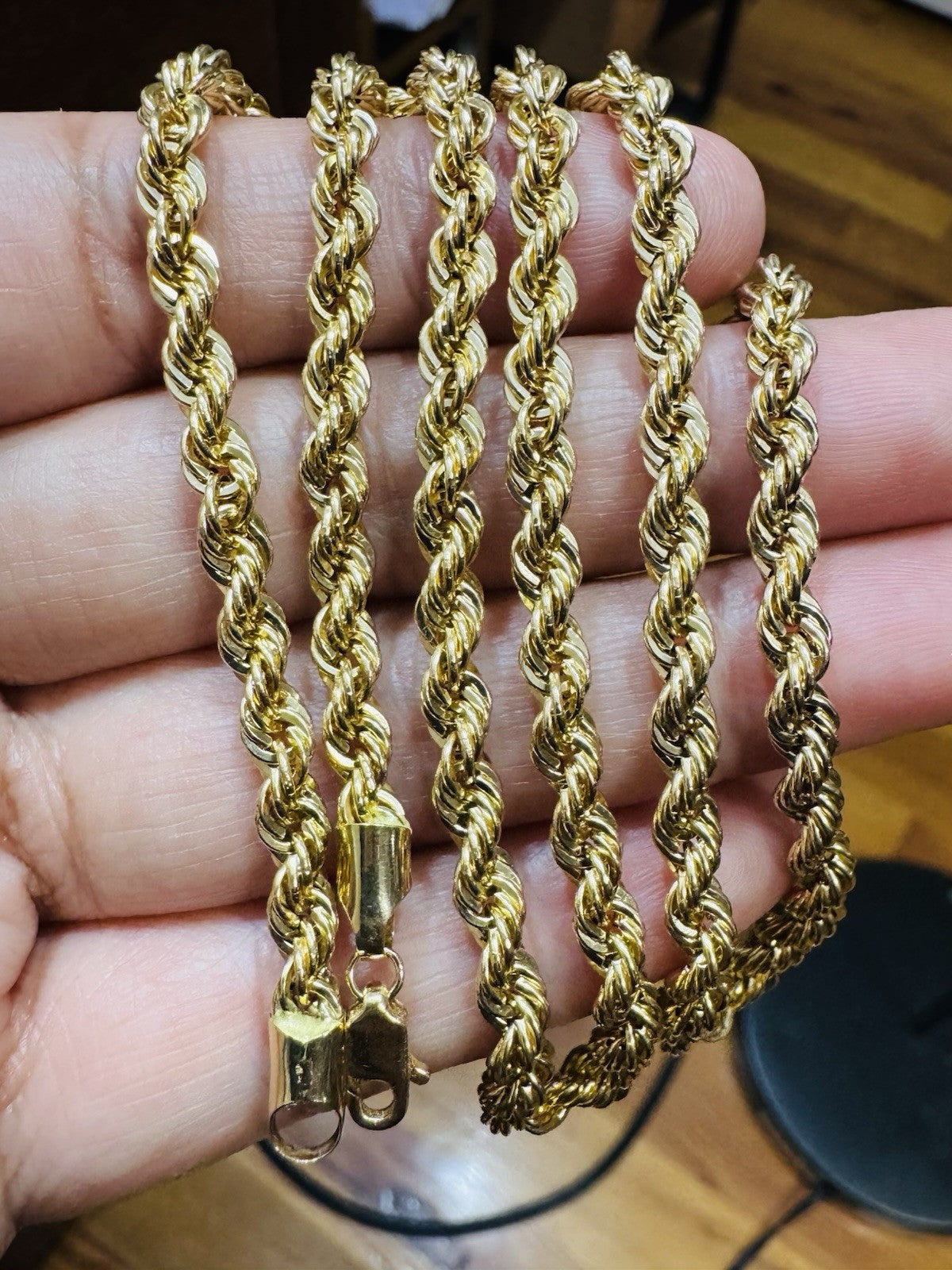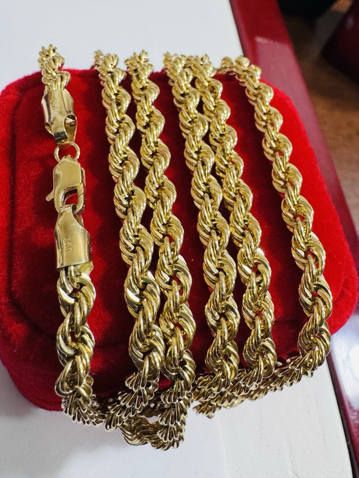 * Hello You are buying Real Brand New 18K 750 Real Fine Yellow Gold Rope Chain Necklace 24.5” Long 4mm 12.9g Fast ship. Good weight Good size yet Hollow inside.