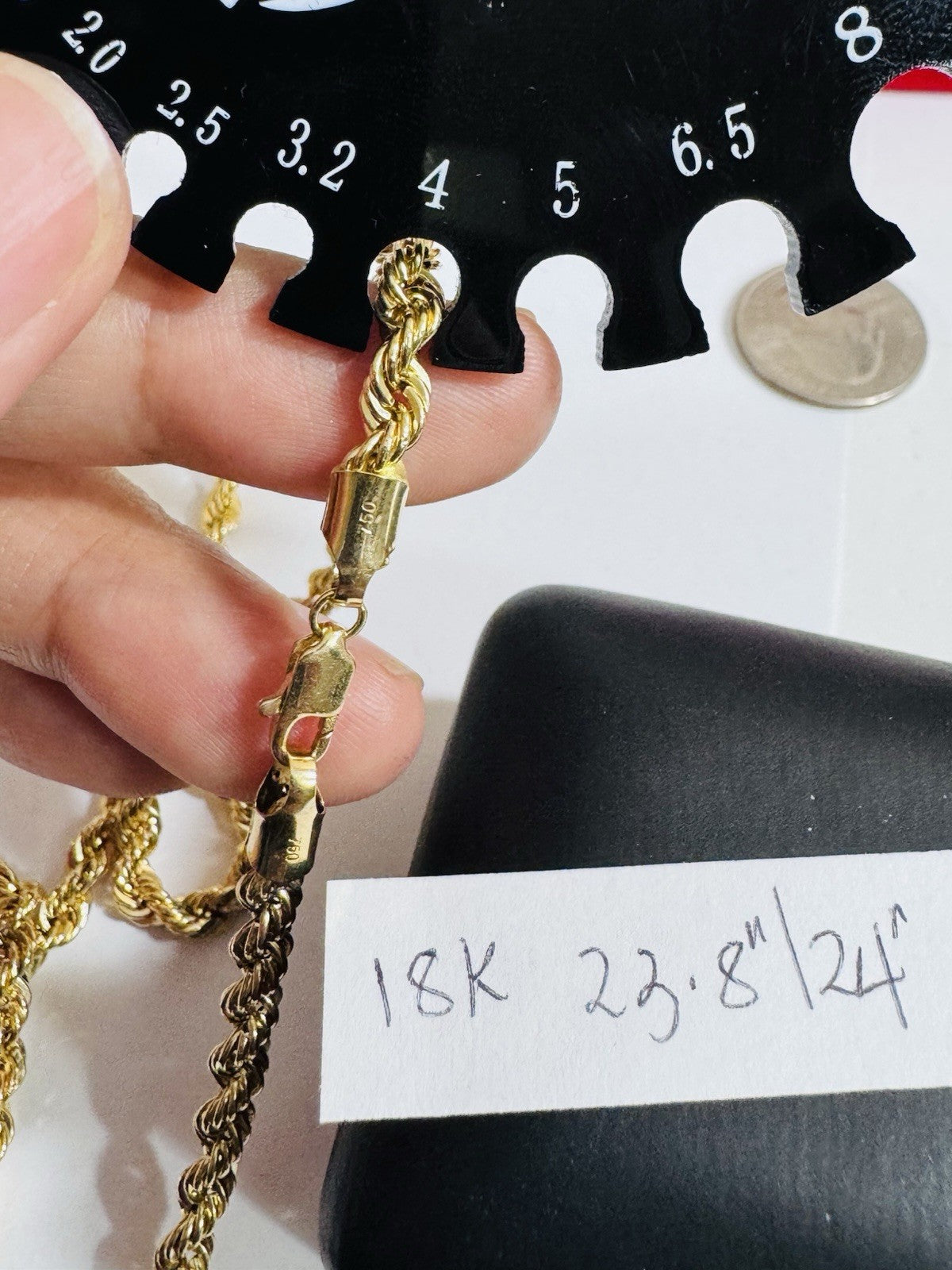 Pure 18K 750 Real Gold Fine Rope Chain Necklace 24.5”/24” Long 4mm 12.9g Mens