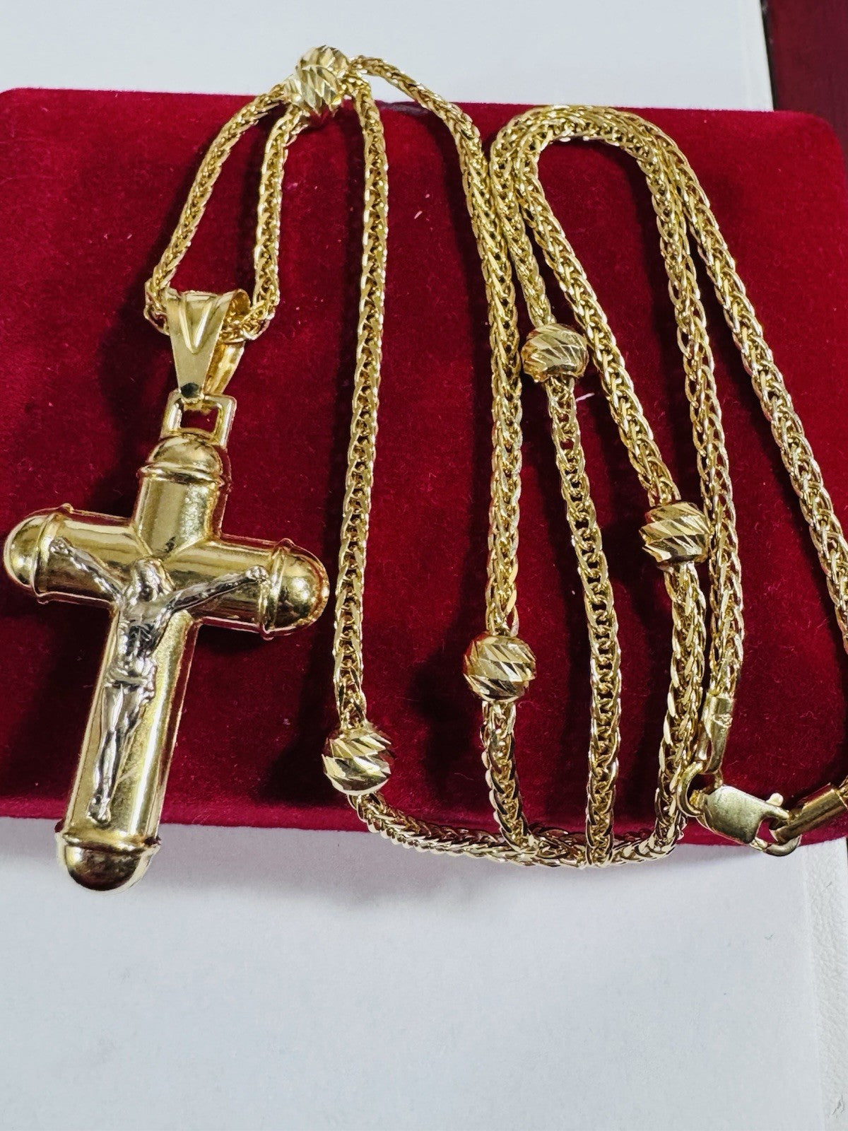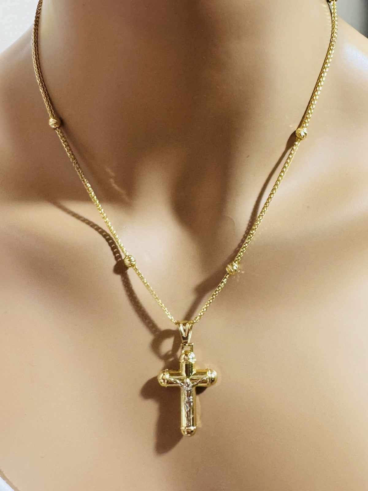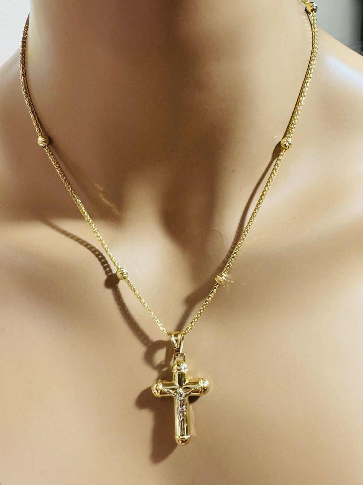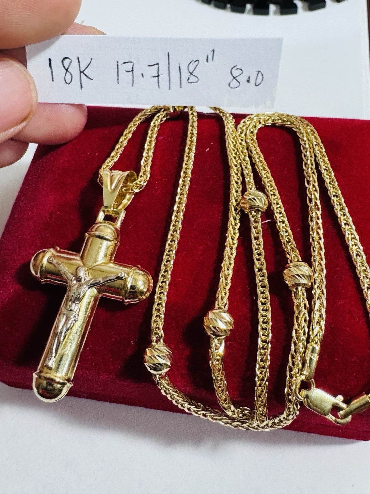 Pure 750 18K Fine Gold Ball Chain Cross Set Necklace 17.7” / 18” Long 2.2mm 8g