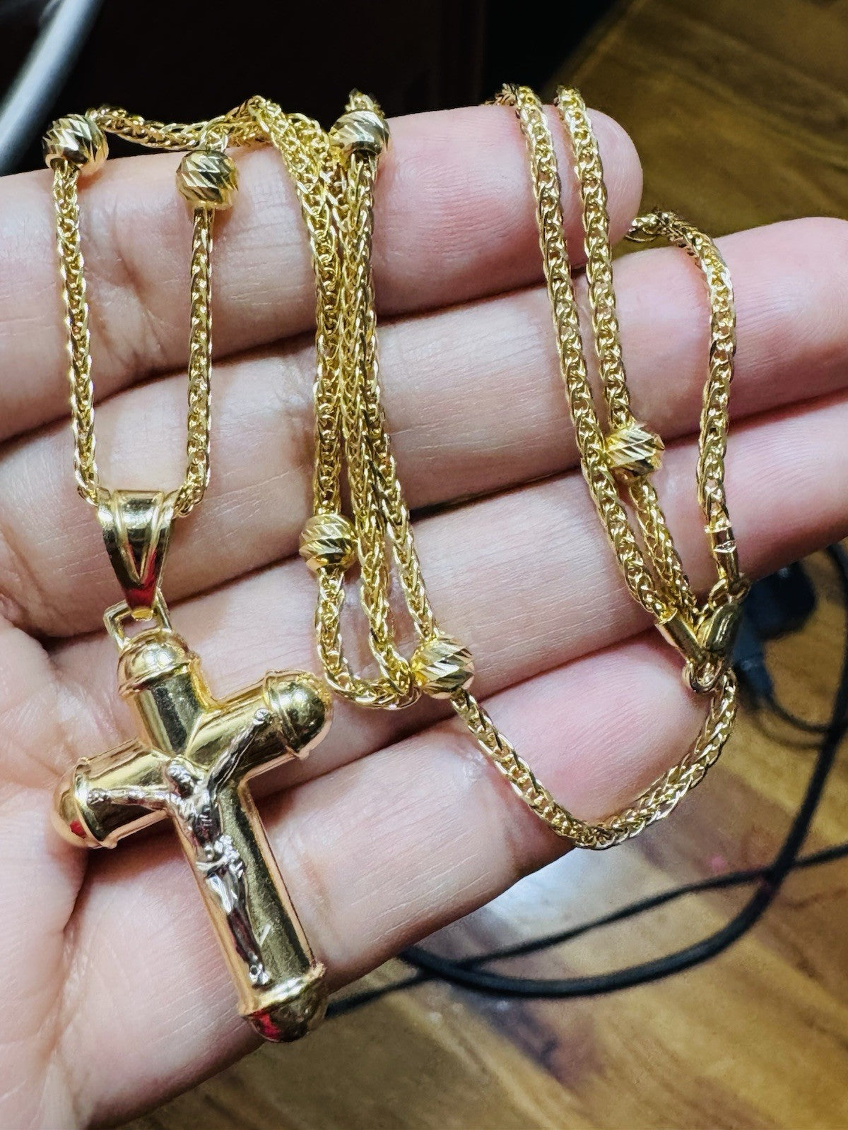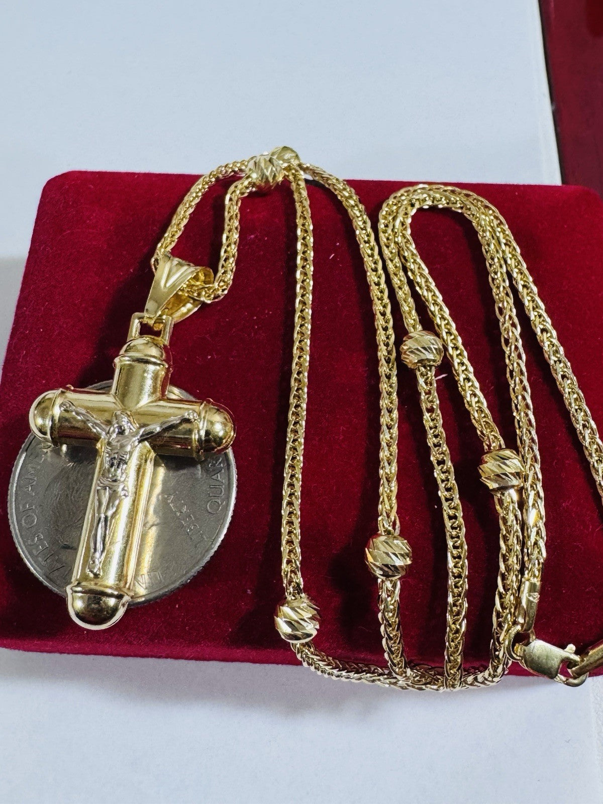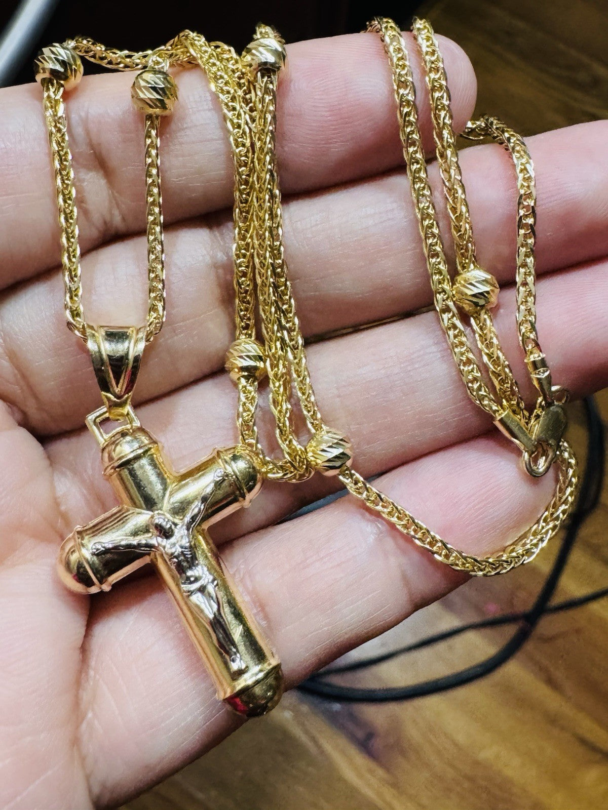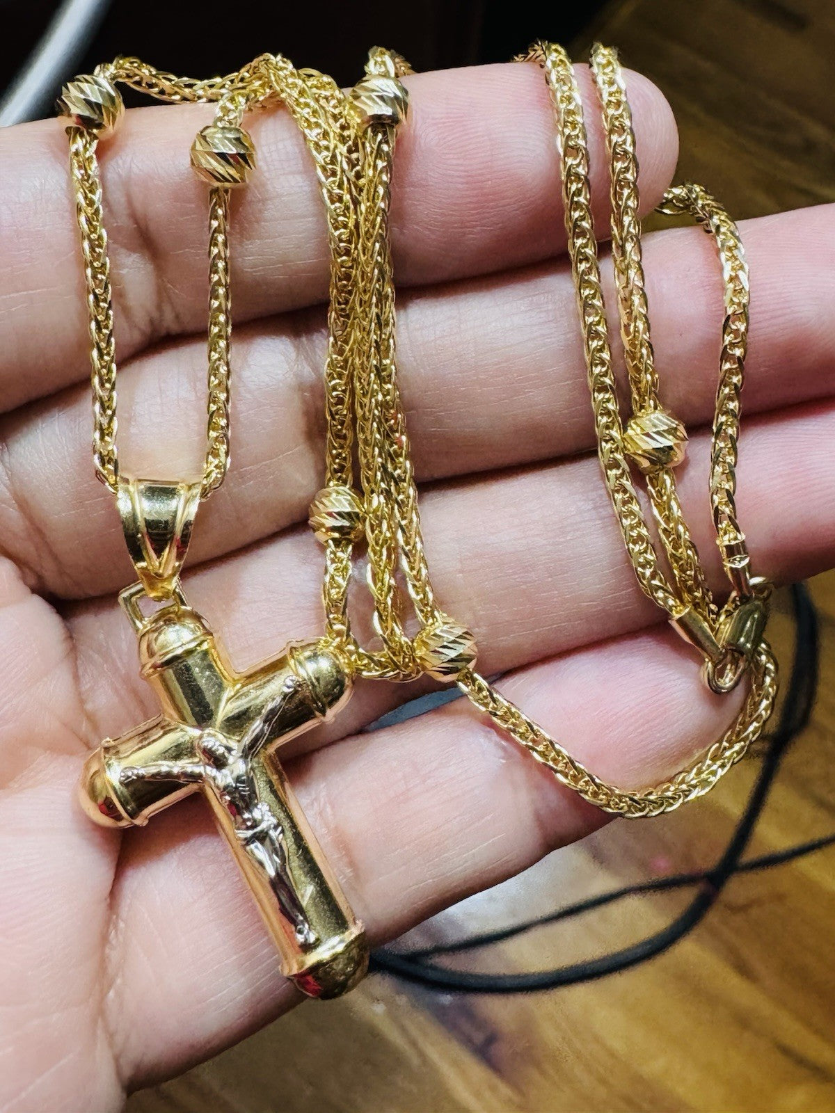 Pure 750 18K Fine Gold Ball Chain Cross Set Necklace 17.7” / 18” Long 2.2mm 8g