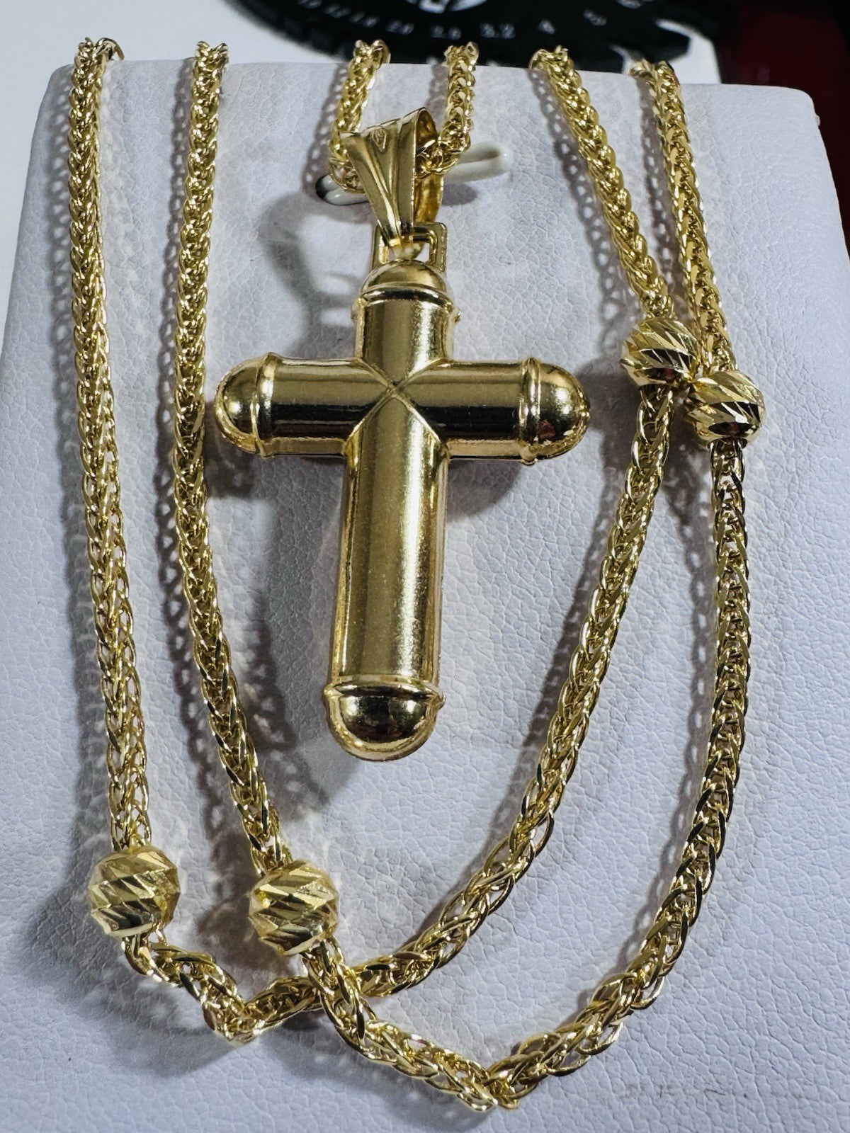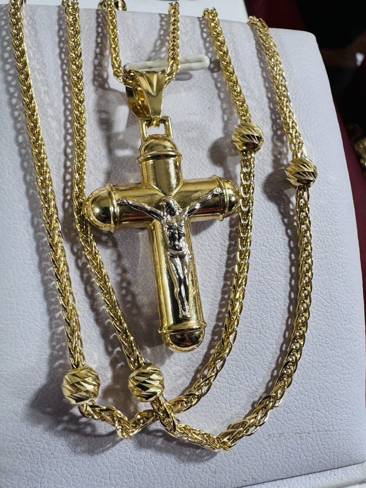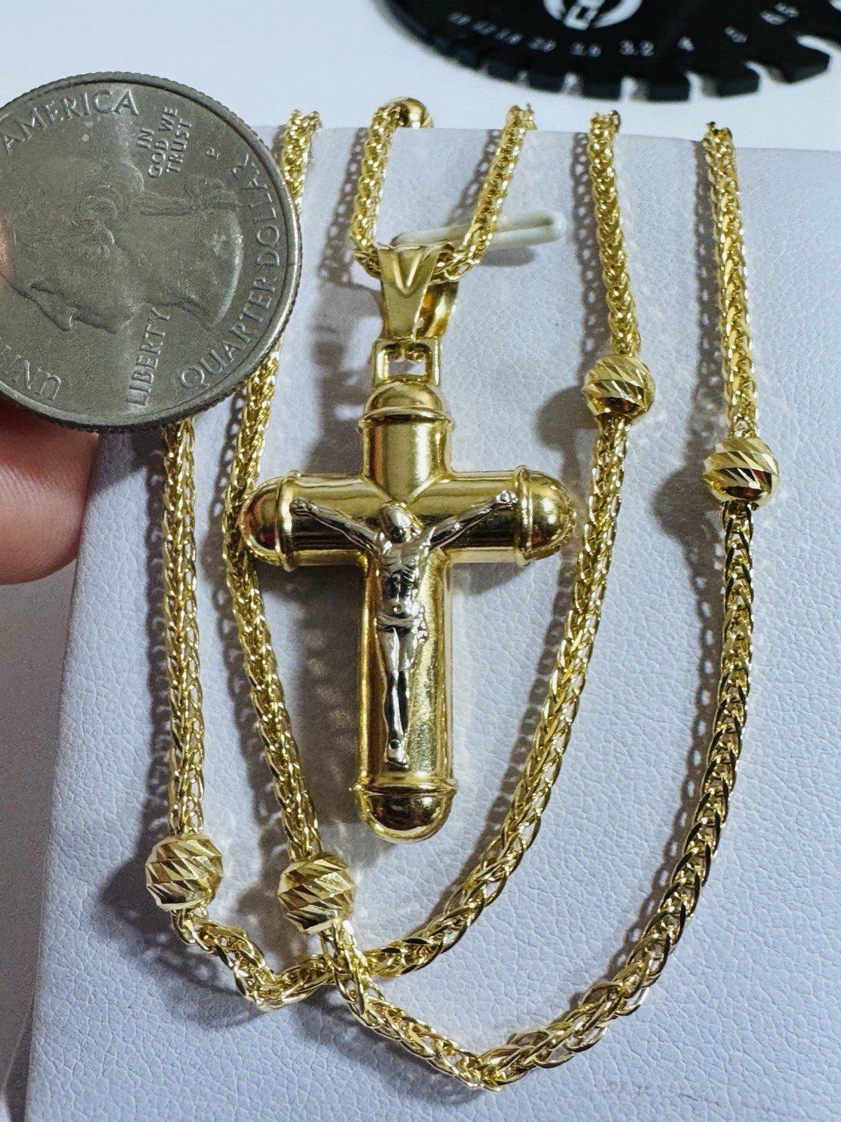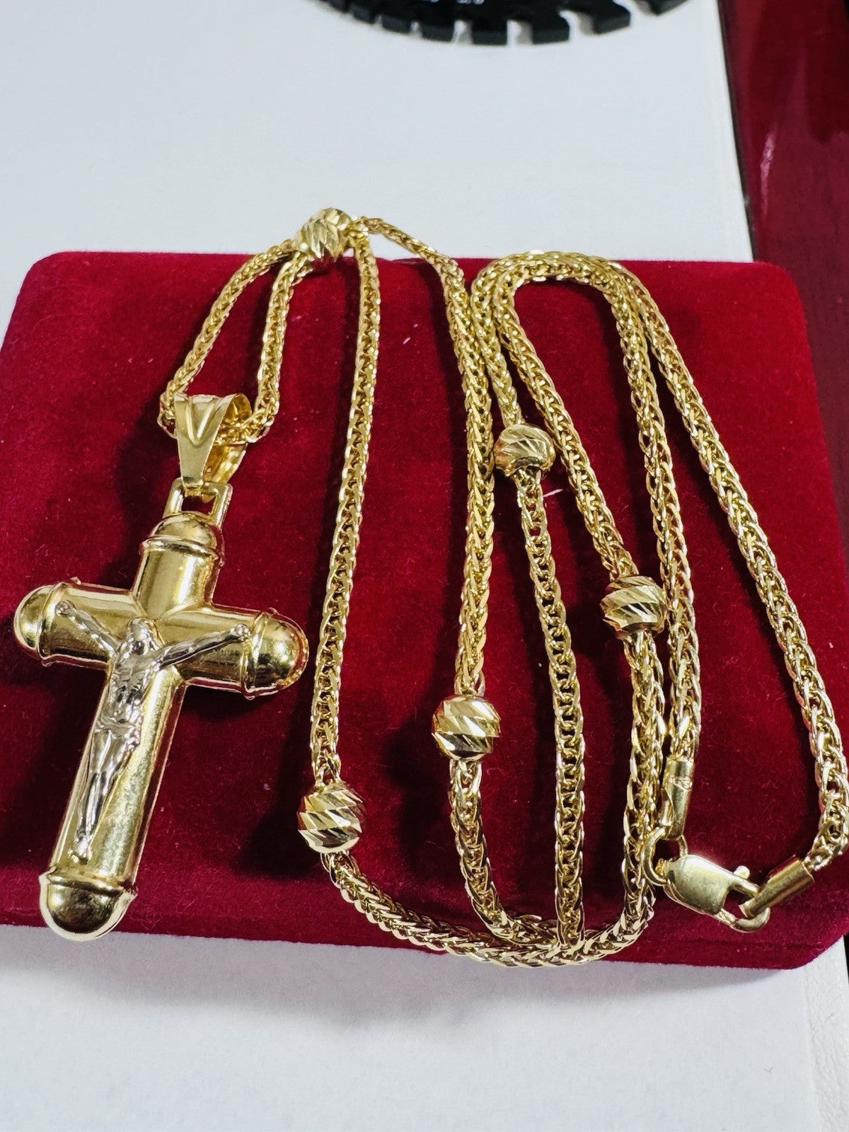 Pure 750 18K Fine Gold Ball Chain Cross Set Necklace 17.7” / 18” Long 2.2mm 8g