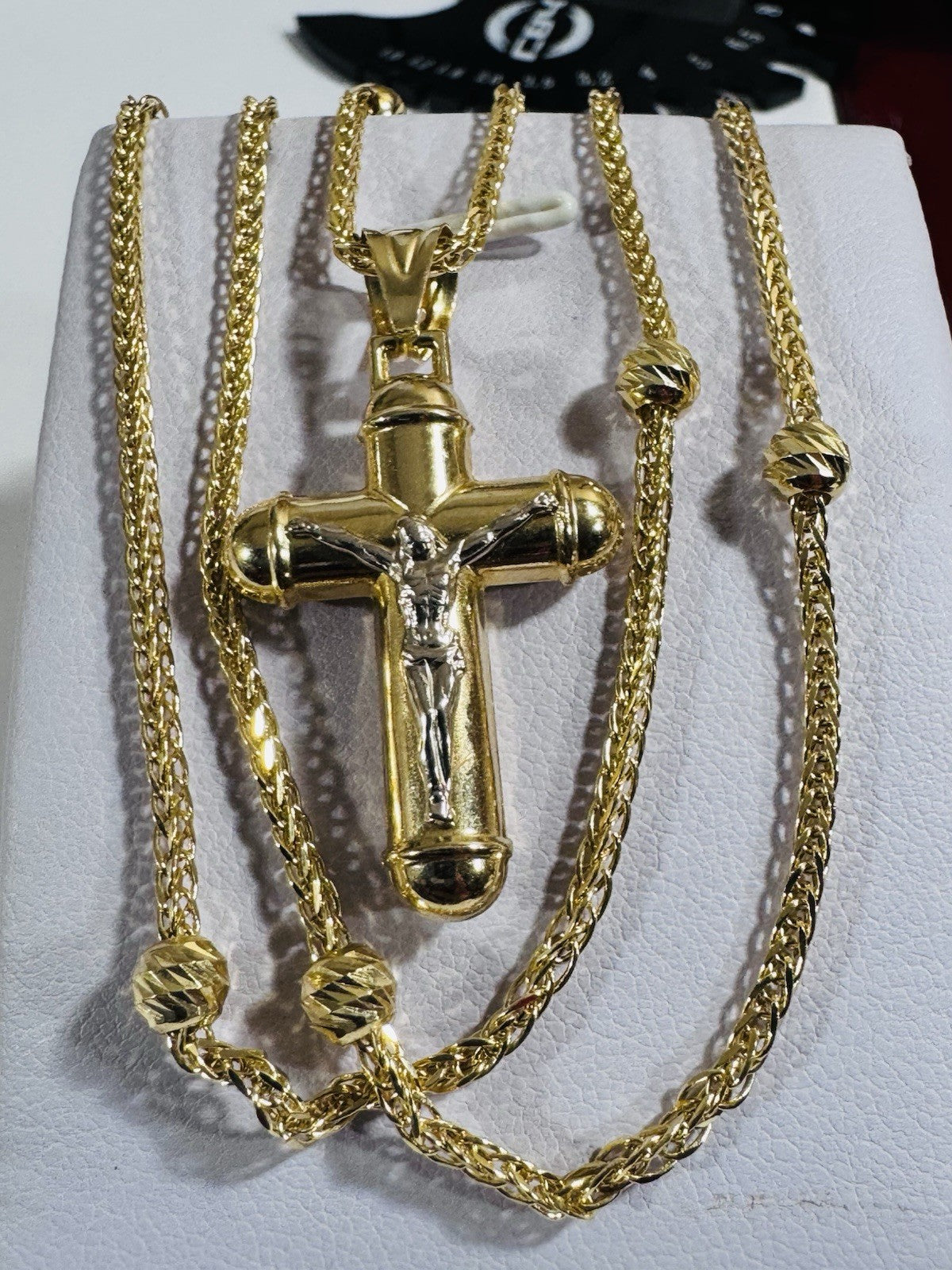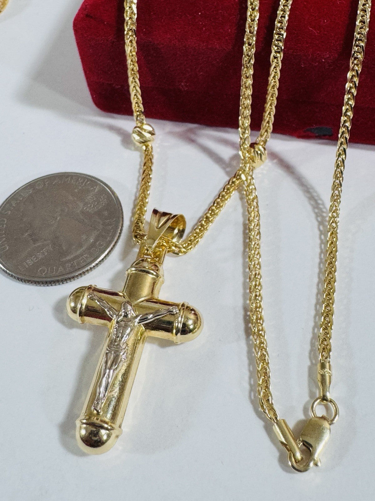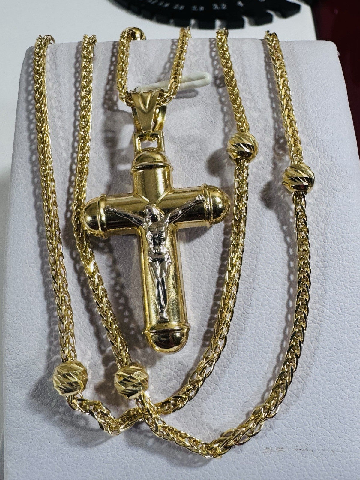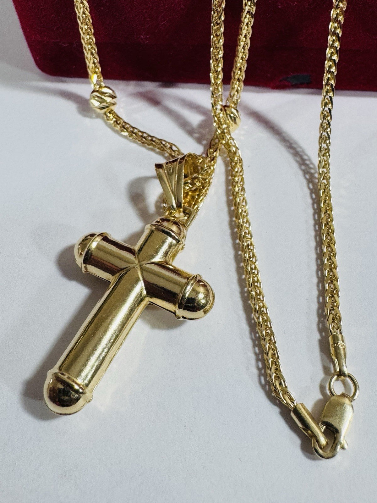 Pure 750 18K Fine Gold Ball Chain Cross Set Necklace 17.7” / 18” Long 2.2mm 8g