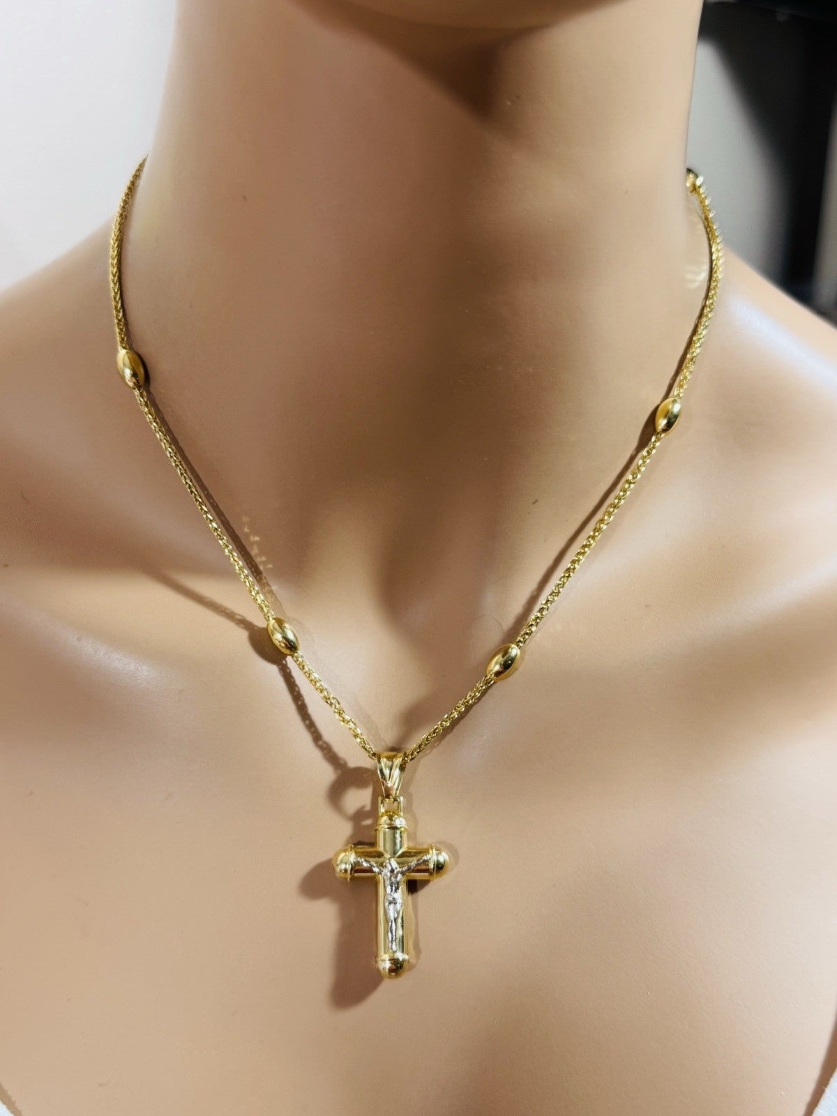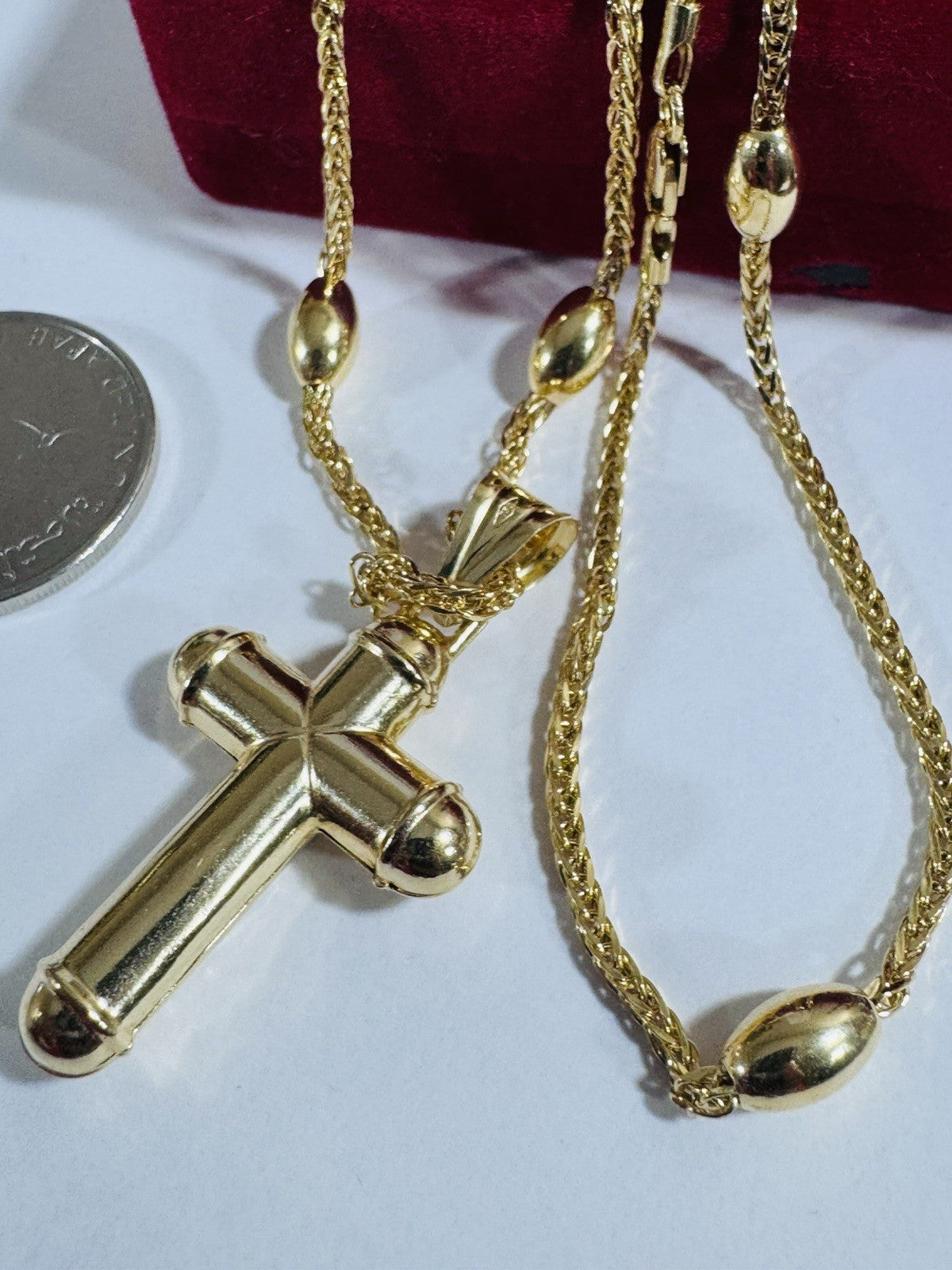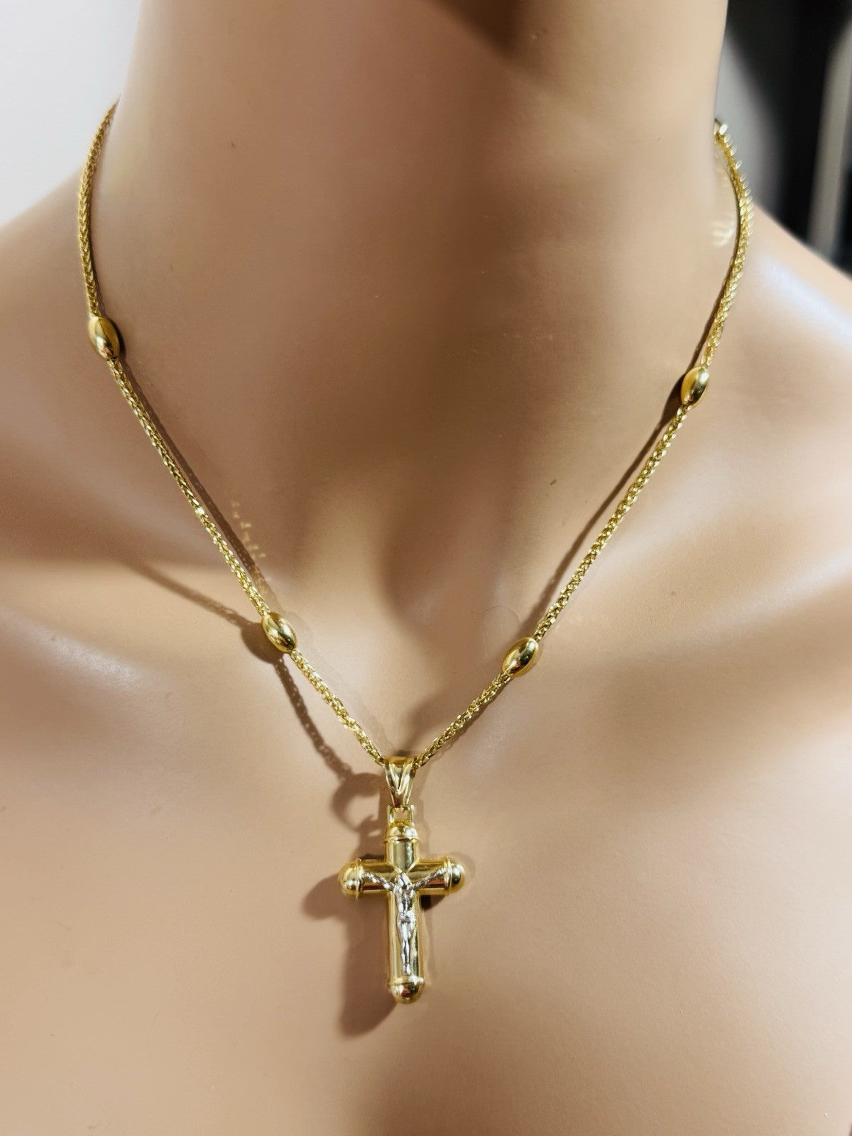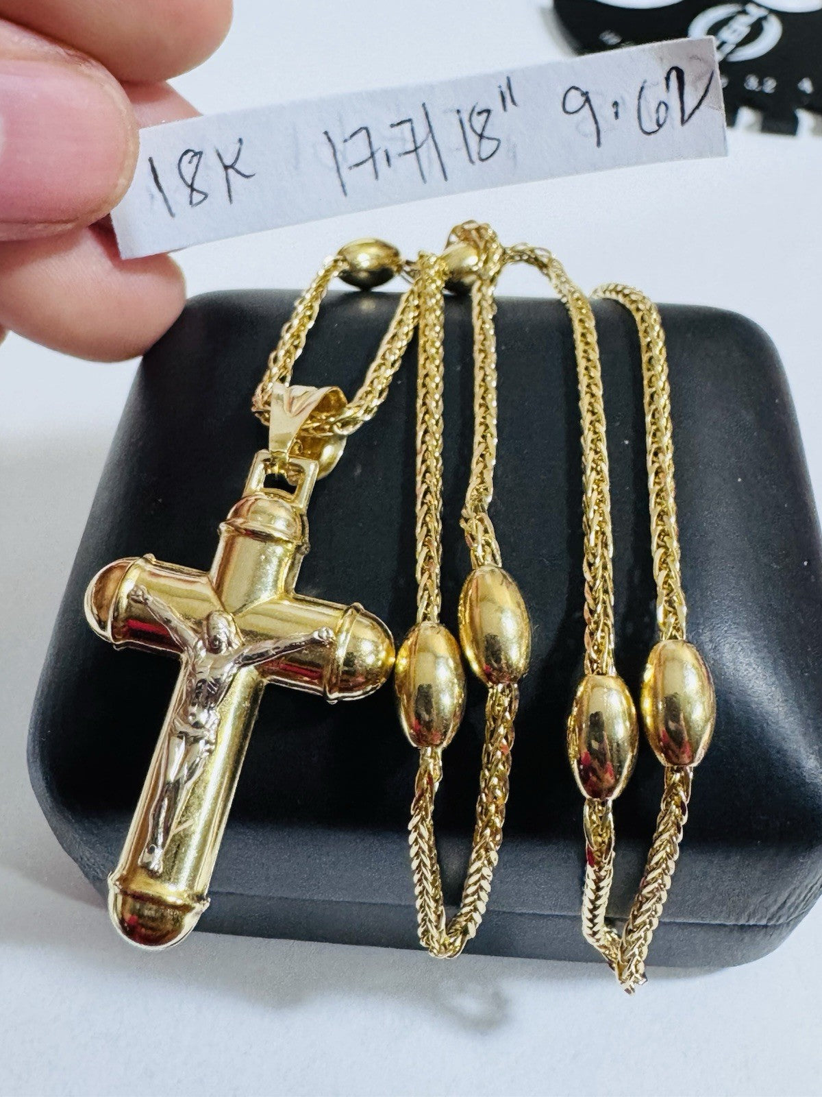 Pure 750 18K Fine Gold Ball Chain Cross Set Necklace 17.7” / 18” Long 2.2mm 9.6g