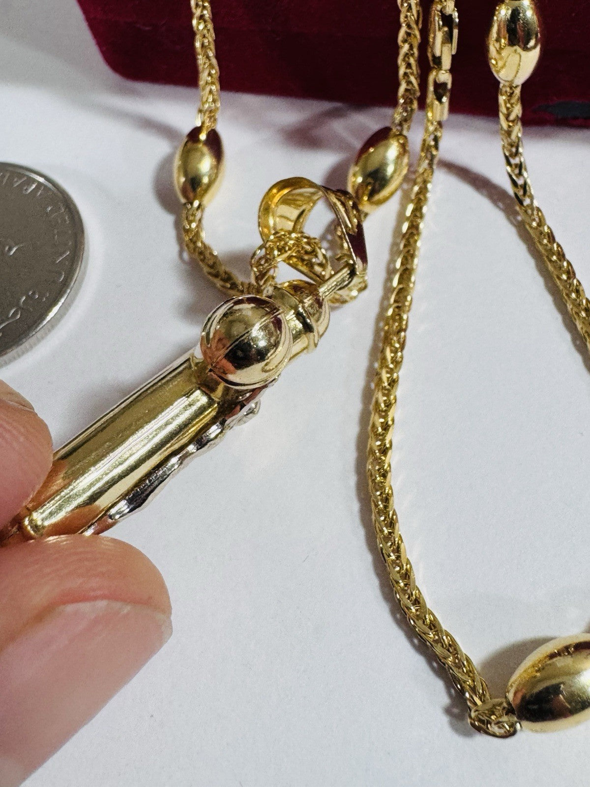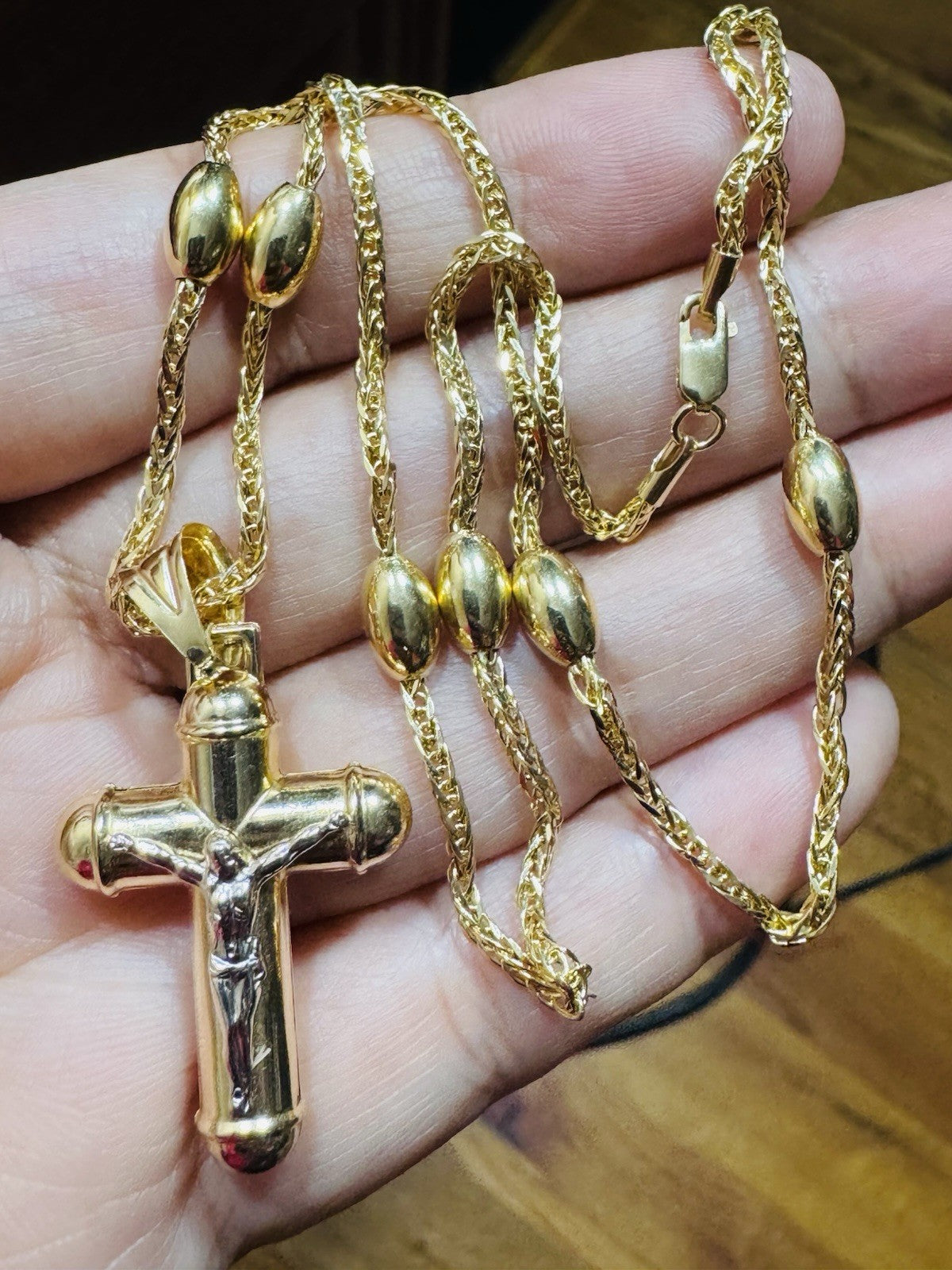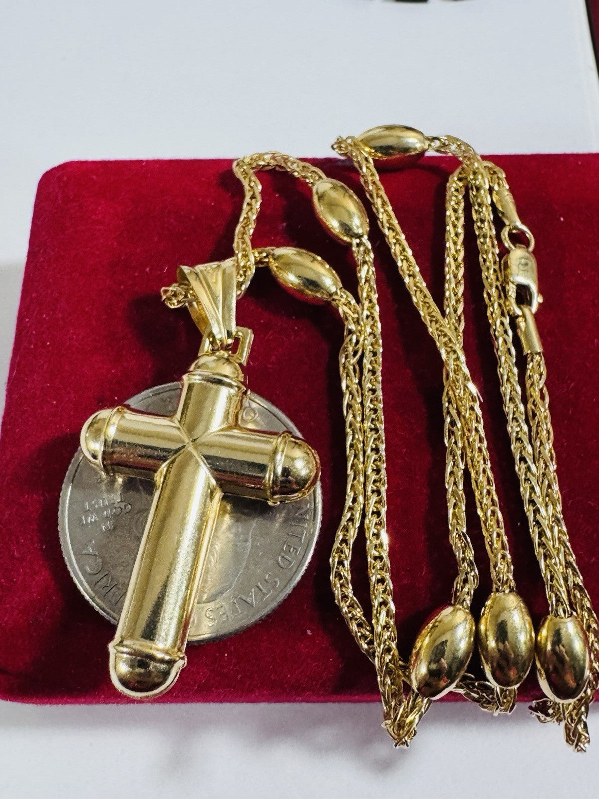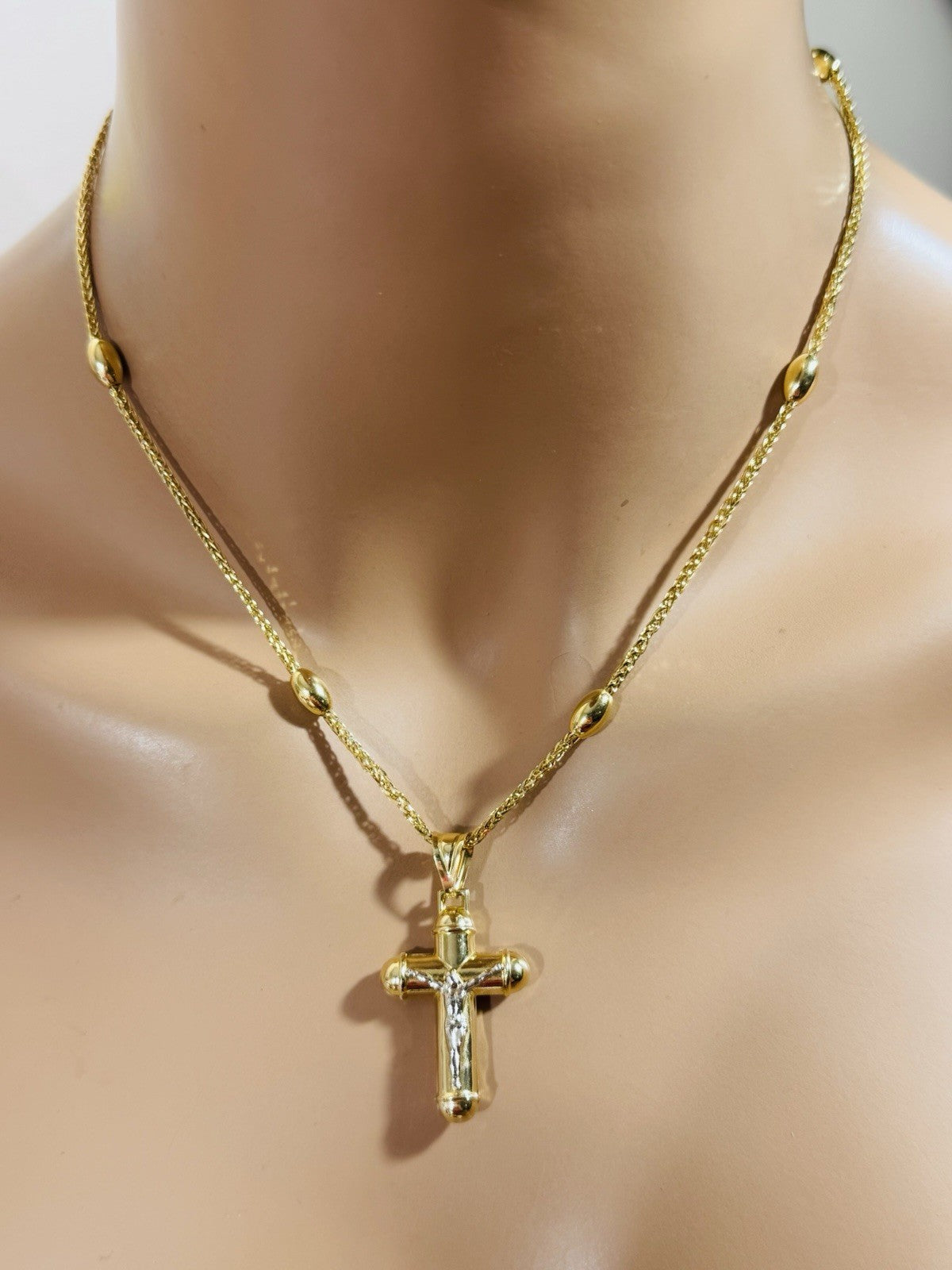 Pure 750 18K Fine Gold Ball Chain Cross Set Necklace 17.7” / 18” Long 2.2mm 9.6g