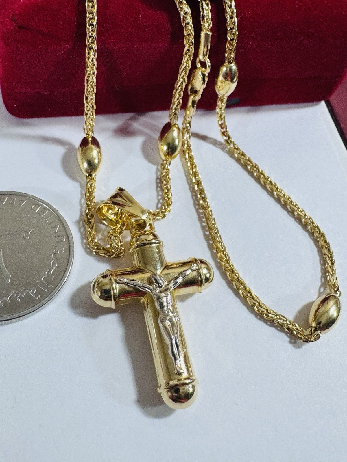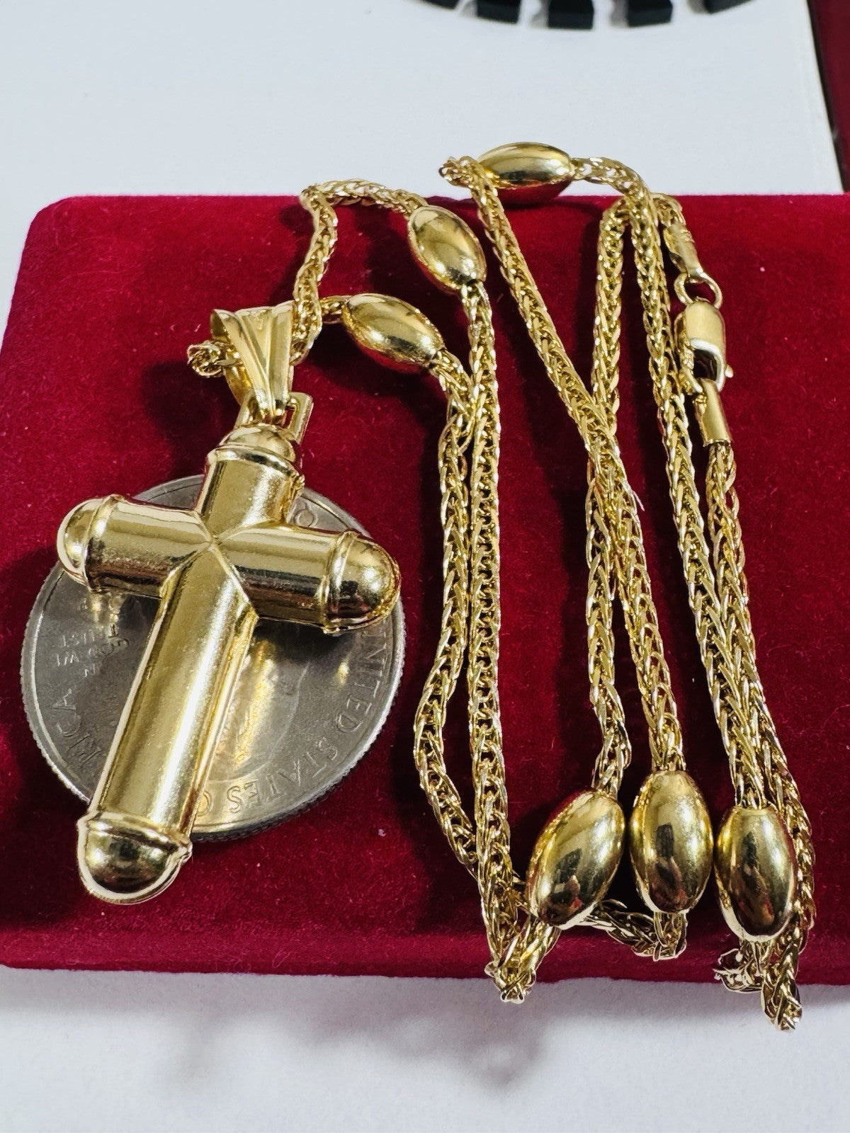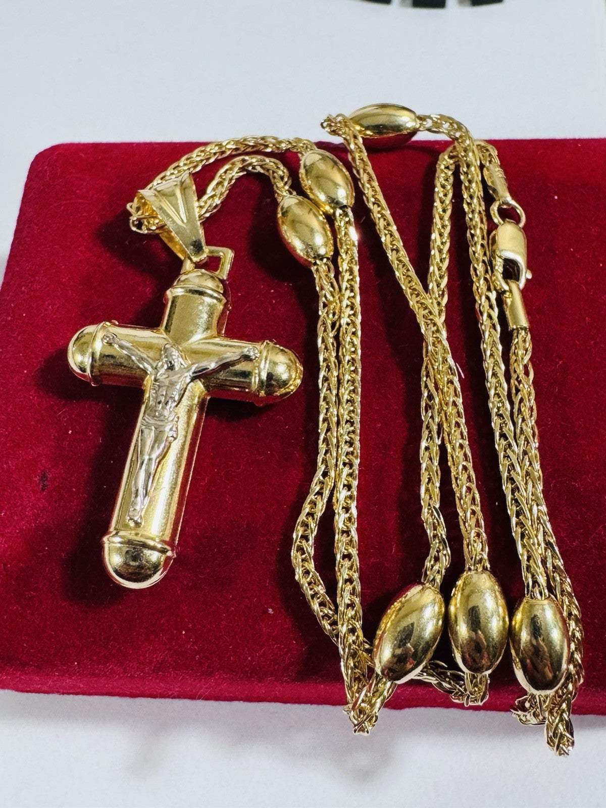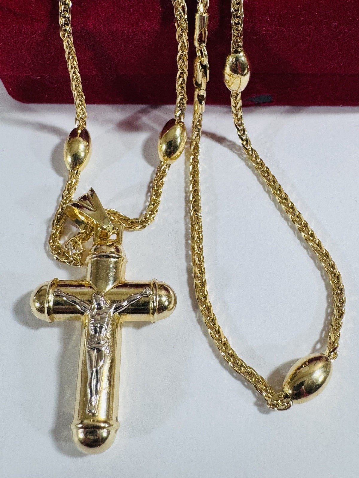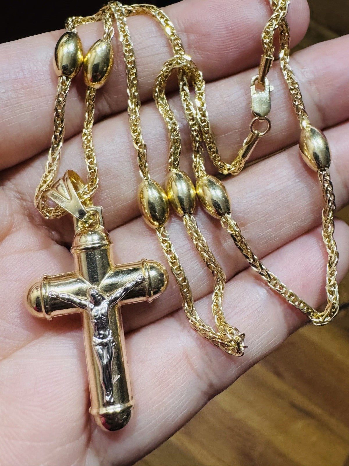 Pure 750 18K Fine Gold Ball Chain Cross Set Necklace 17.7” / 18” Long 2.2mm 9.6g