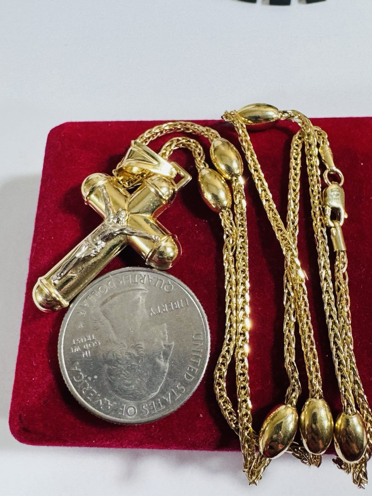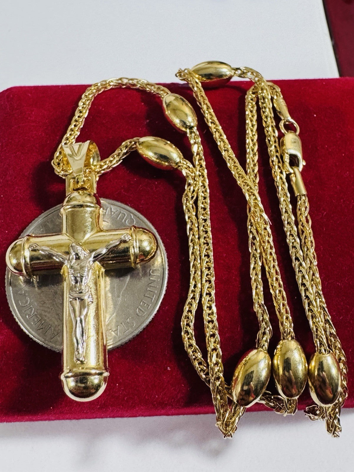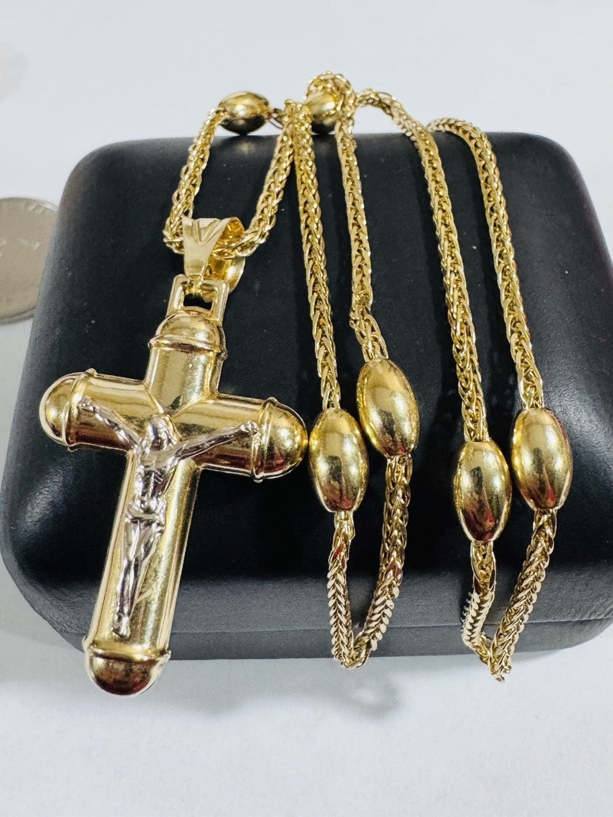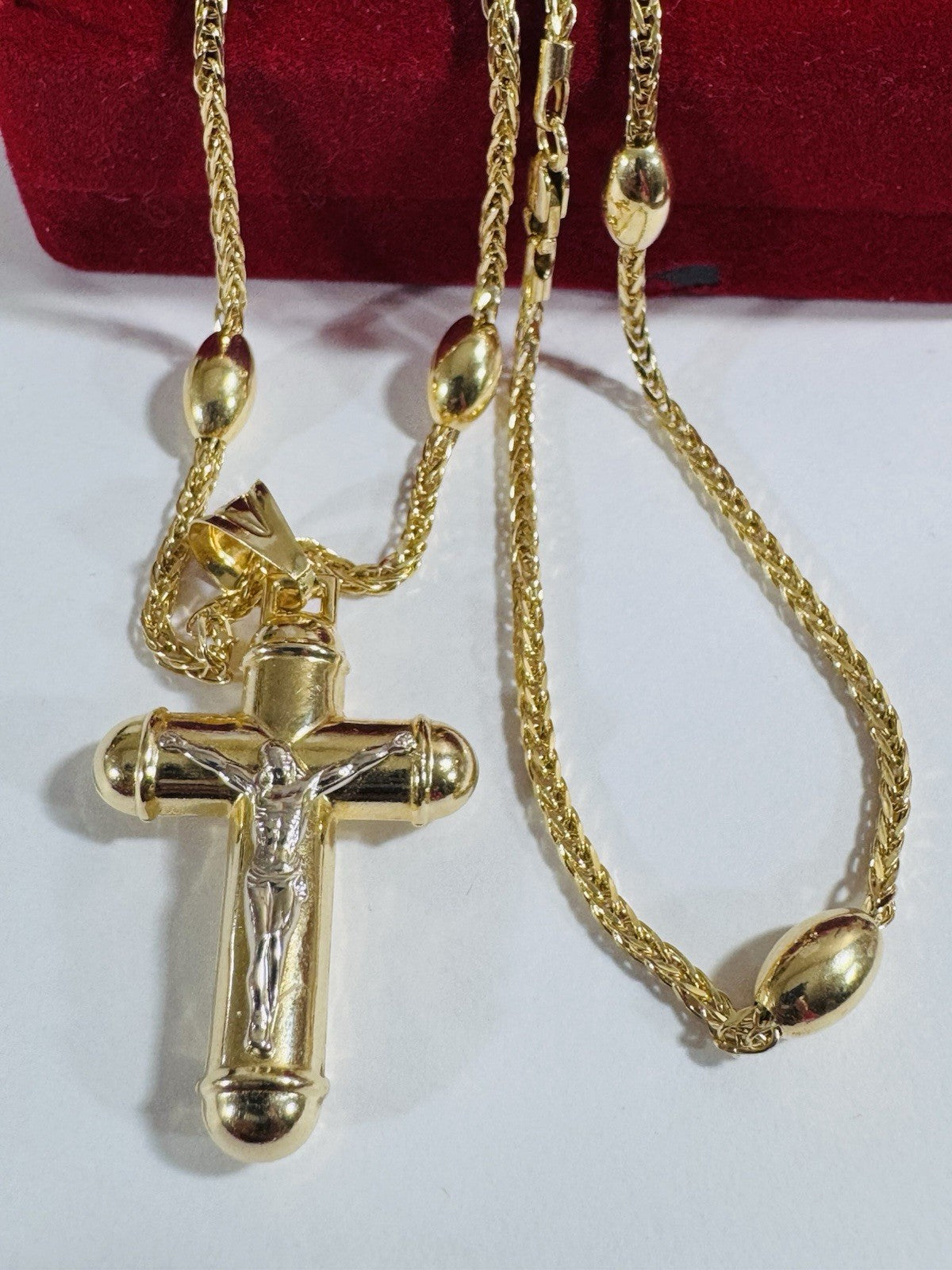 Pure 750 18K Fine Gold Ball Chain Cross Set Necklace 17.7” / 18” Long 2.2mm 9.6g