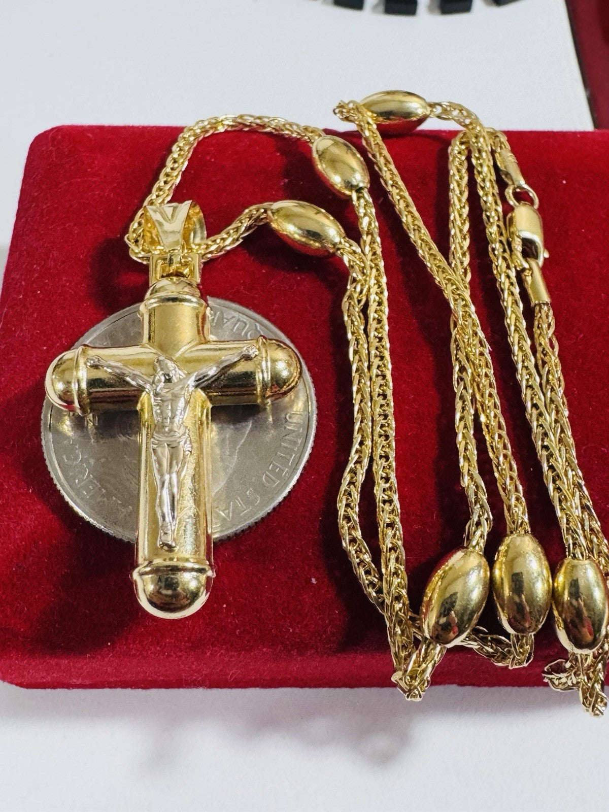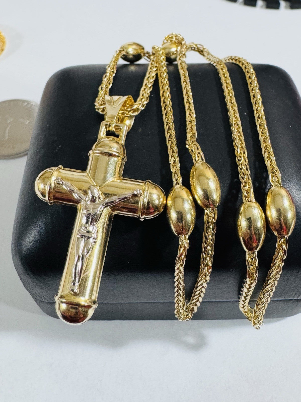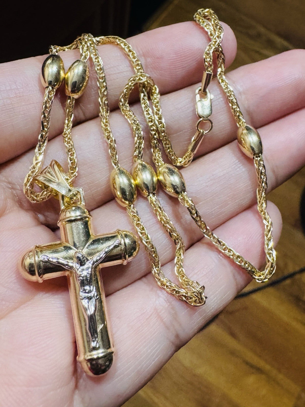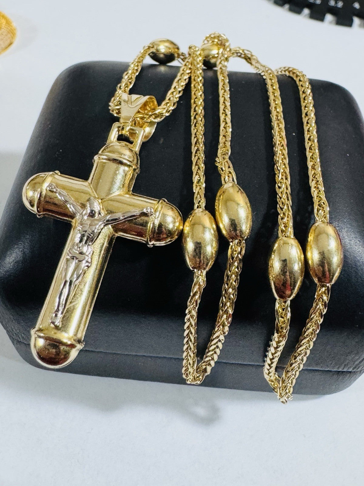 Pure 750 18K Fine Gold Ball Chain Cross Set Necklace 17.7” / 18” Long 2.2mm 9.6g