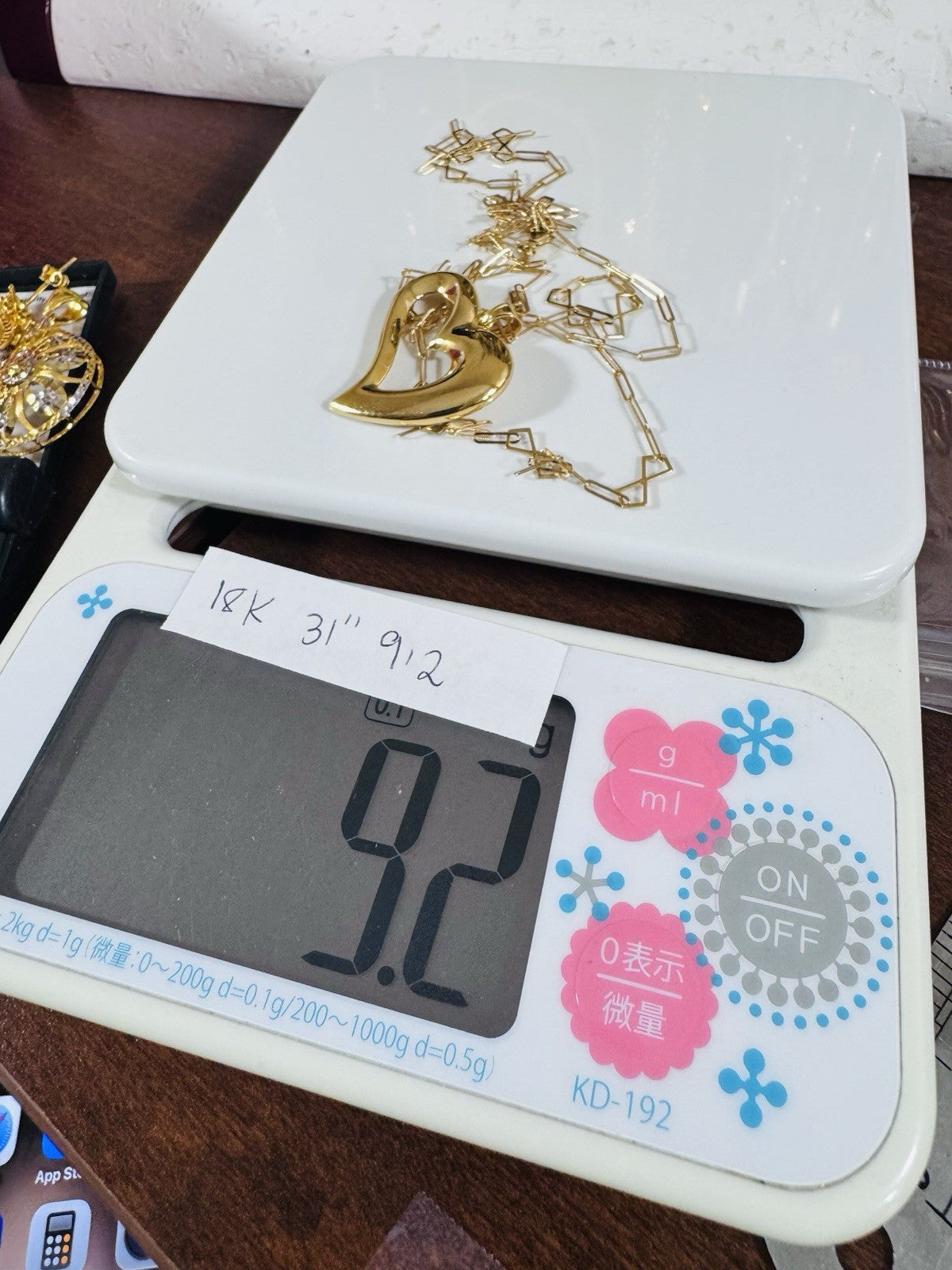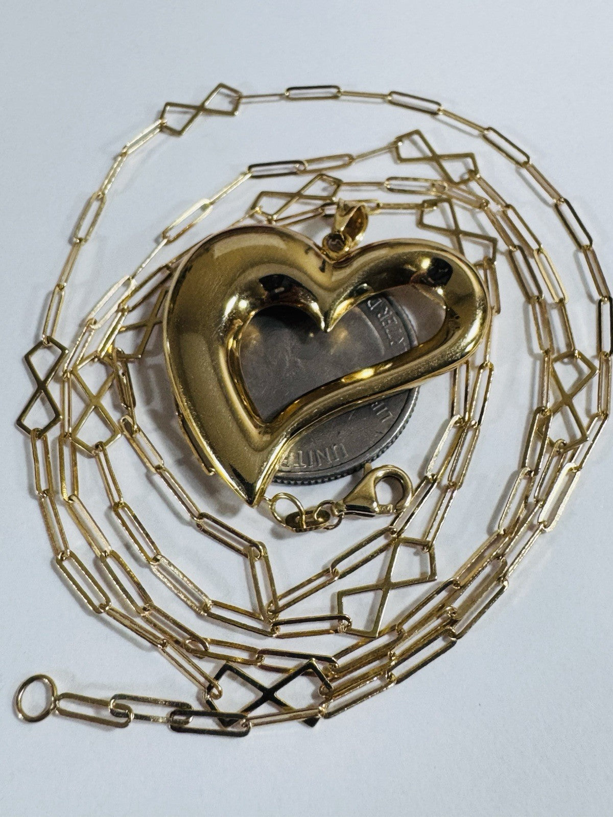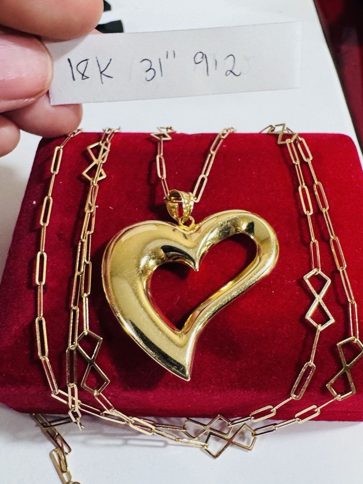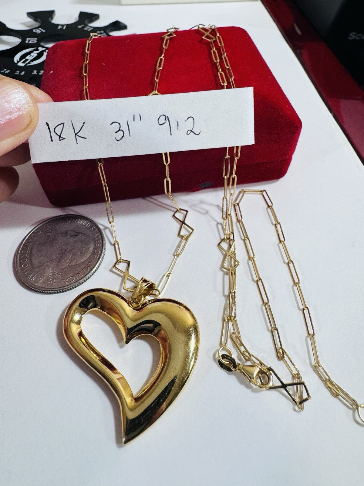 Pure 750 18K Fine Gold Love Heart Set Necklace 31” Long adjustable 3/5mm 9.2g