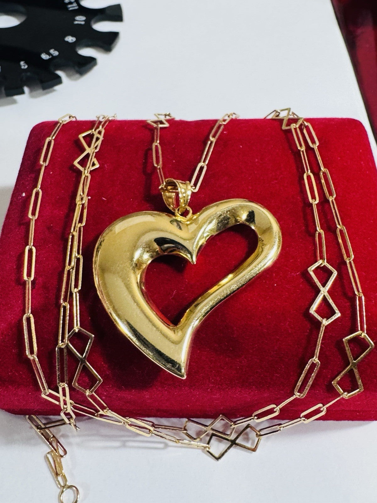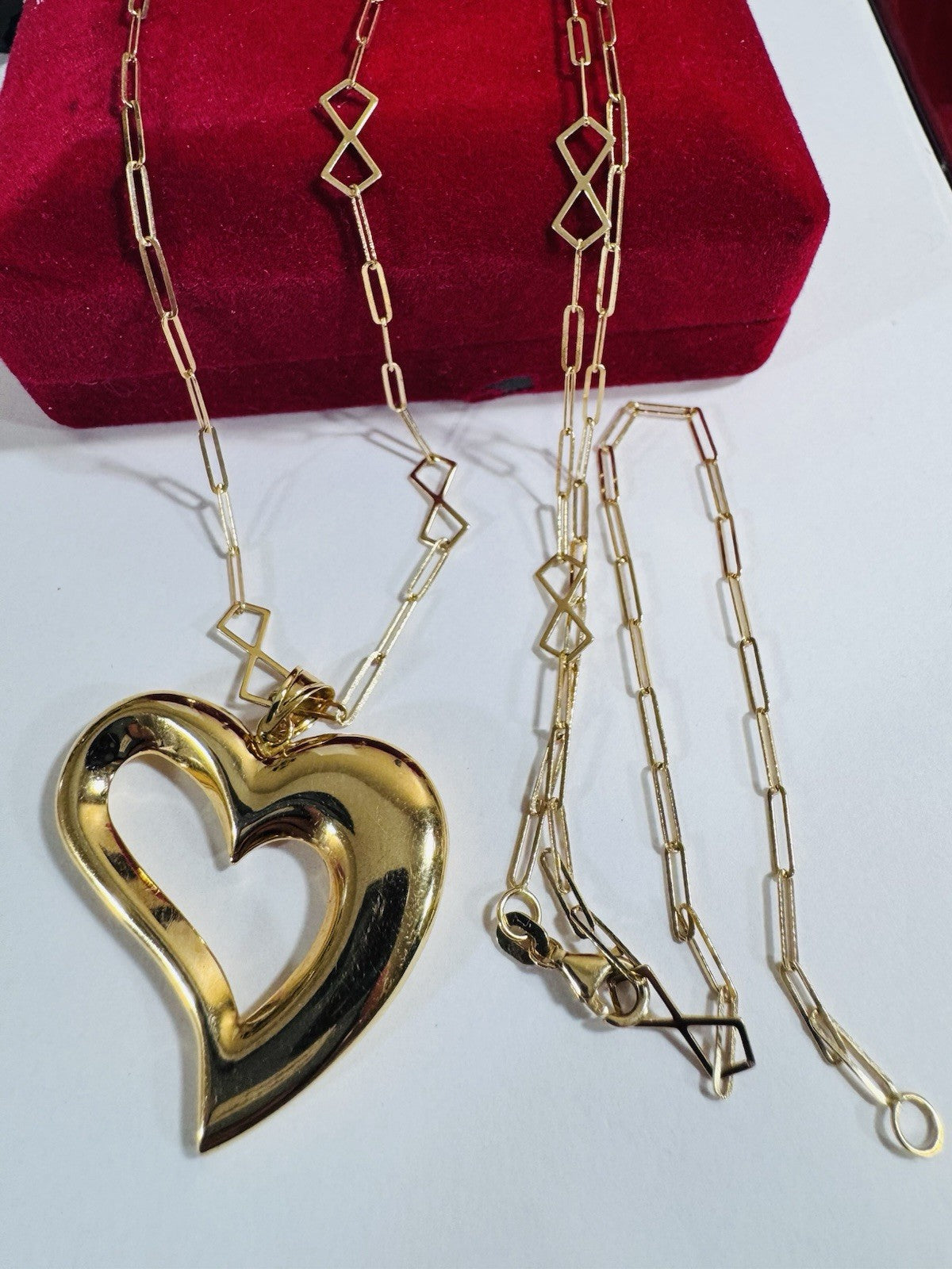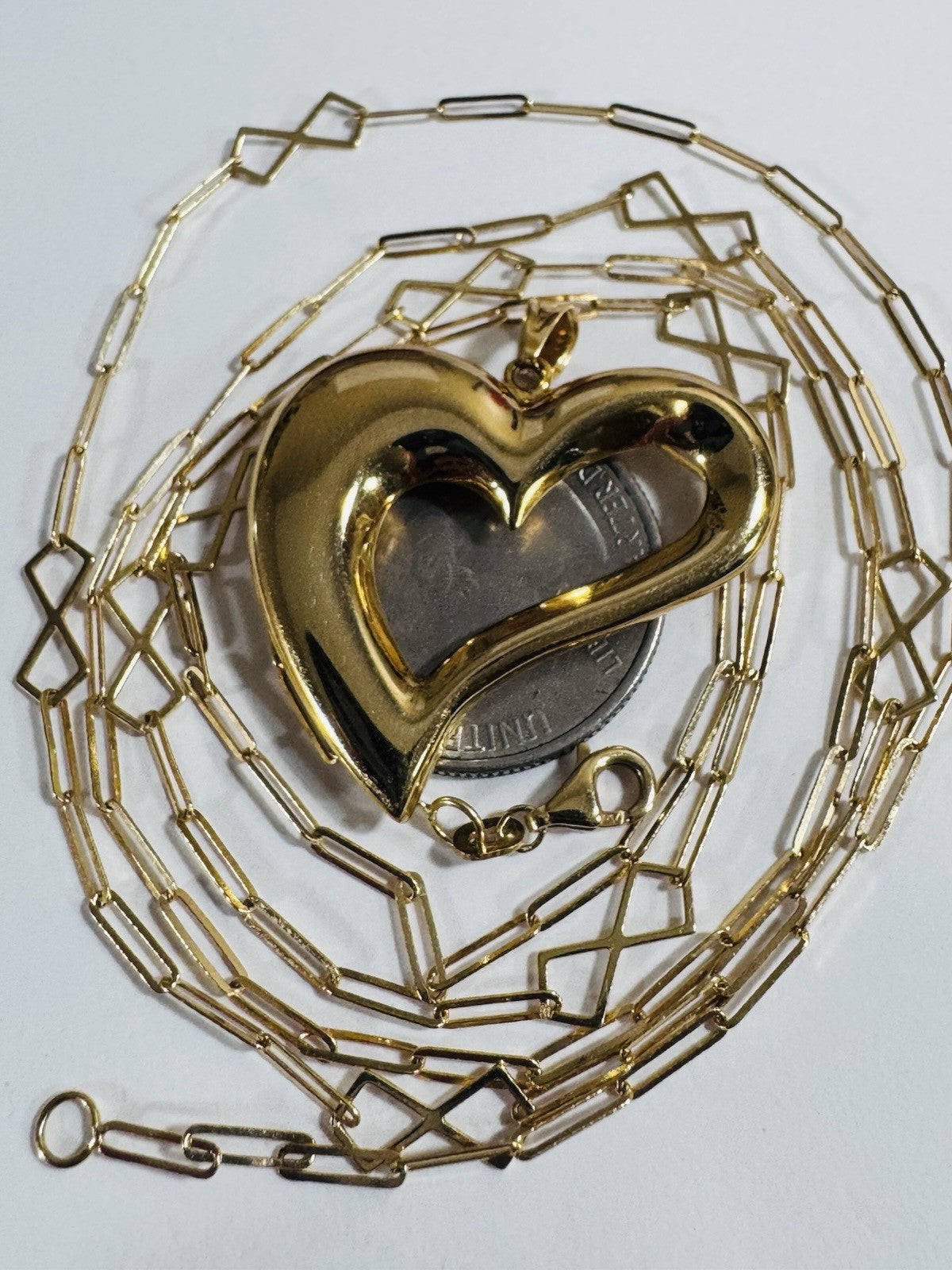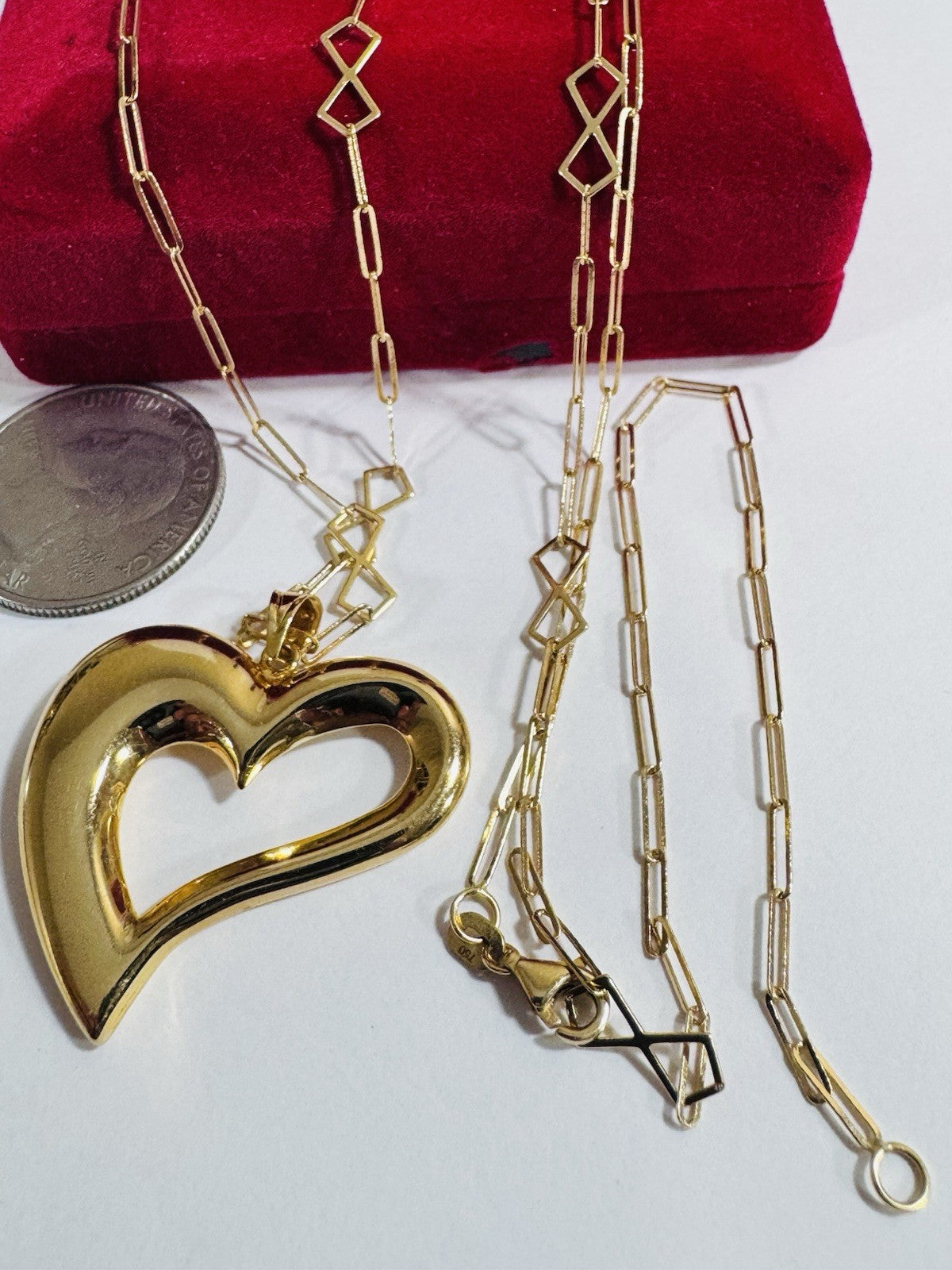 Pure 750 18K Fine Gold Love Heart Set Necklace 31” Long adjustable 3/5mm 9.2g