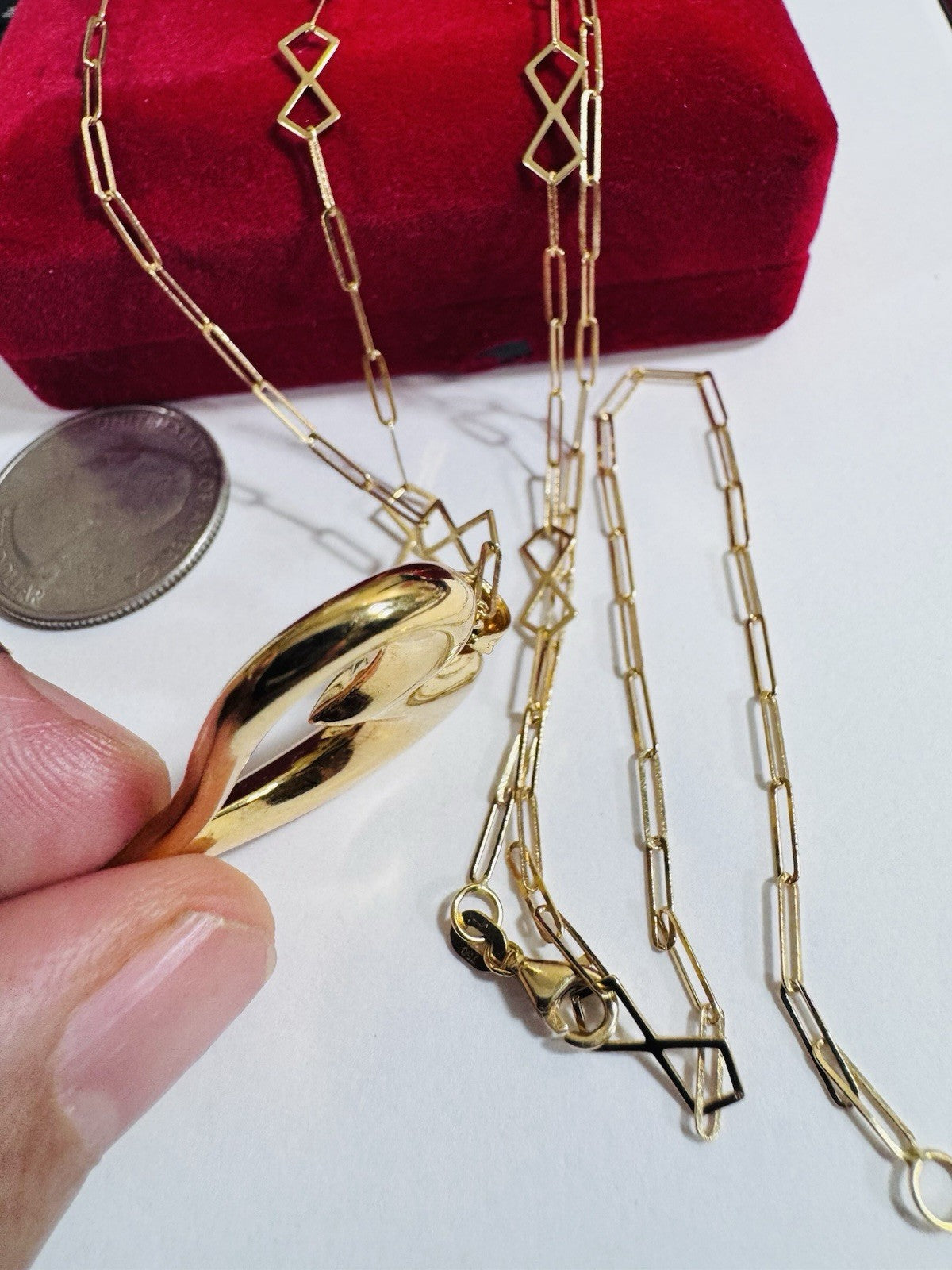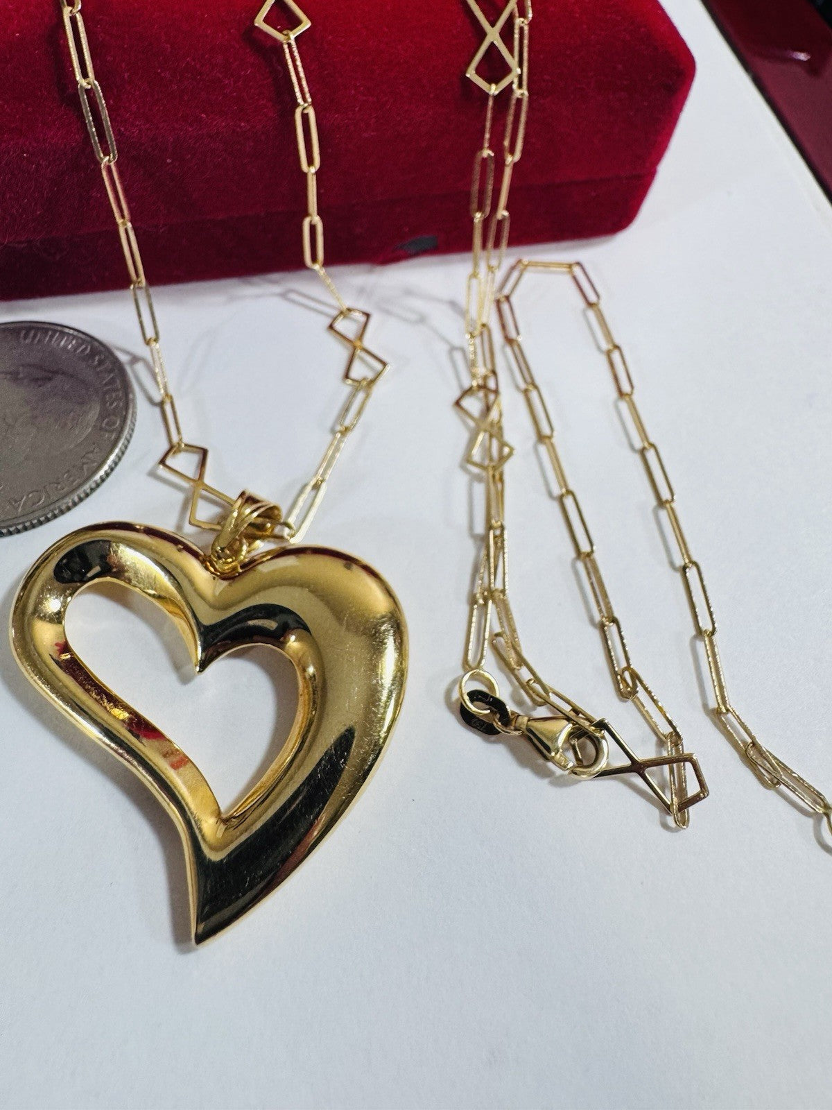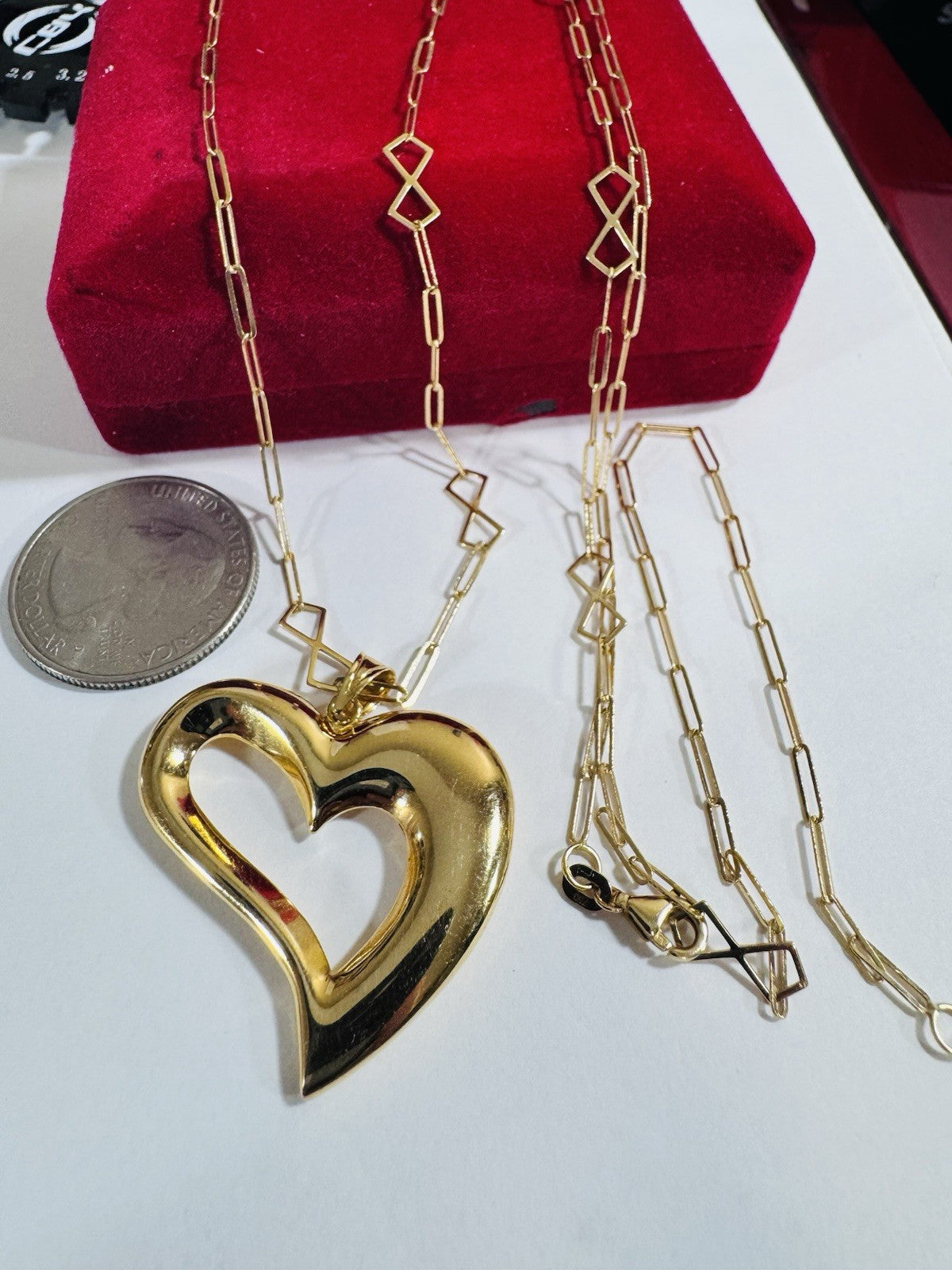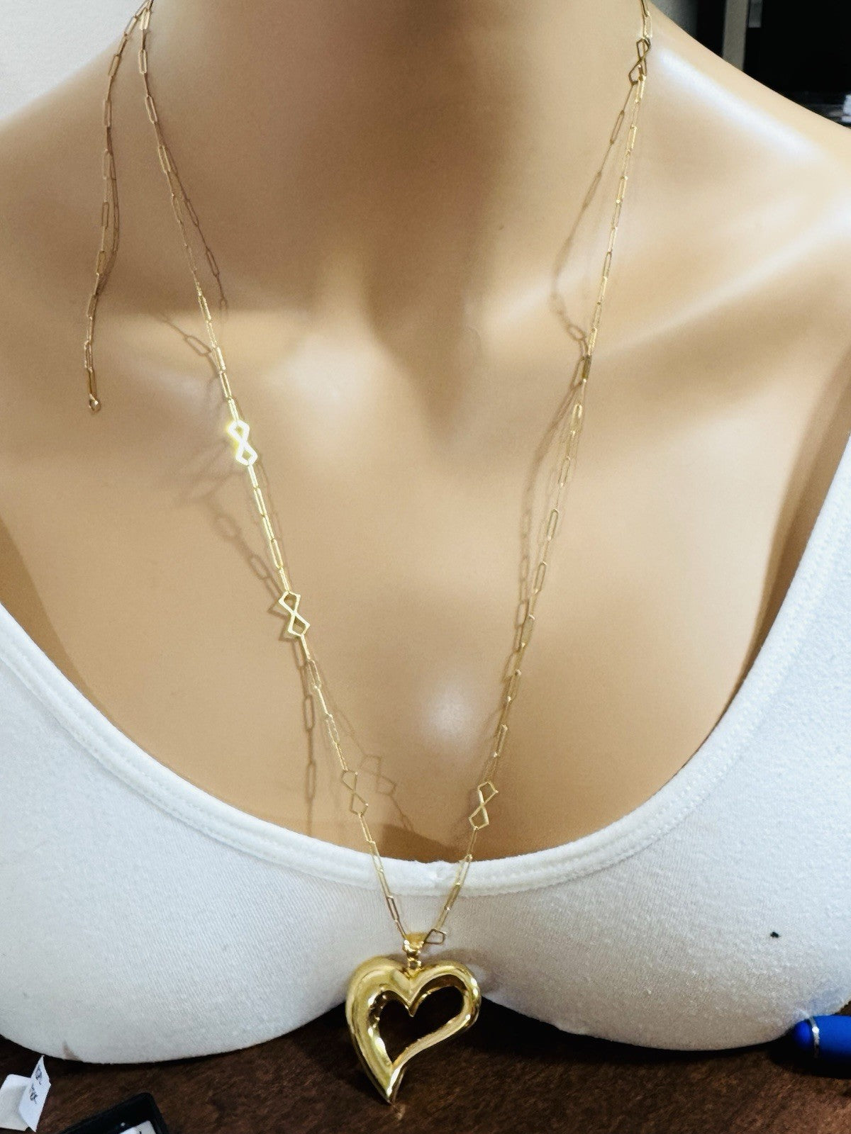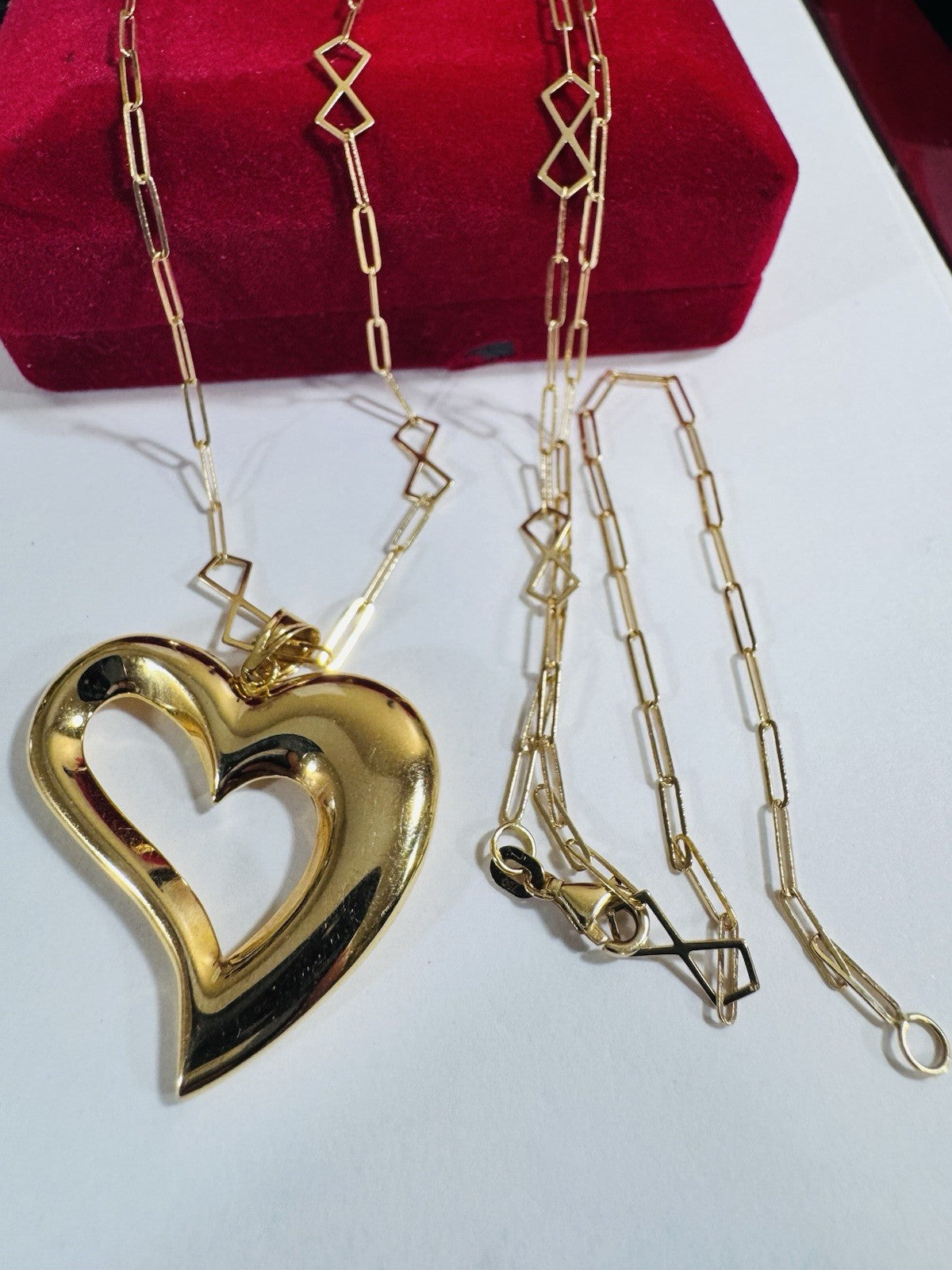 Pure 750 18K Fine Gold Love Heart Set Necklace 31” Long adjustable 3/5mm 9.2g