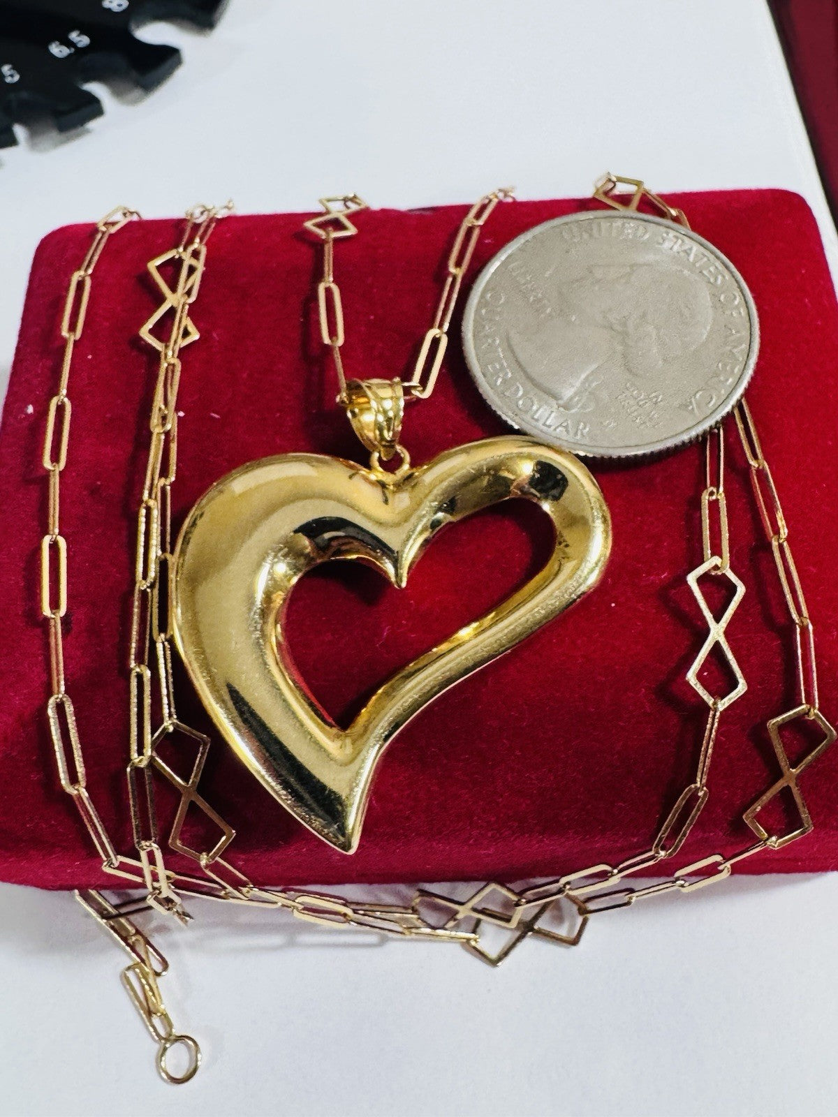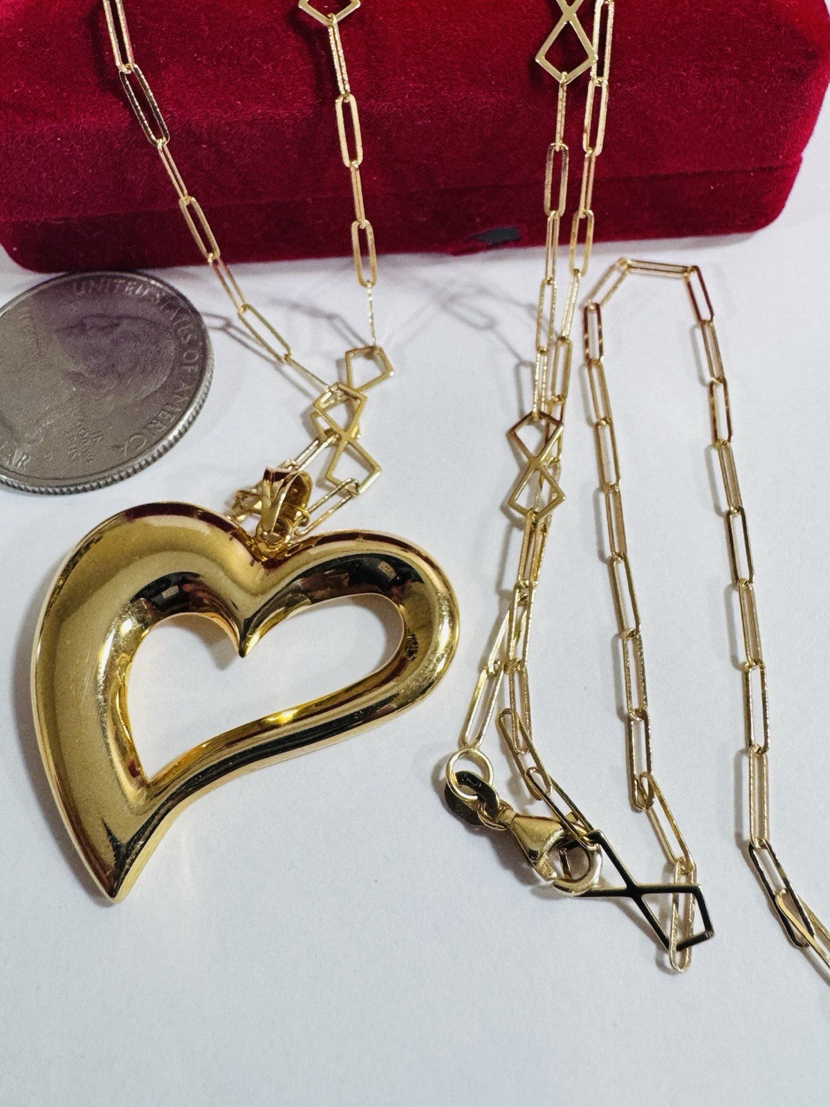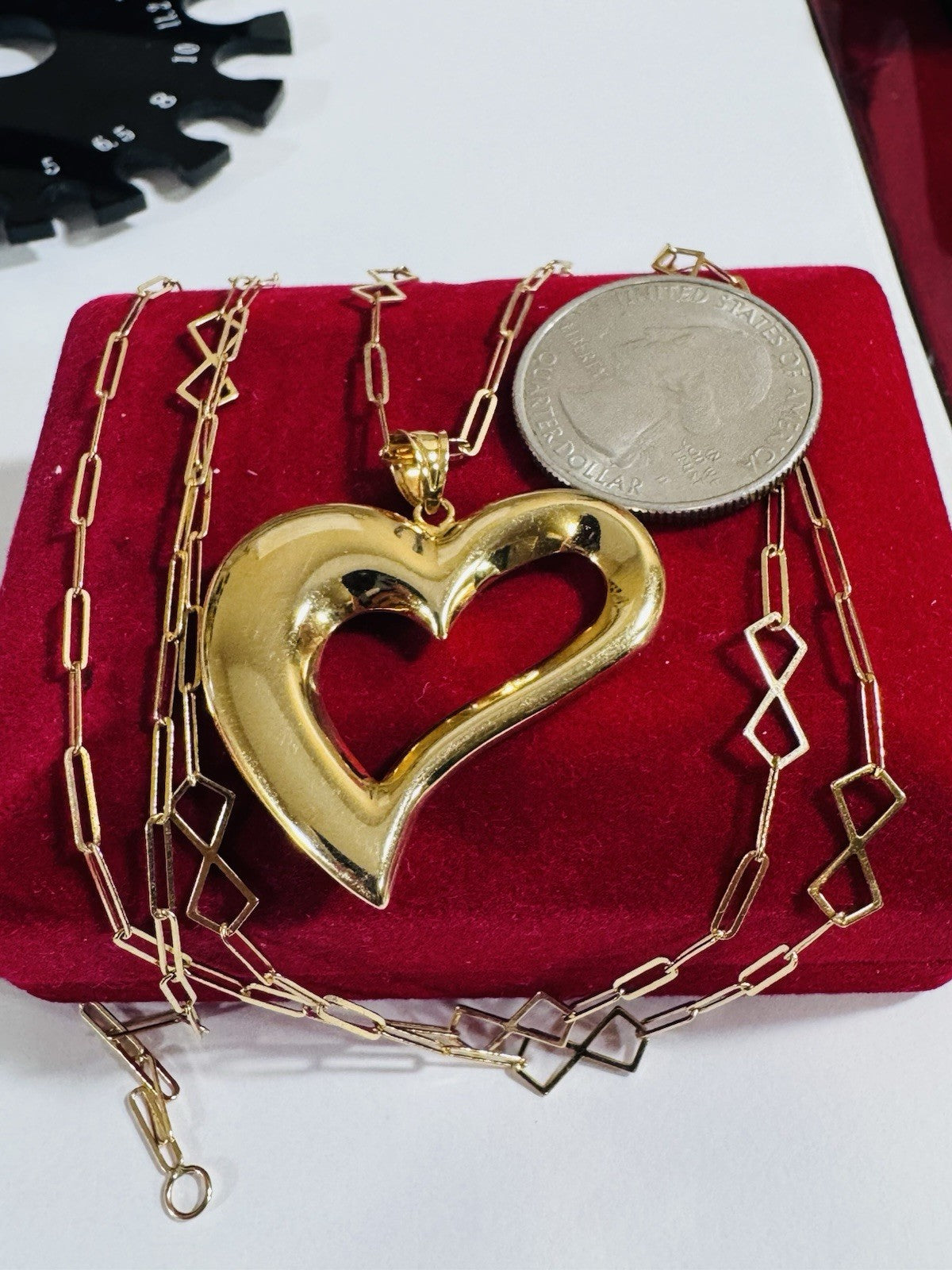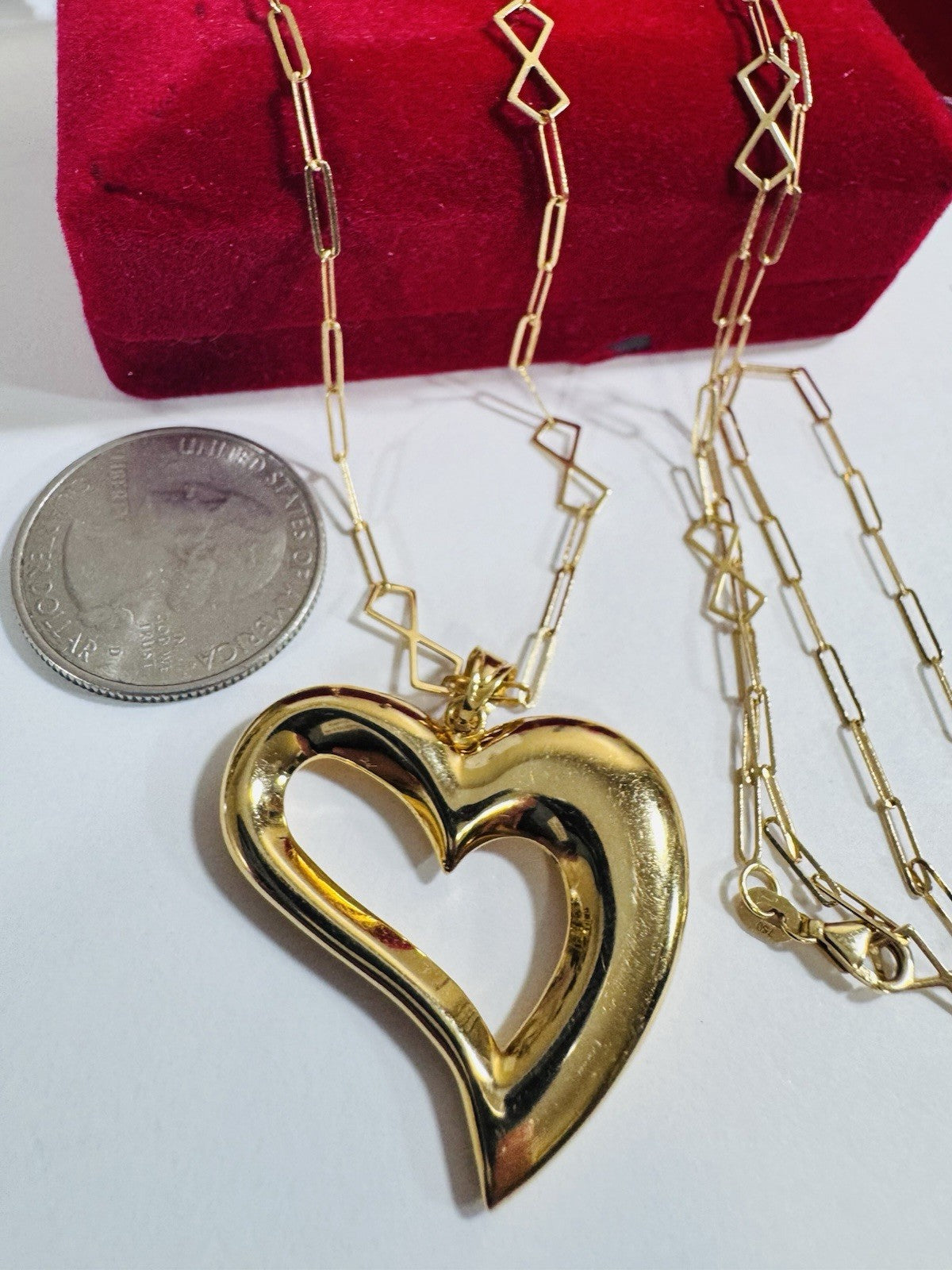 Pure 750 18K Fine Gold Love Heart Set Necklace 31” Long adjustable 3/5mm 9.2g